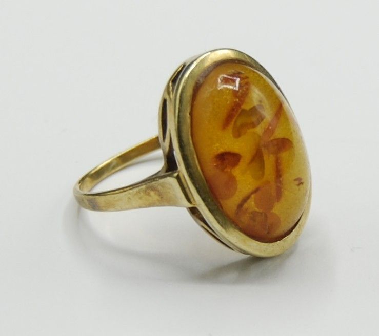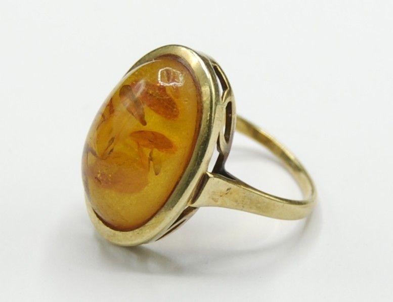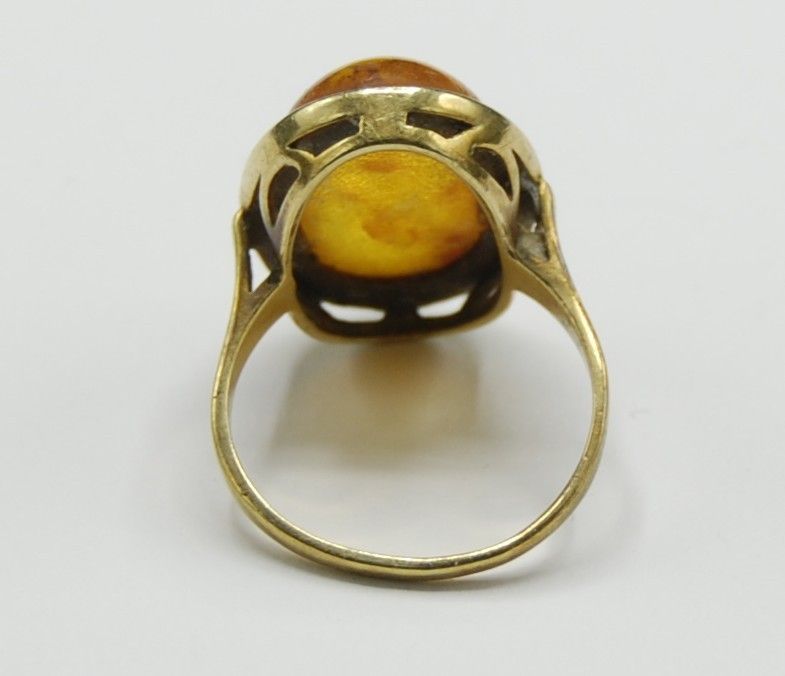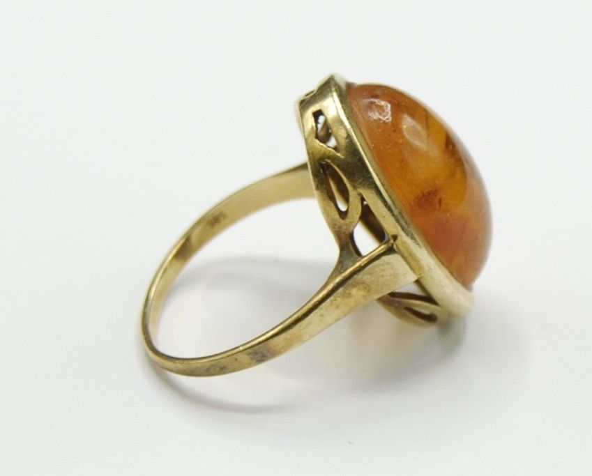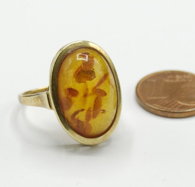 Bernstein Amber Siegel Solitär Ring 585 Gold