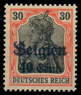 BES. 1WK LANDESPOST BELGIEN Nr 19 postfrisch gepr. 40 Cent auf 30 Pfg Wert aus der Aufdruckausgabe Landespost in Belgien (Generalgouvernement) auf den Freimarken des deutschen Reiches (Germania 1916 1918), mit kurzem Aufdruck 1.09€ incl. MwSt: Differenzbesteuert zzgl. Versandkosten Bestell-Nr.: