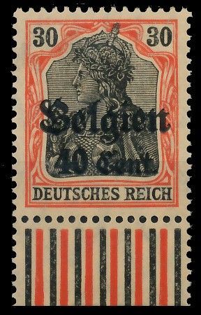 BES. 1WK LANDESPOST BELGIEN Nr 19 postfrisch URA gepr. 40 Cent auf 30 Pfg Wert aus der Aufdruckausgabe Landespost in Belgien (Generalgouvernement) auf den Freimarken des deutschen Reiches (Germania 1916 1918), mit kurzem Aufdruck 1.09€ incl. MwSt: Differenzbesteuert zzgl. Versandkosten Bestell-