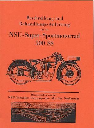 Beschreibung für das NSU Super Sportmotorrad 500 SS Ausgabe 1932 ca 28 Seiten A 5 Nachdruck