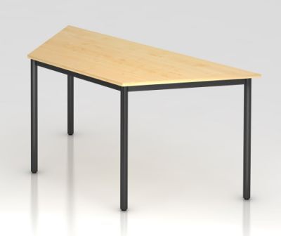 Trapeztisch Dortmund, Füße Rundrohr schwarz, Dekor wählbar Ahorn Buche oder Lichtgrau, Maße: 160 x 69 x 72 cm (B x T x H)