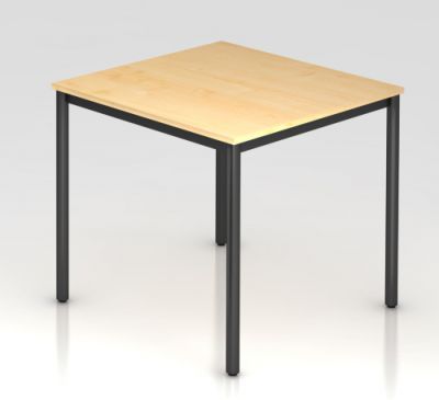 Besprechungstisch Dortmund, Füße Rundrohr schwarz, Dekor Tischplatte wählbar Ahorn Buche oder Lichtgrau, Maße: 80 x 80 x 72 cm (B x T x H)