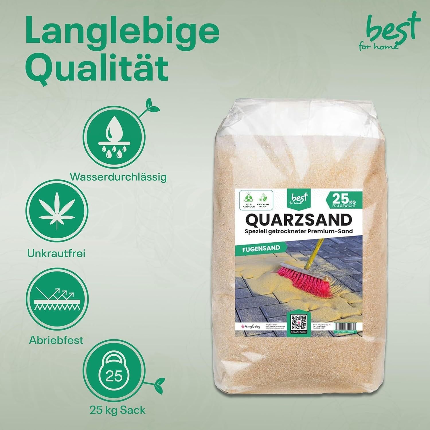 Best For Home 25 kg Fugensand Feiner Quarzsand für Terrasse, Einfahrt, Gartenflächen