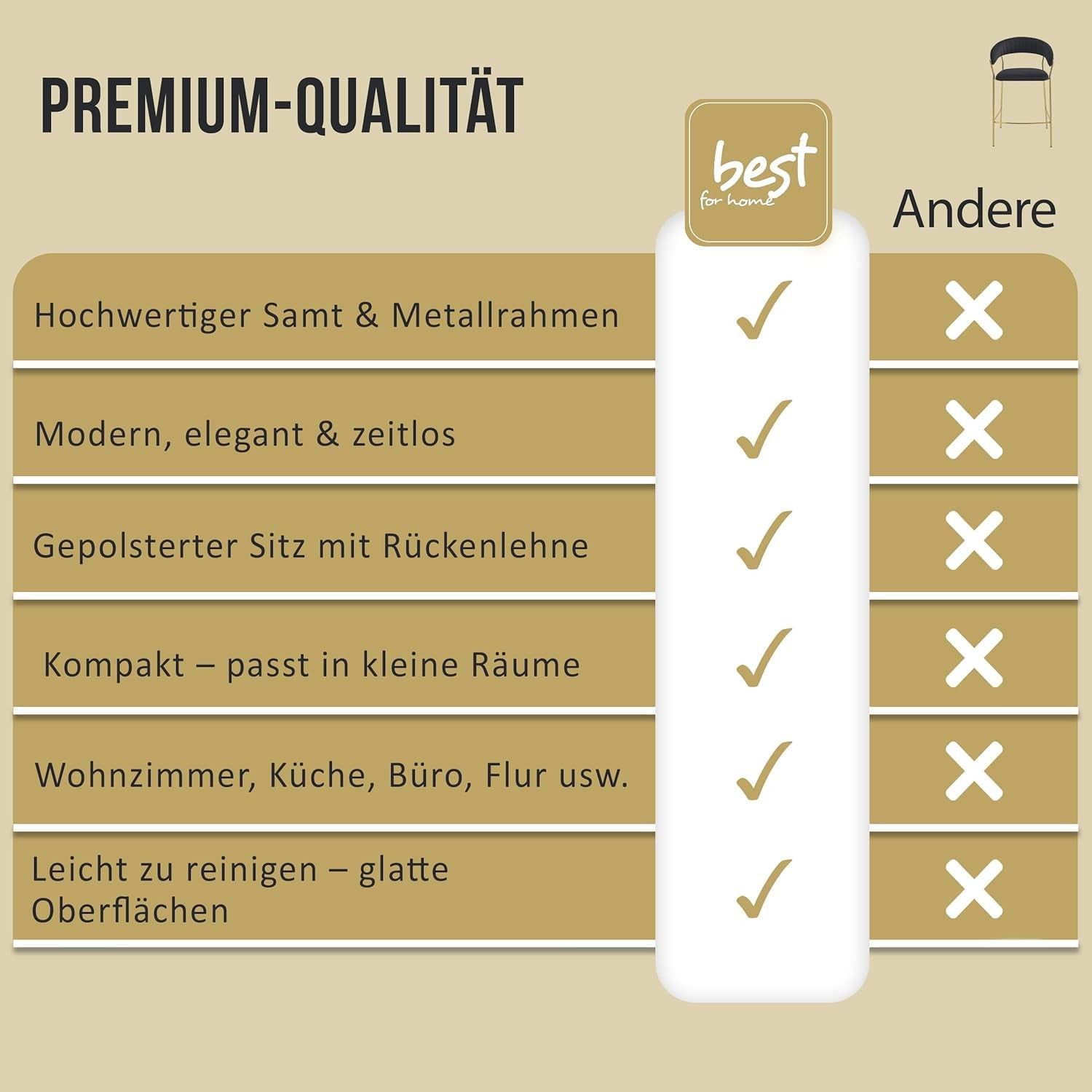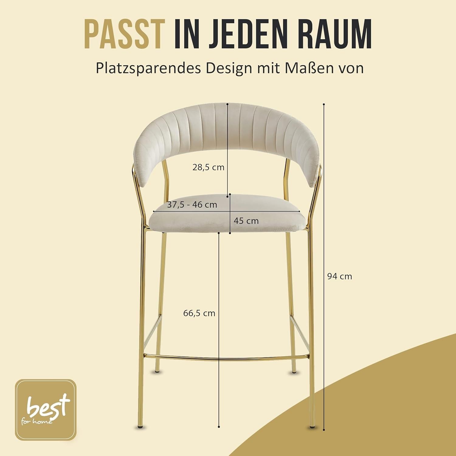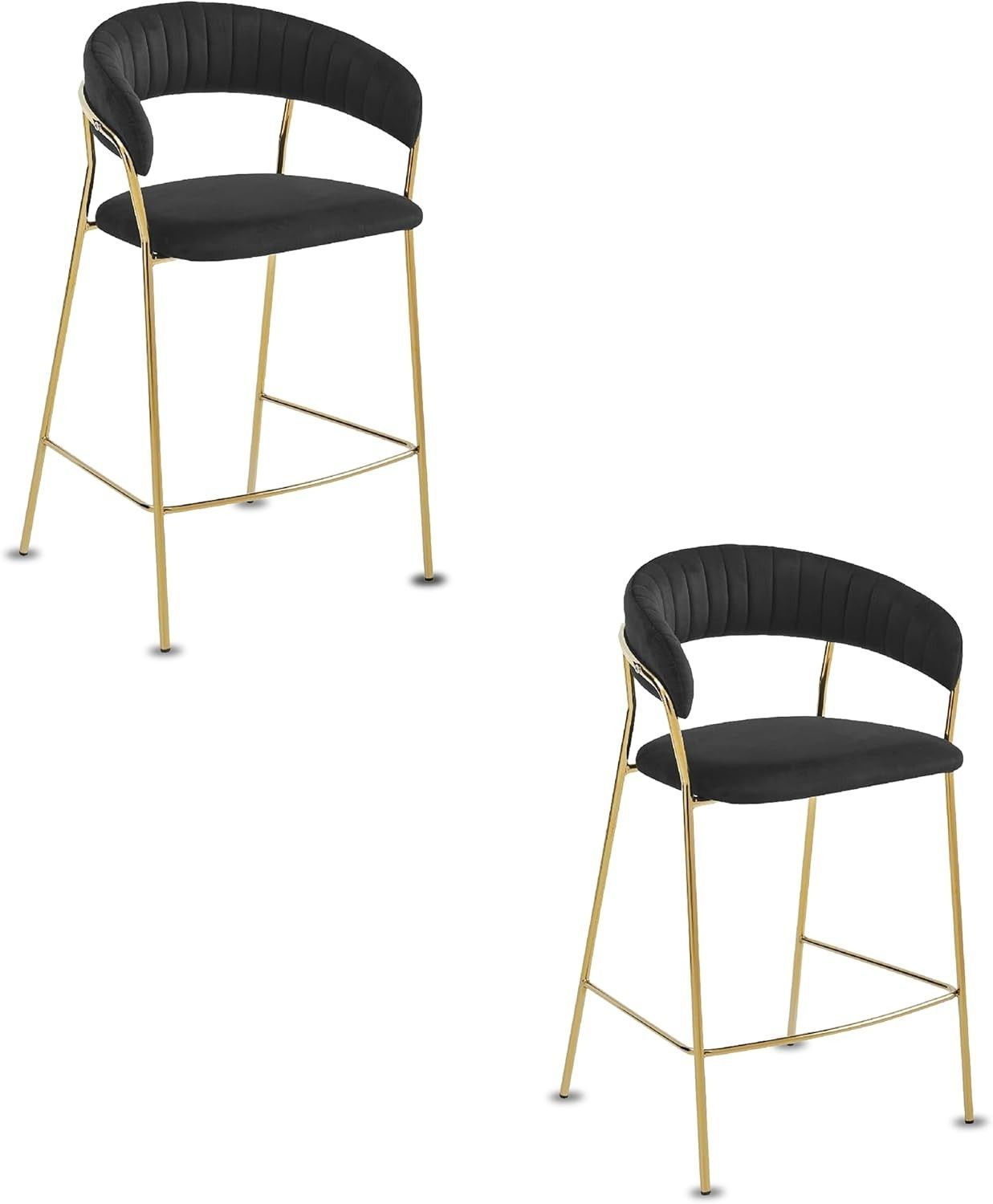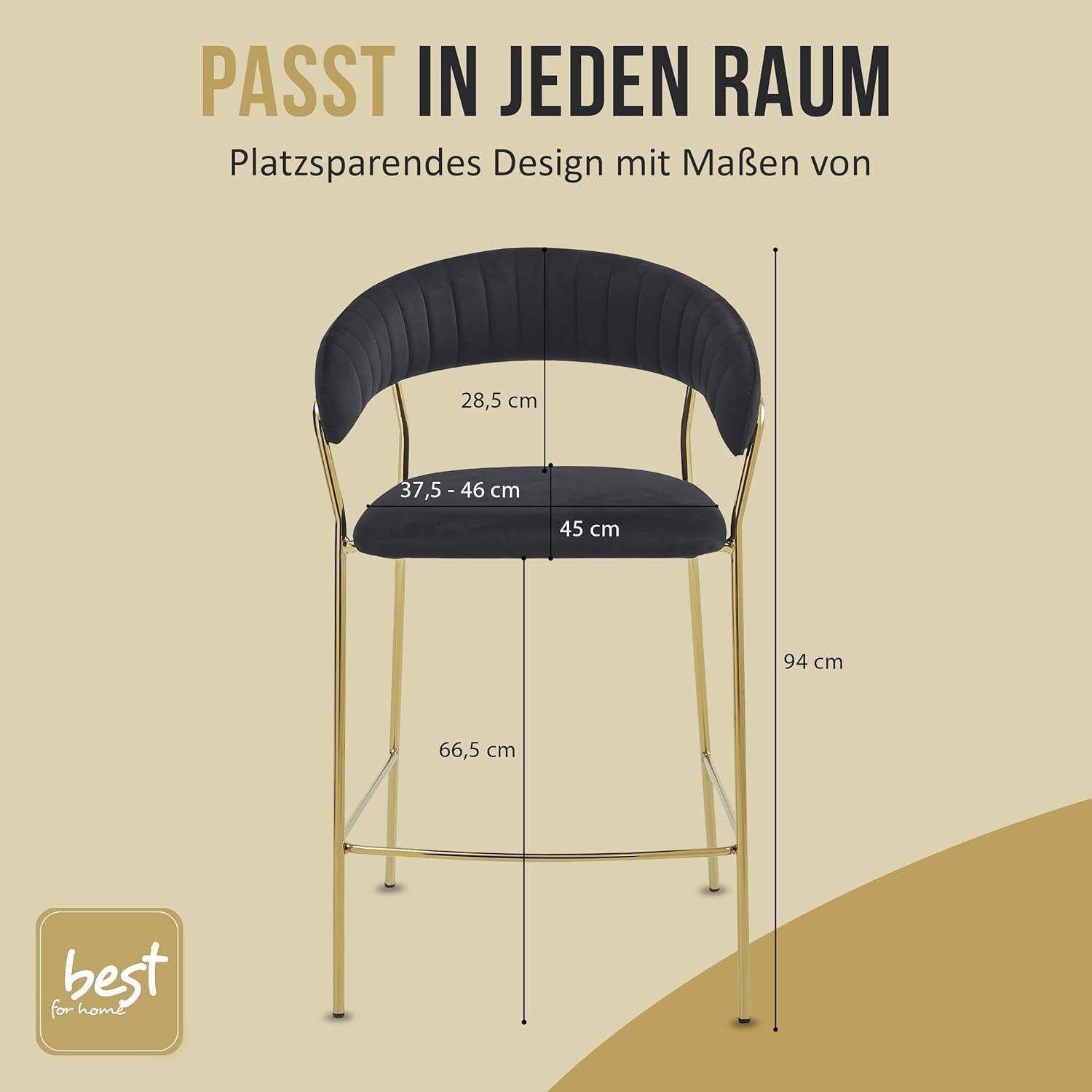 Best For Home BADIA Barhocker aus Samt, rgonomischer Stuhl mit goldenen Metallbeinen