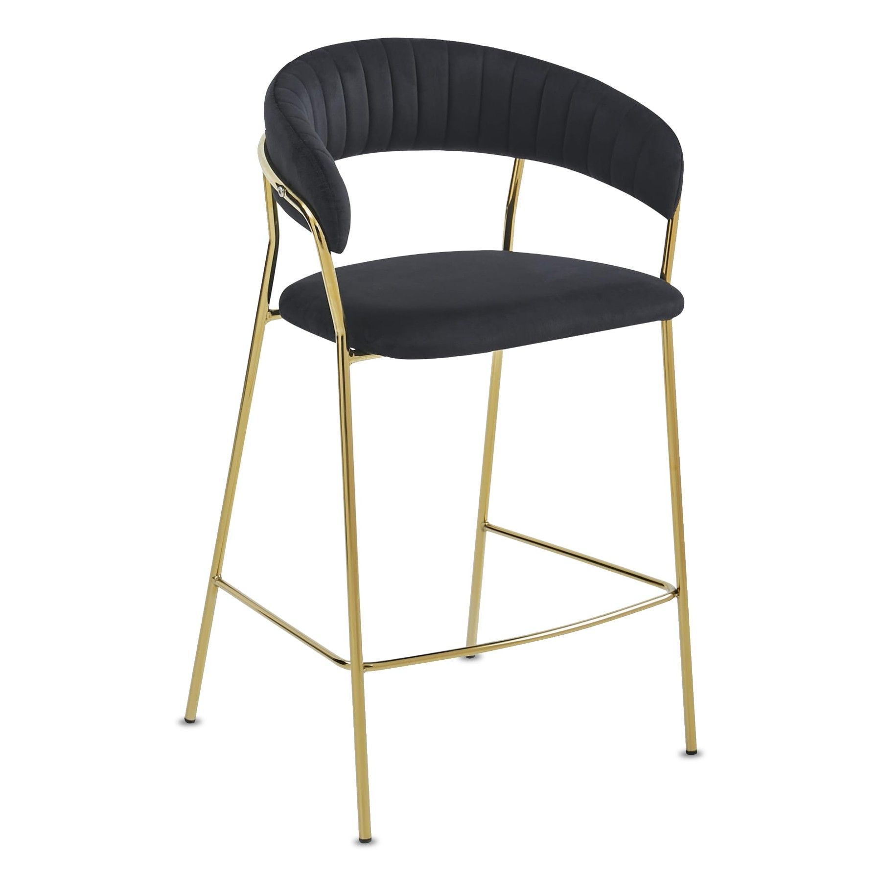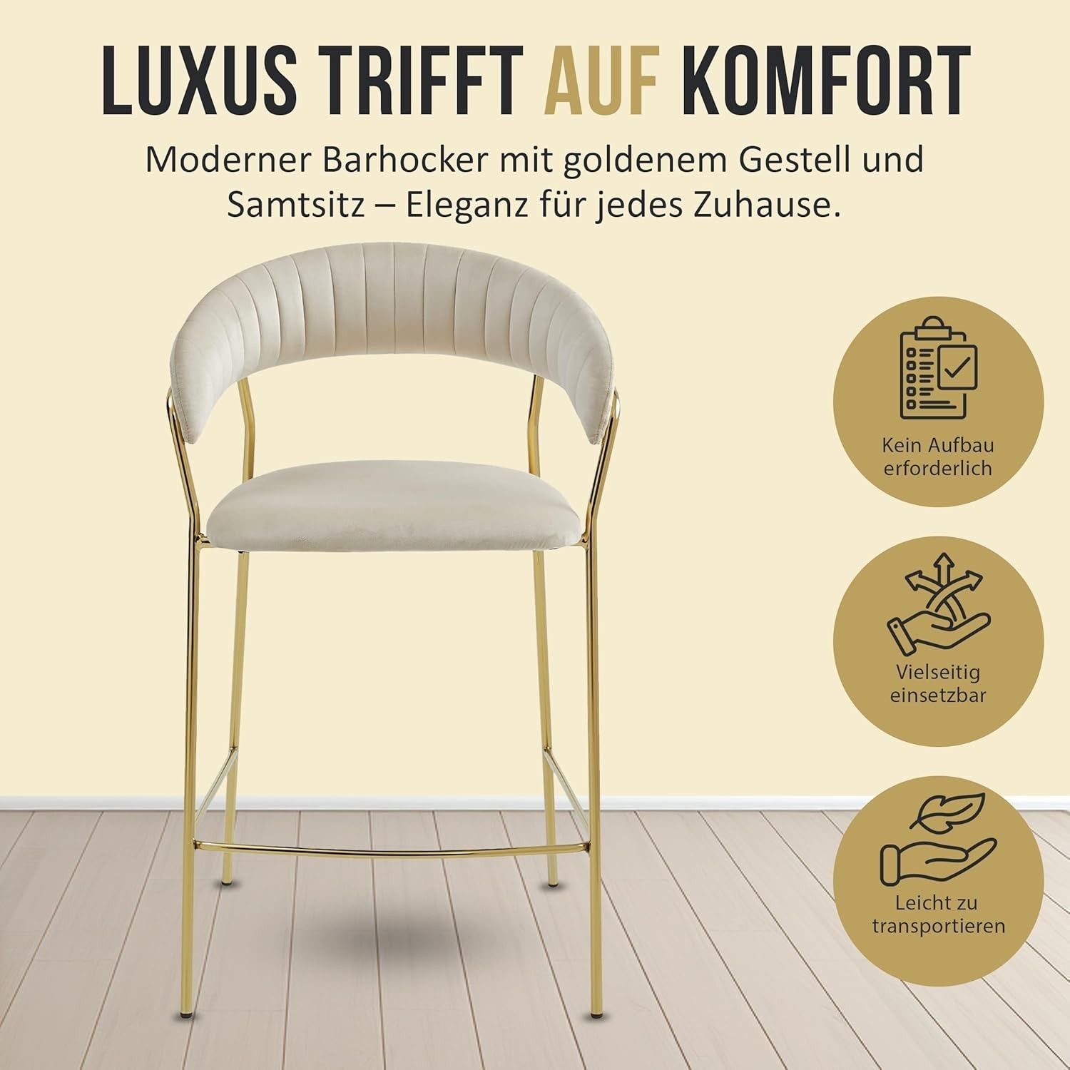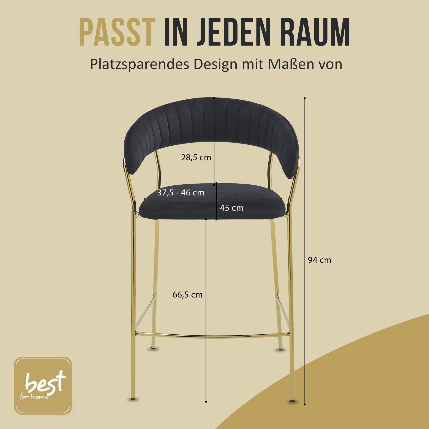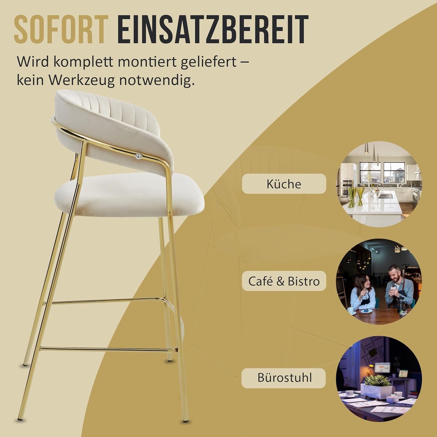 Best For Home BADIA Barhocker aus Samt, rgonomischer Stuhl mit goldenen Metallbeinen