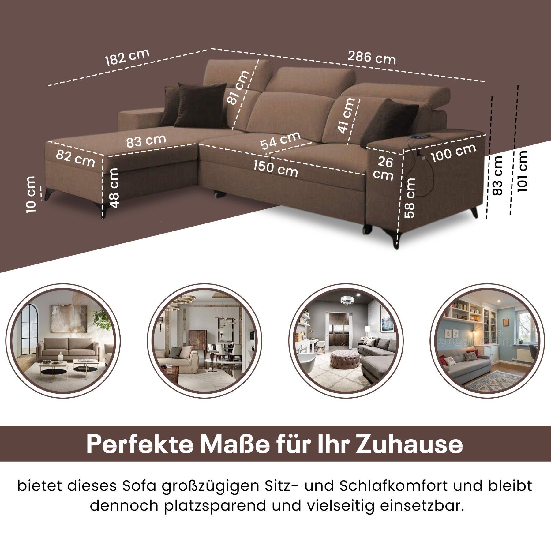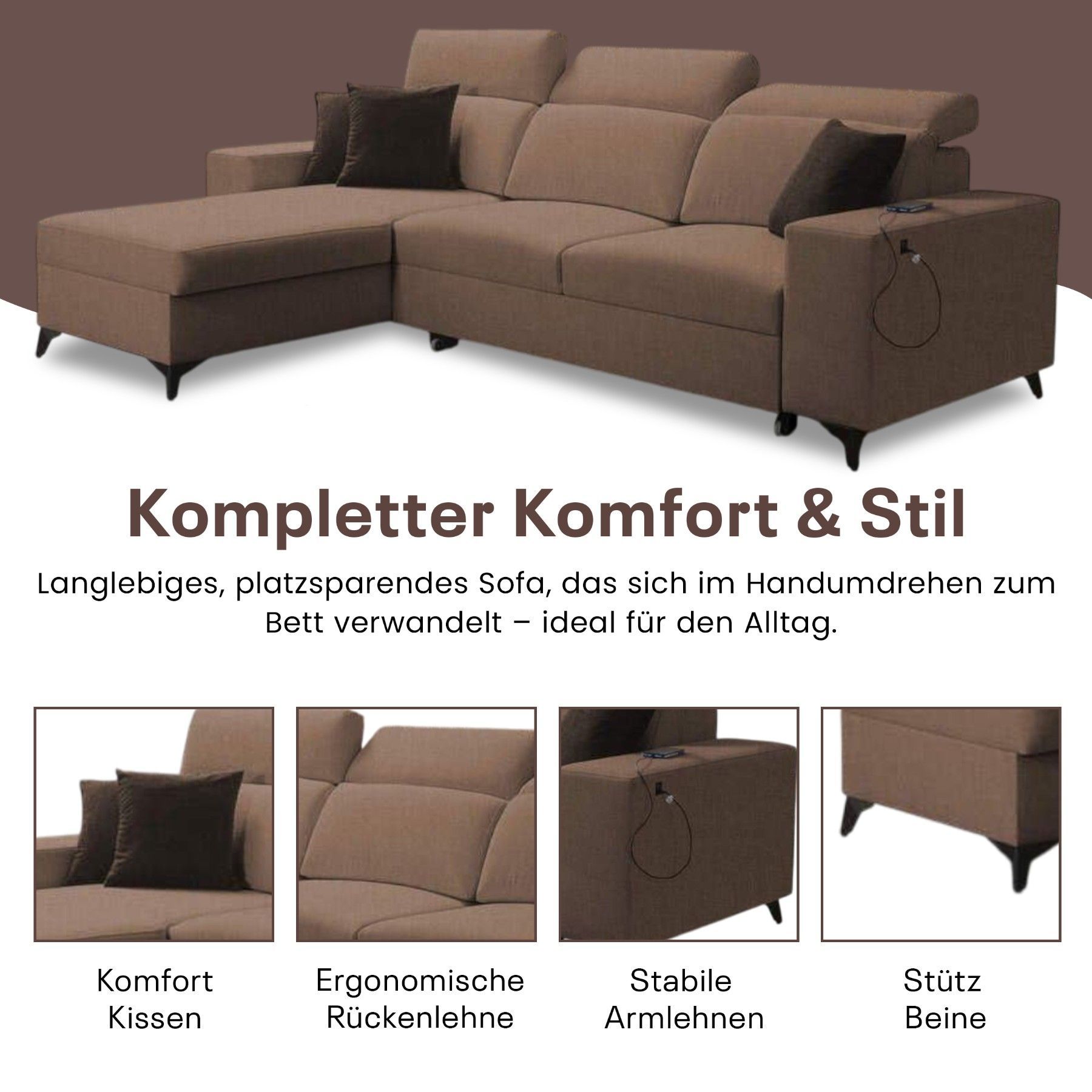 Best For Home BEN I Mix LINKS Sofa mit Schlaffunktion, Bettkasten, USB & Kopfstützen