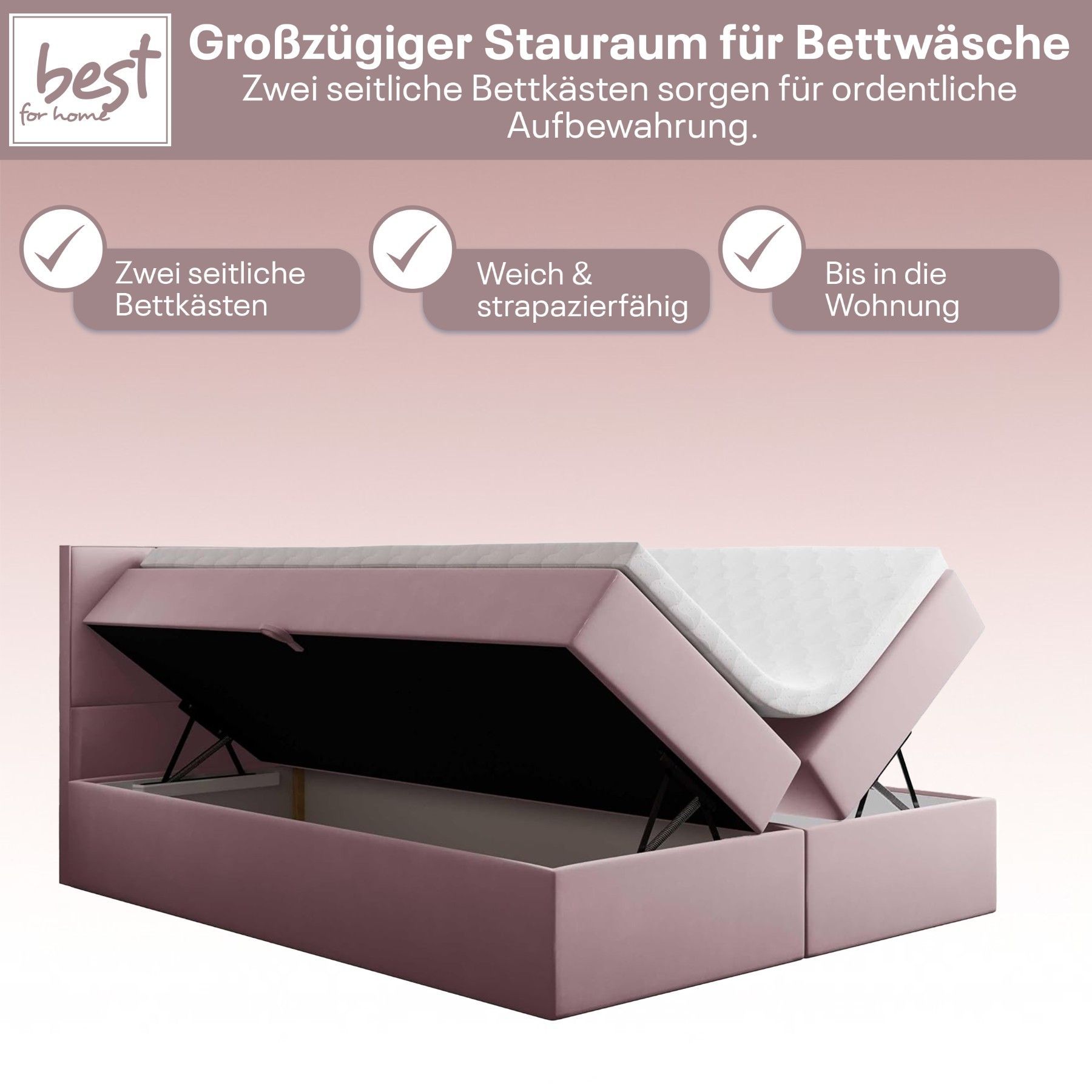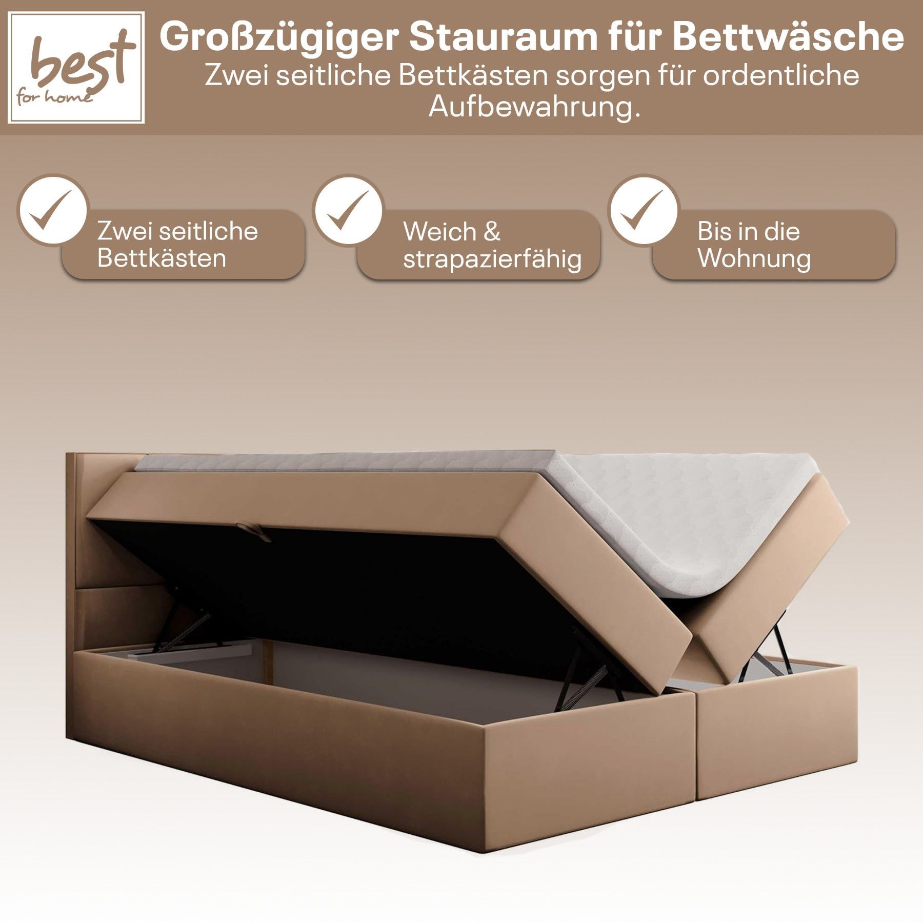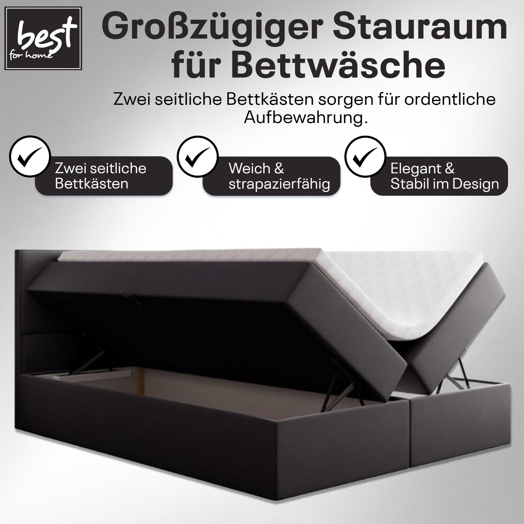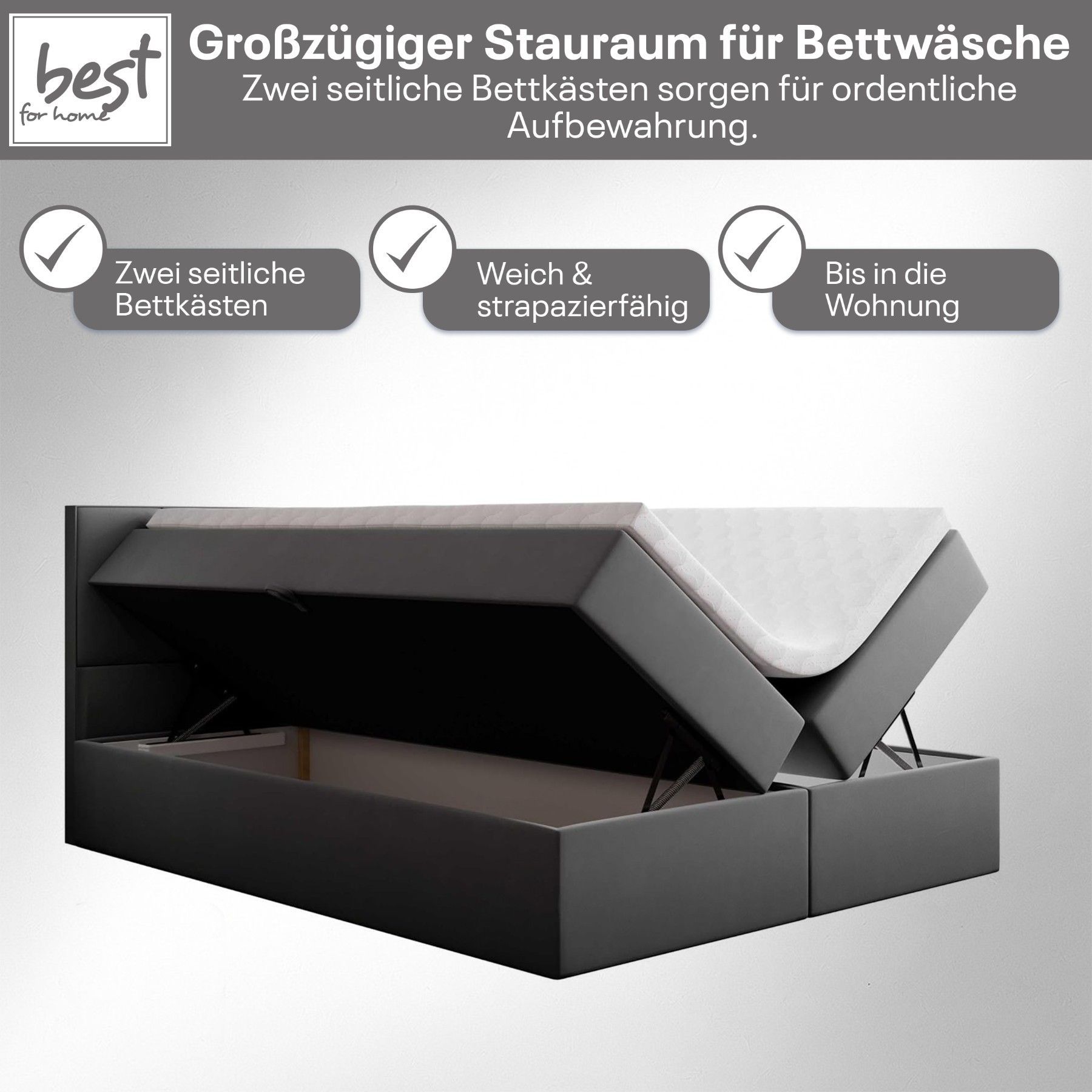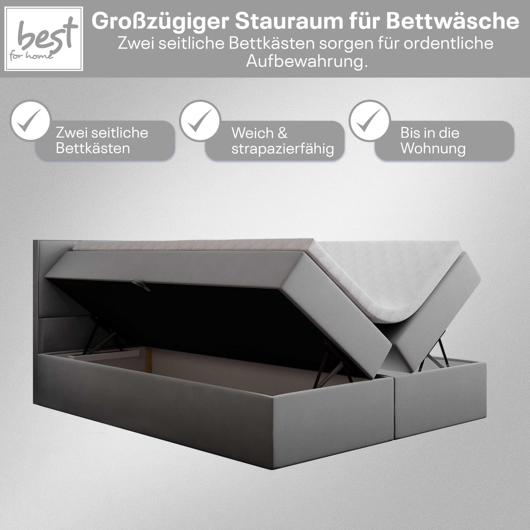 Best For Home Boxspringbett Jubilee mit Bonellfederkern, Topper & Bettkasten - Modern