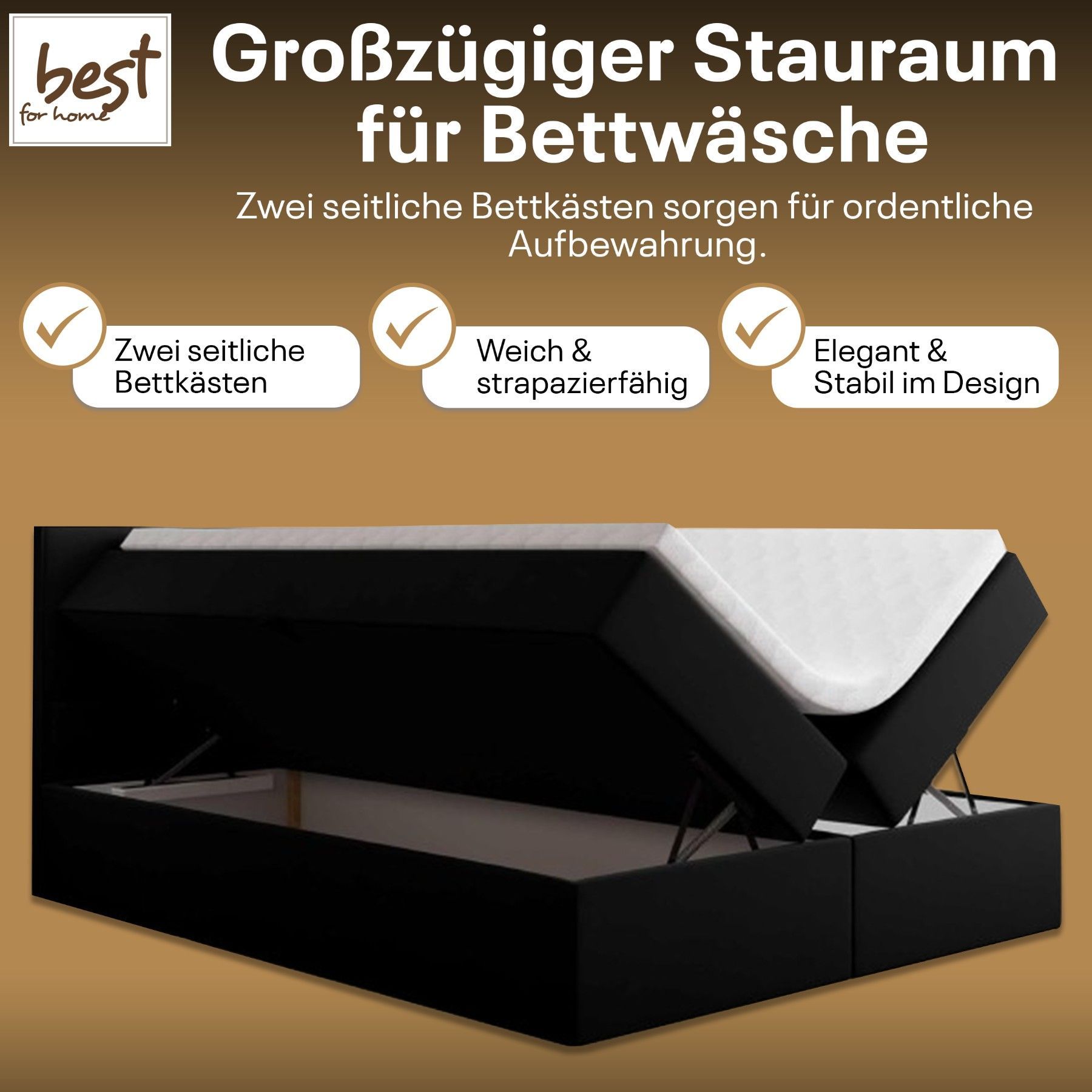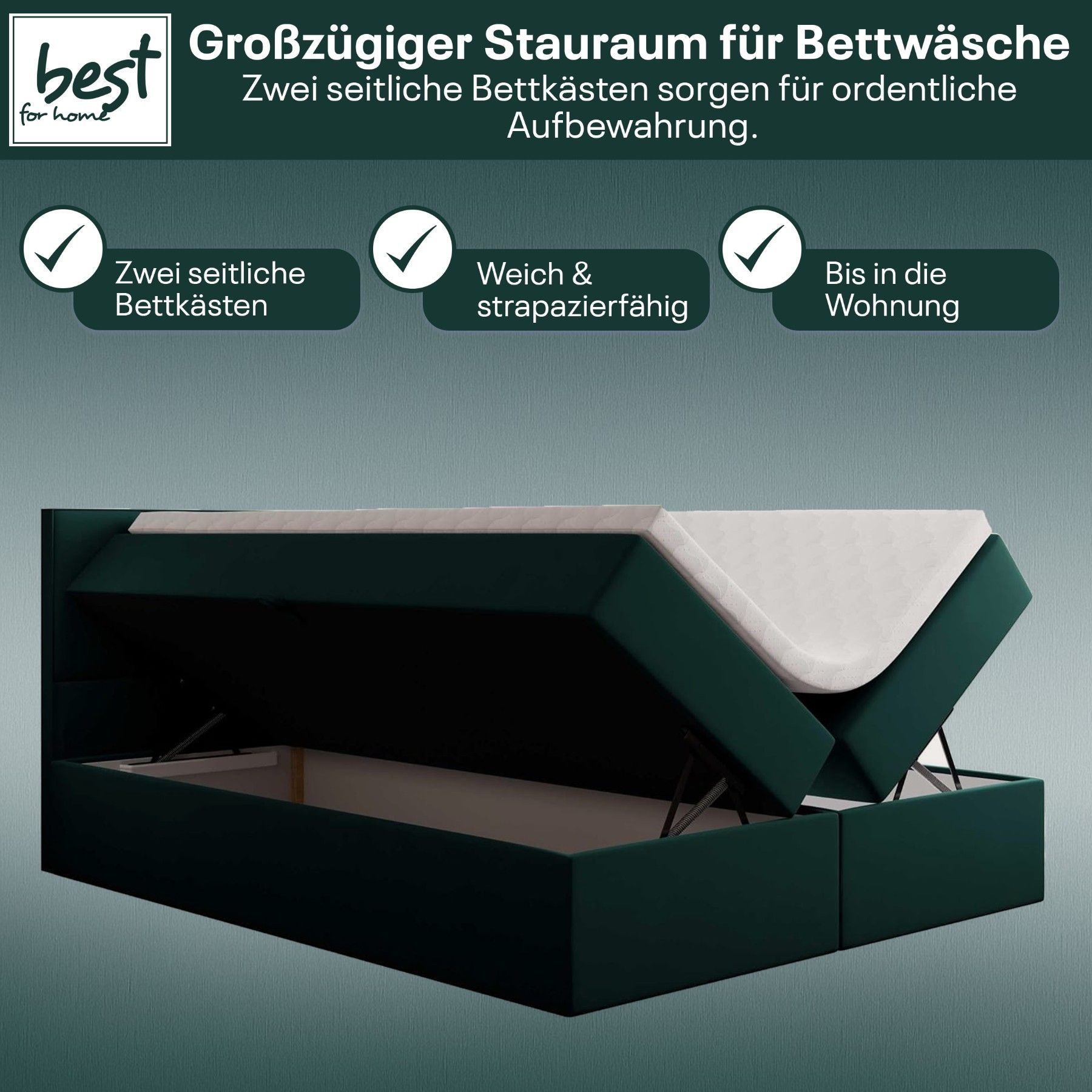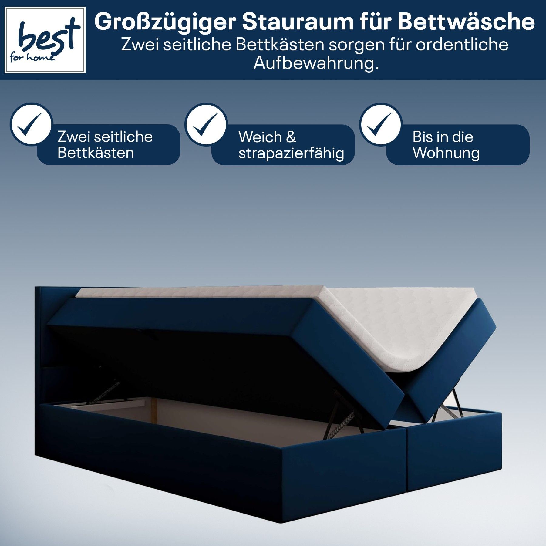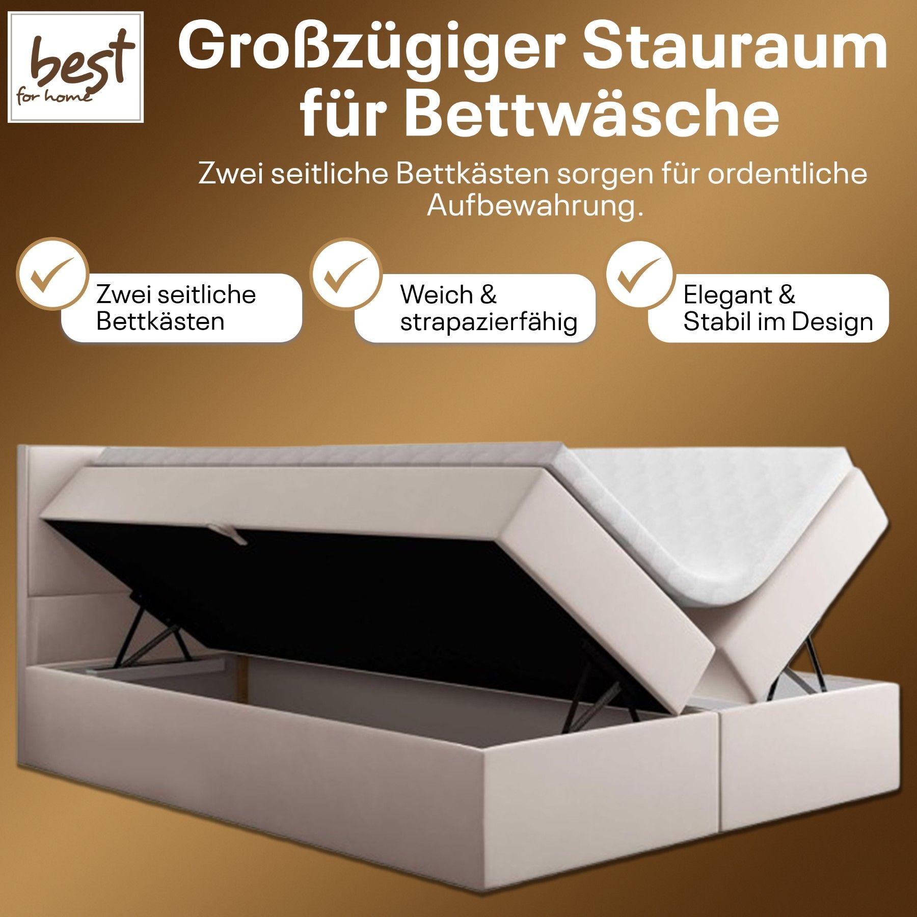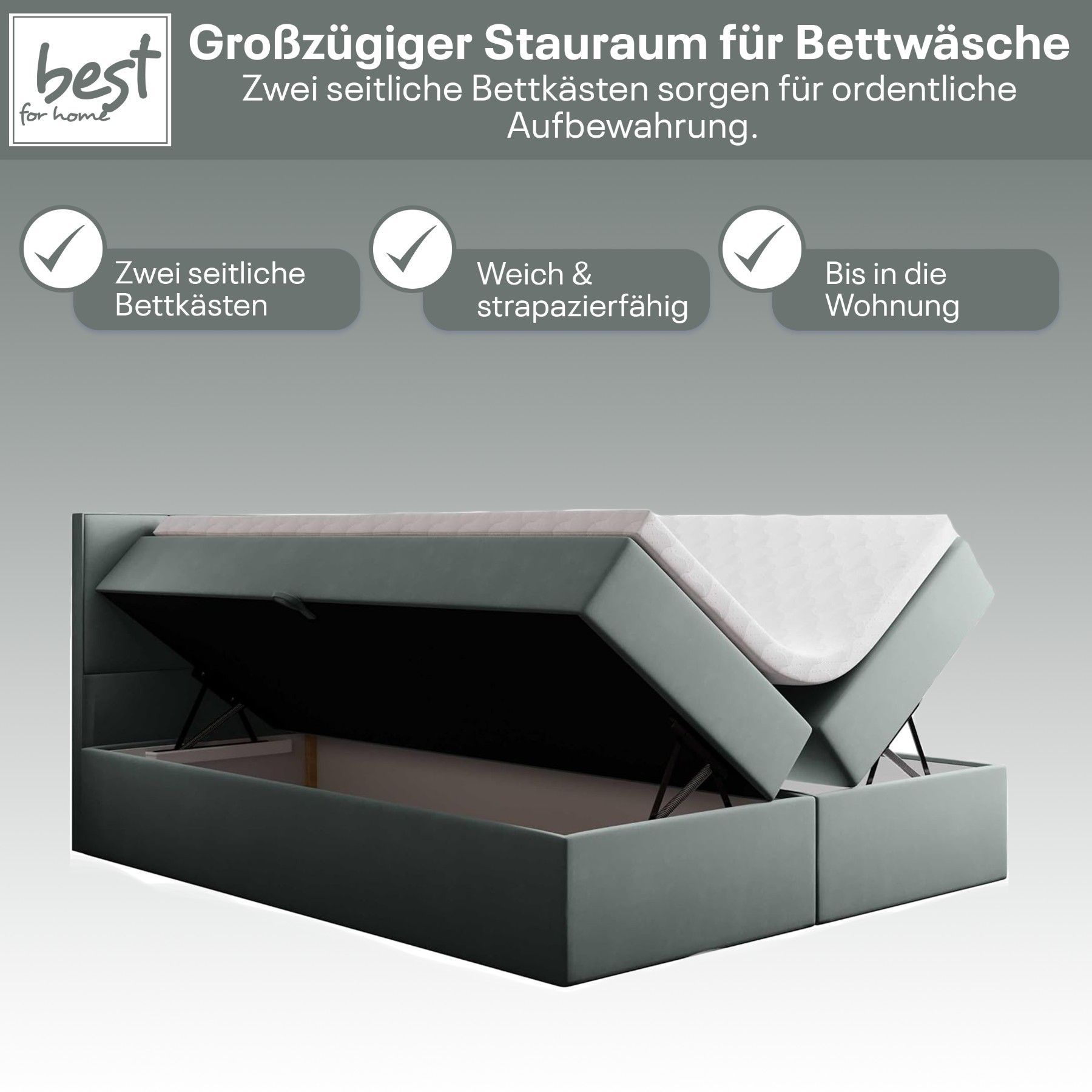 Best For Home Boxspringbett Jubilee mit Bonellfederkern, Topper & Bettkasten - Modern