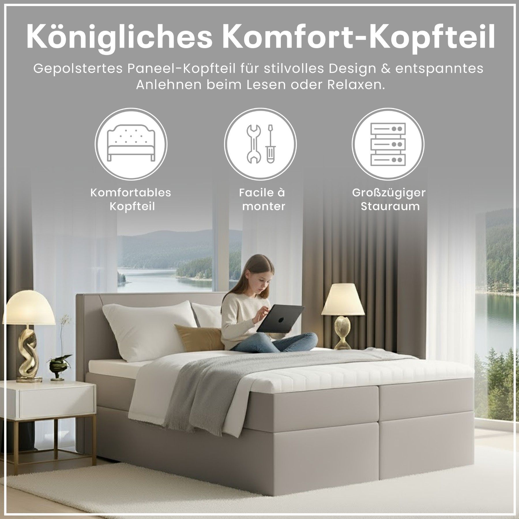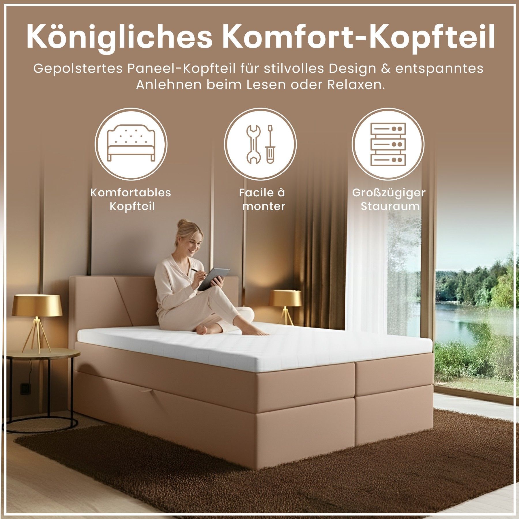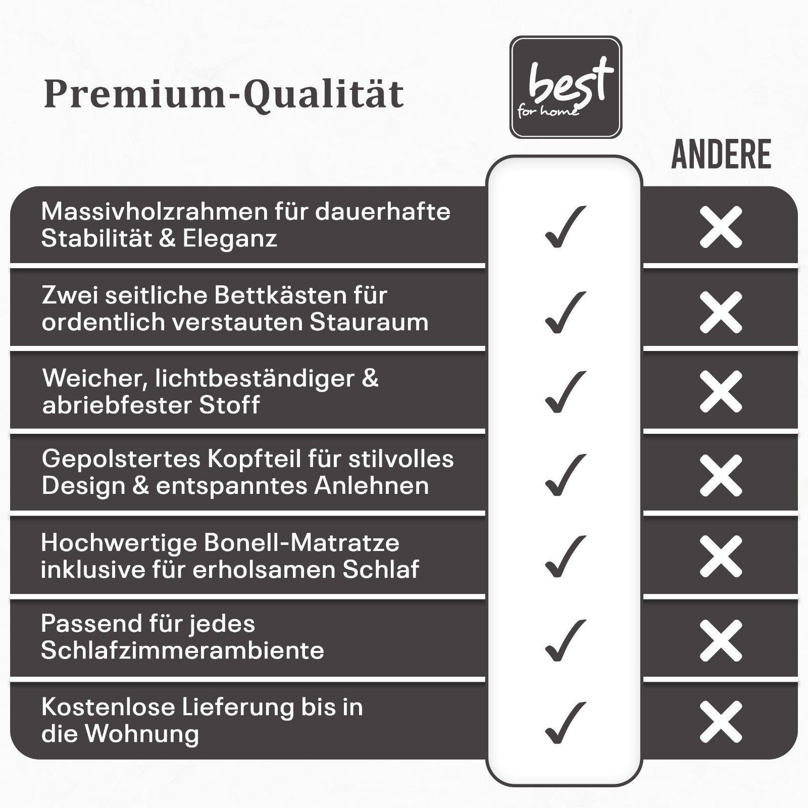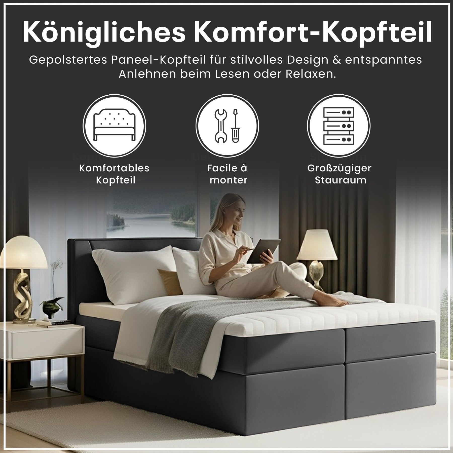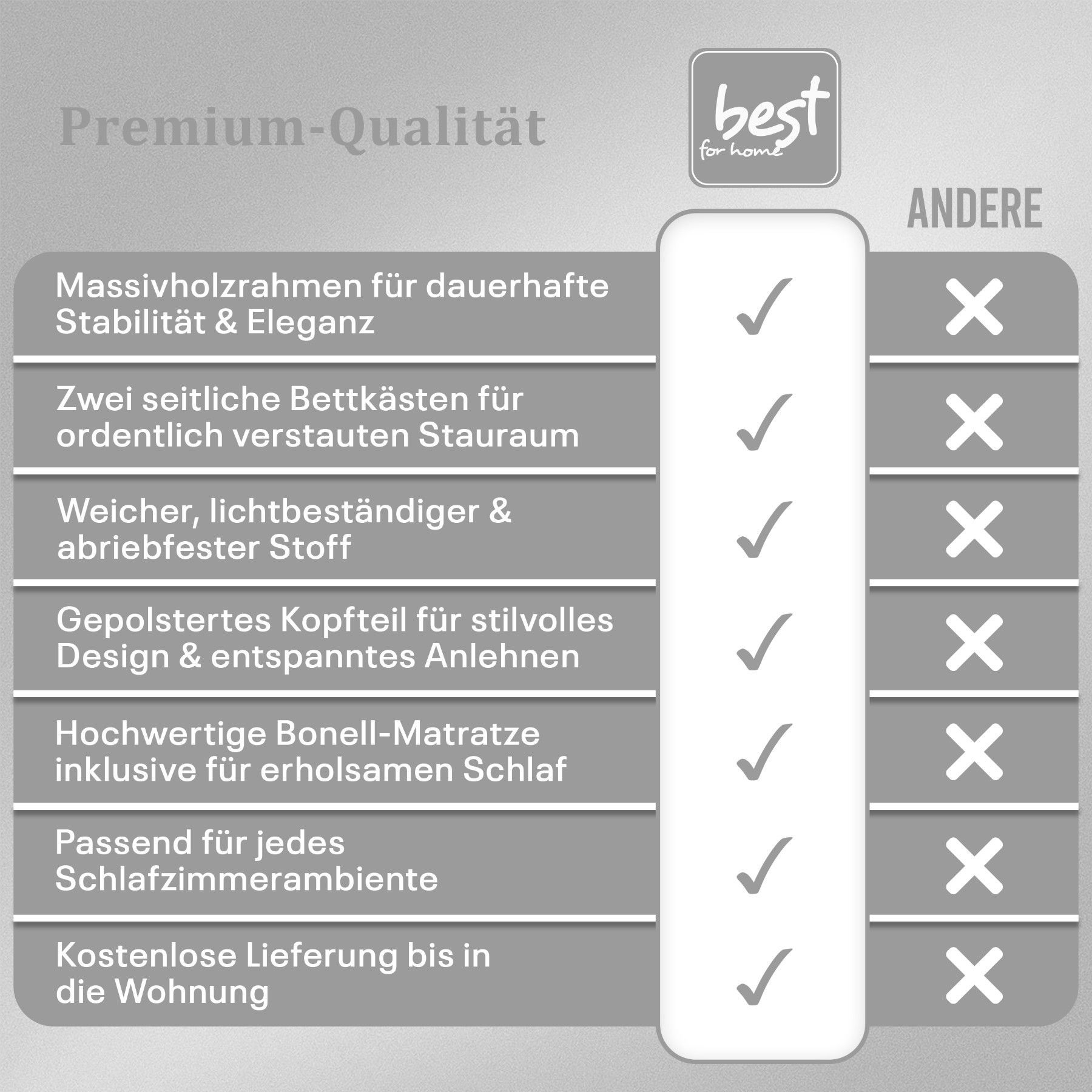 Best For Home Boxspringbett Jubilee mit Bonellfederkern, Topper & Bettkasten - Modern