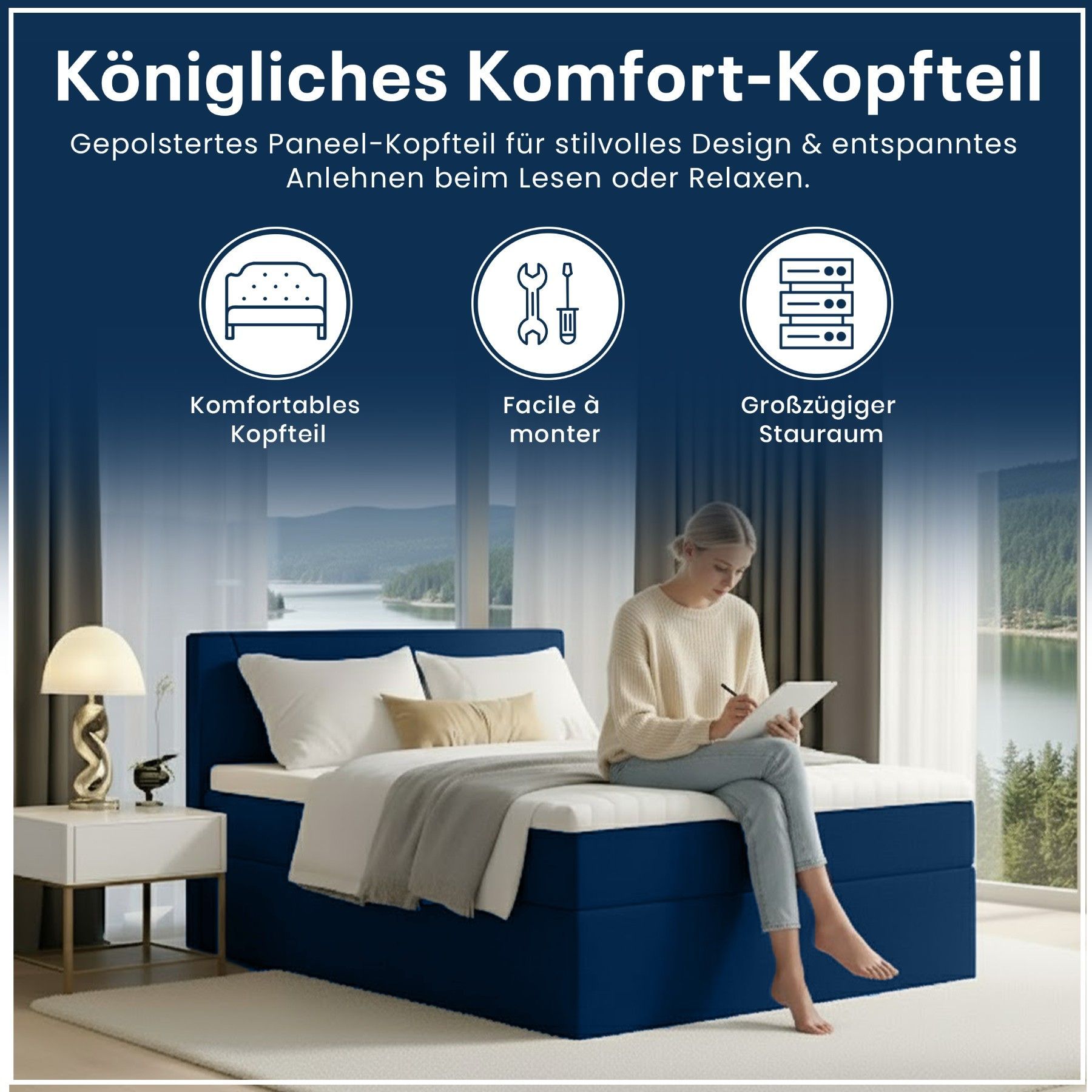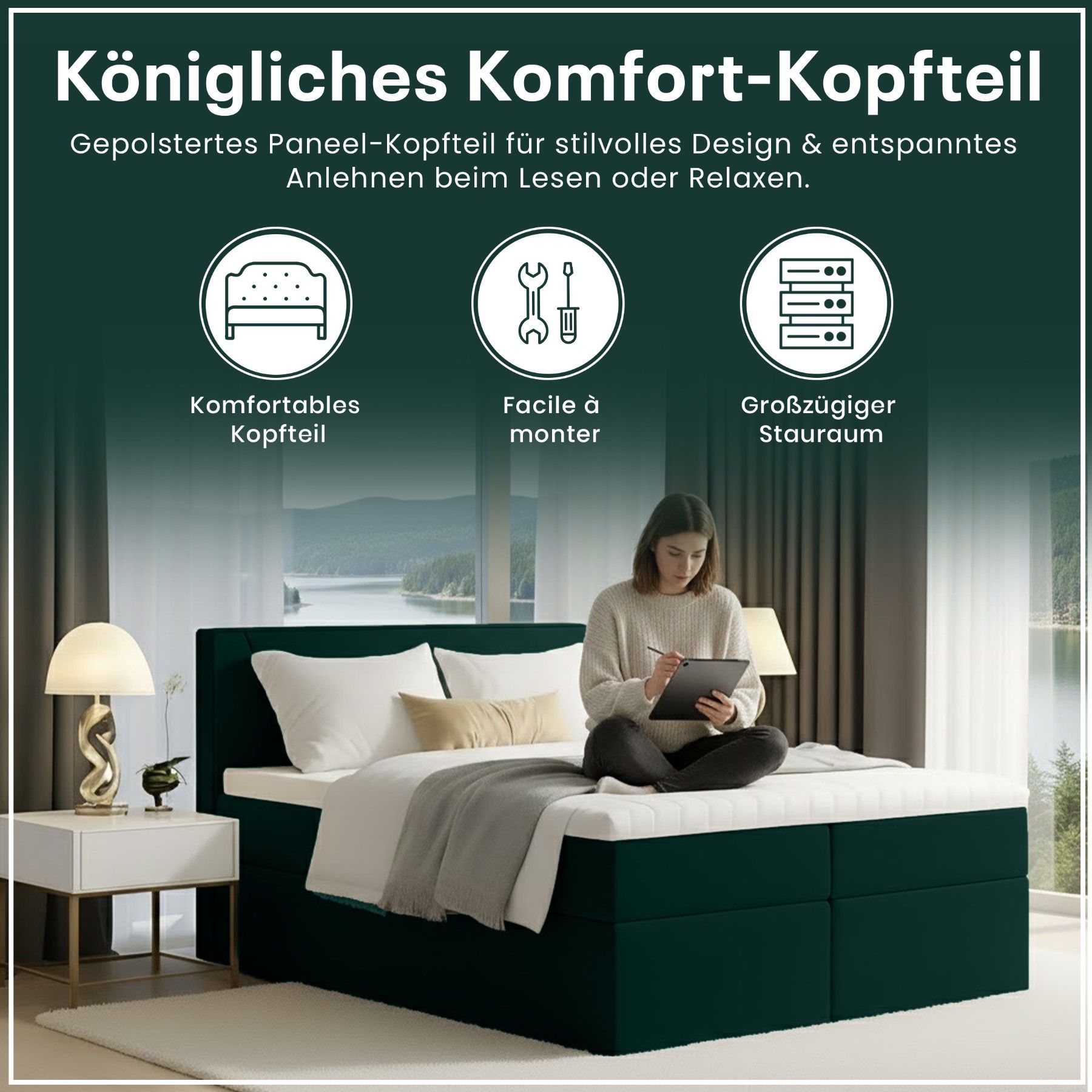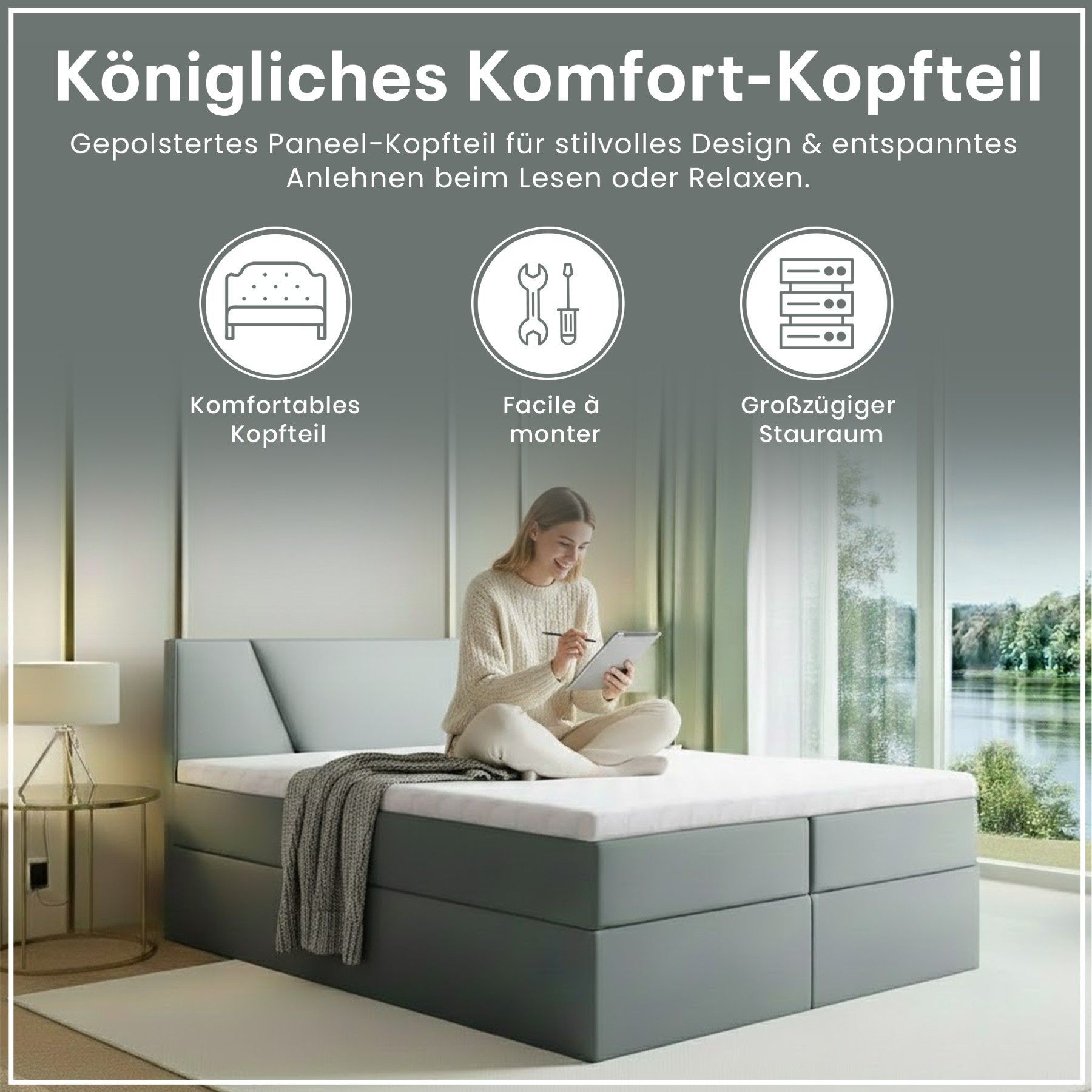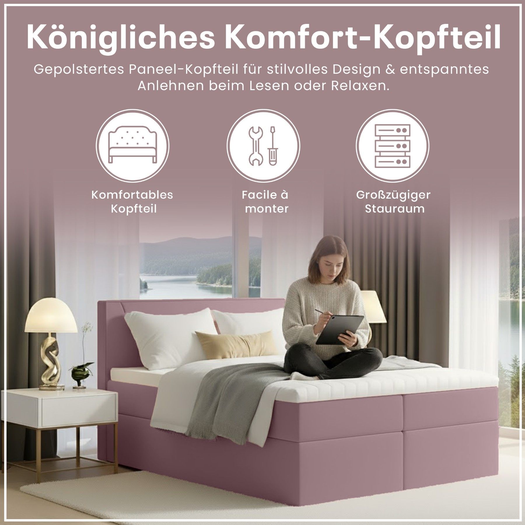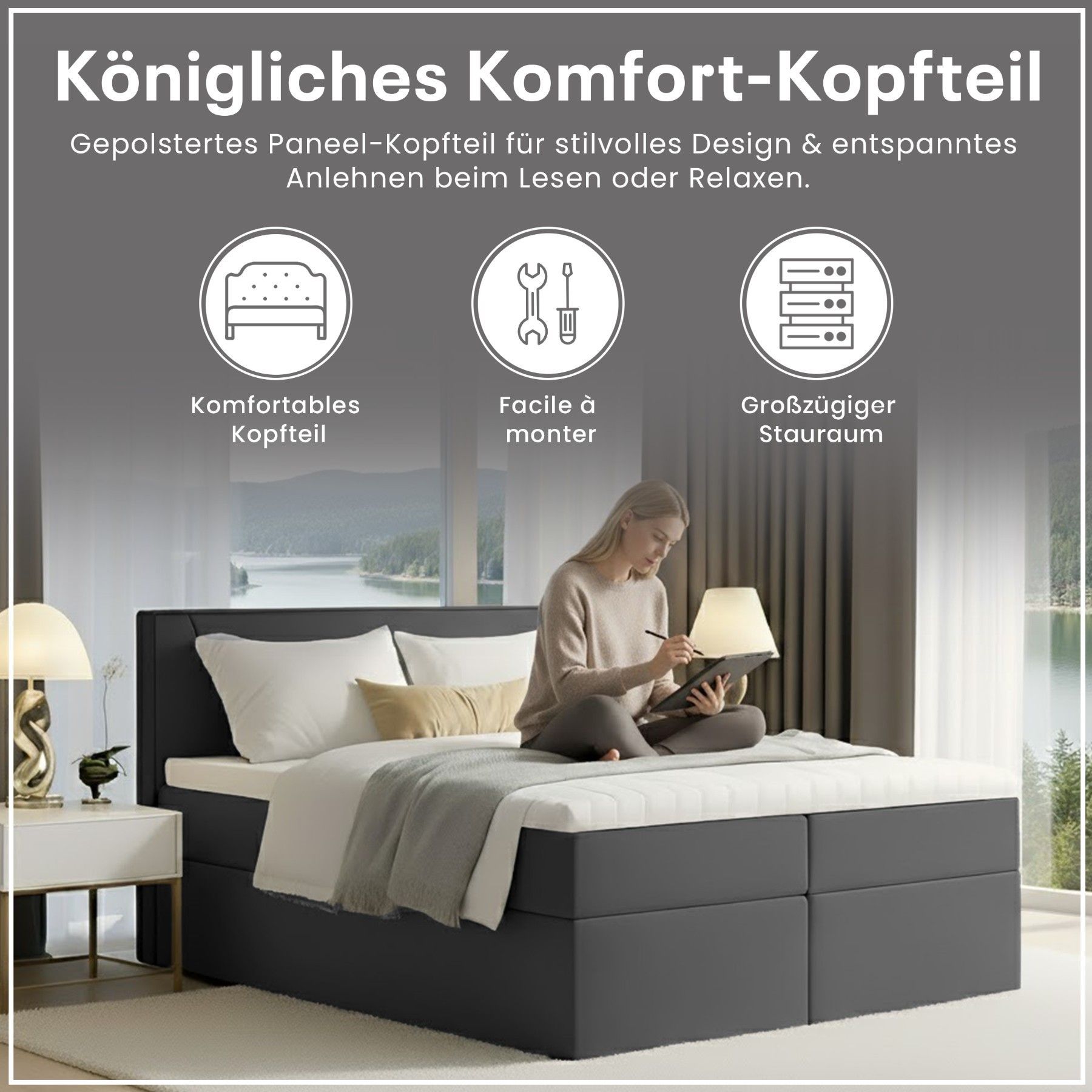 Best For Home Boxspringbett Jubilee mit Bonellfederkern, Topper & Bettkasten - Modern
