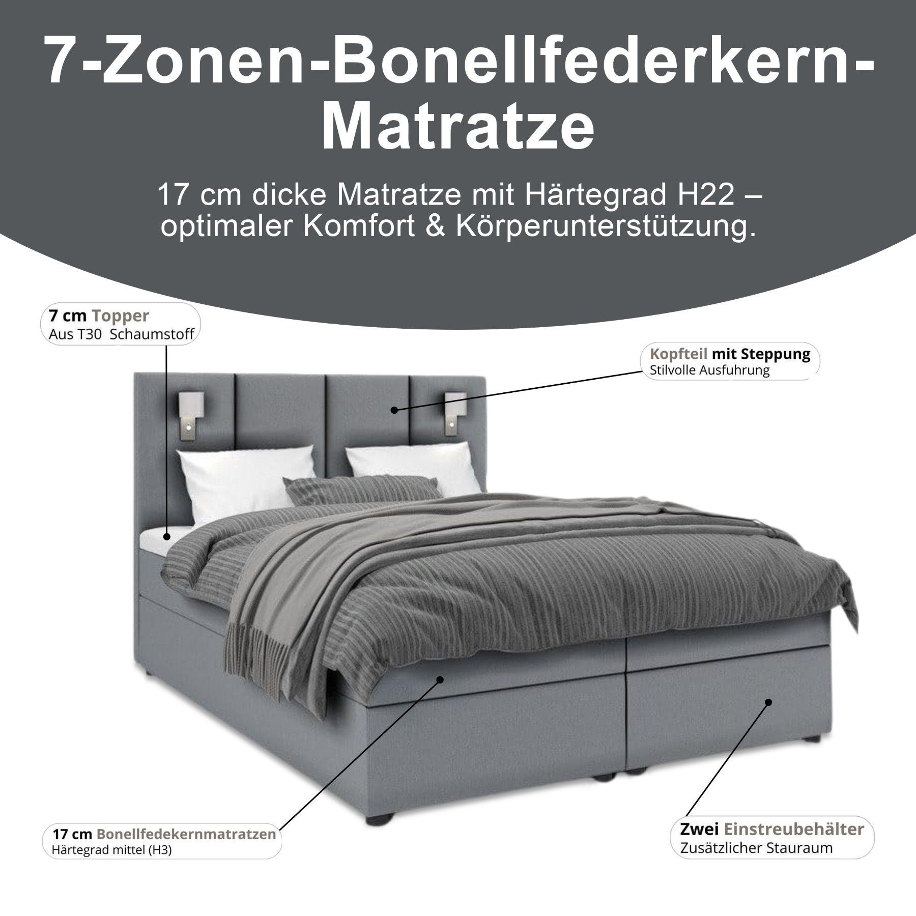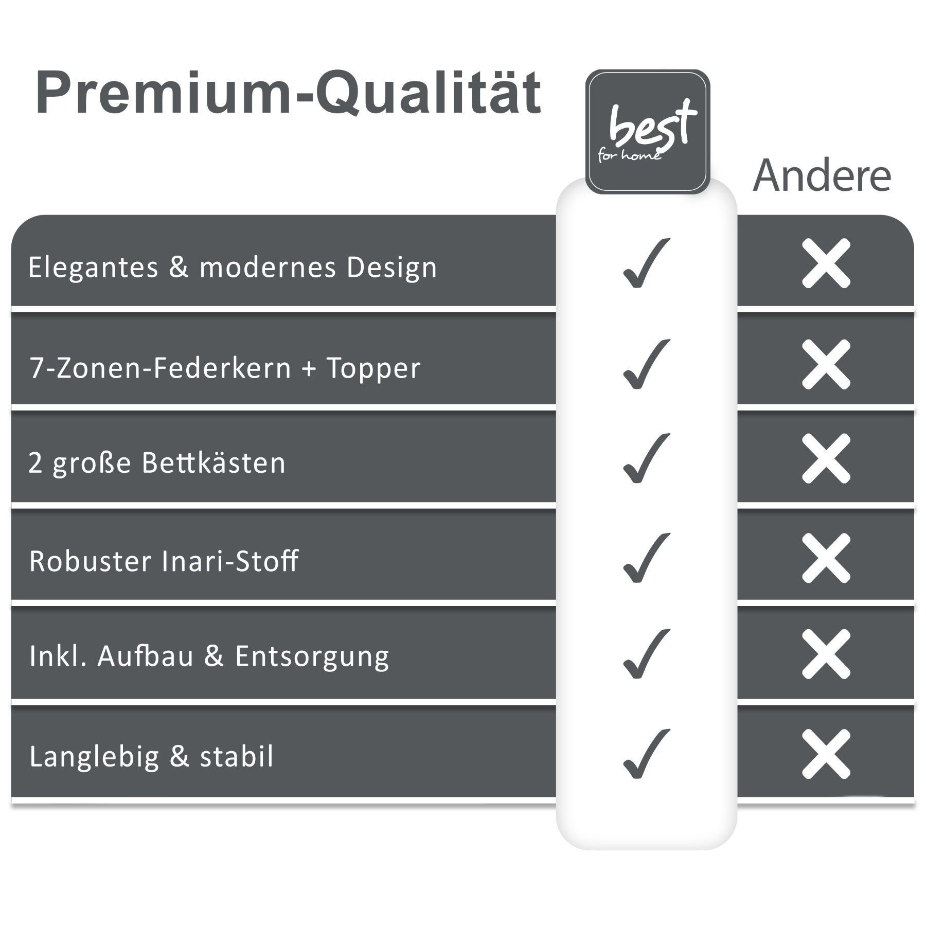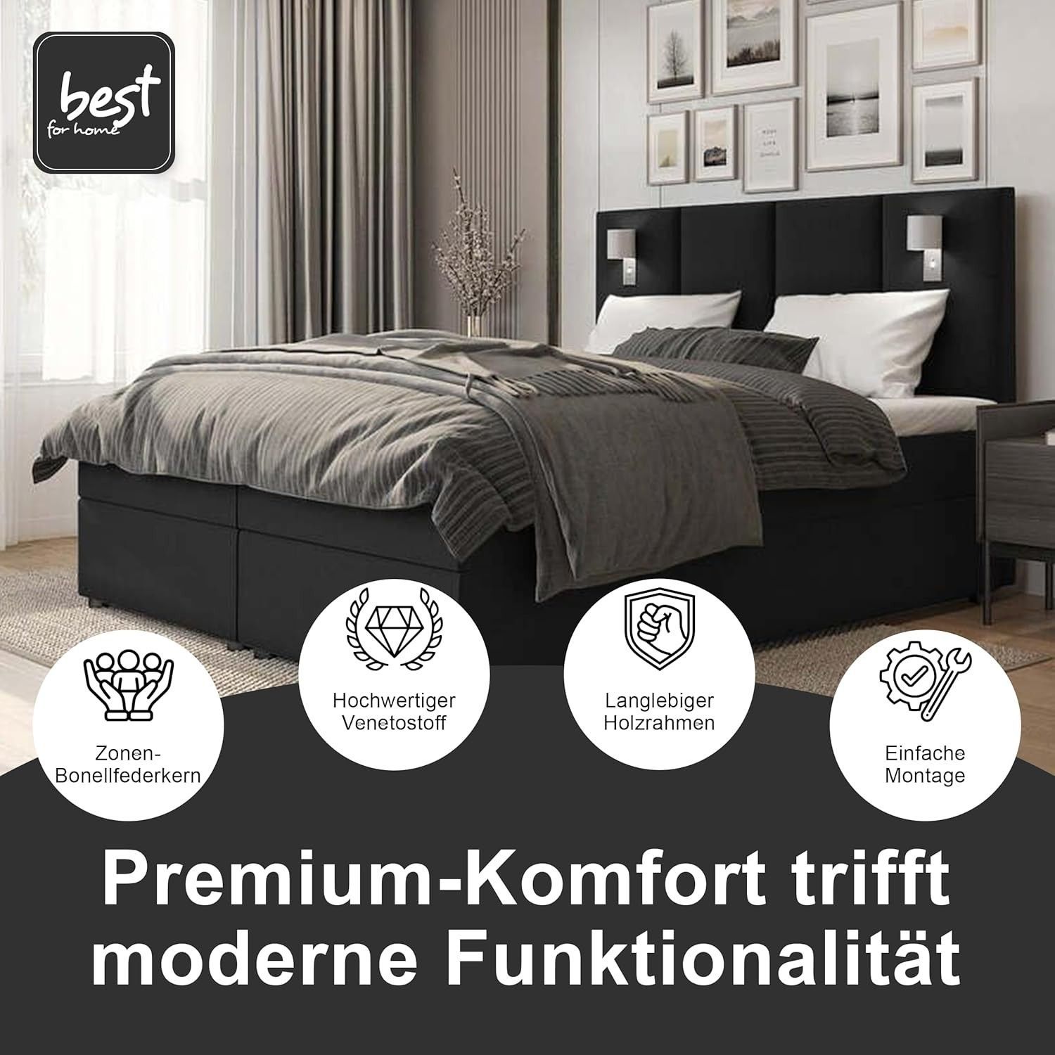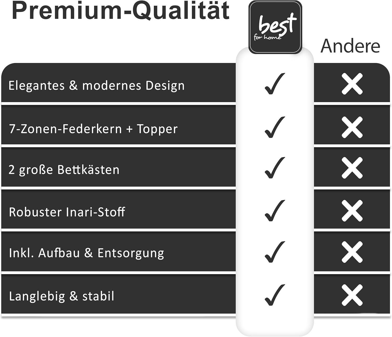 Best For Home Boxspringbett Parma mit 7-Zonen-Bonellfederkern, Topper T-65 & Bettkast