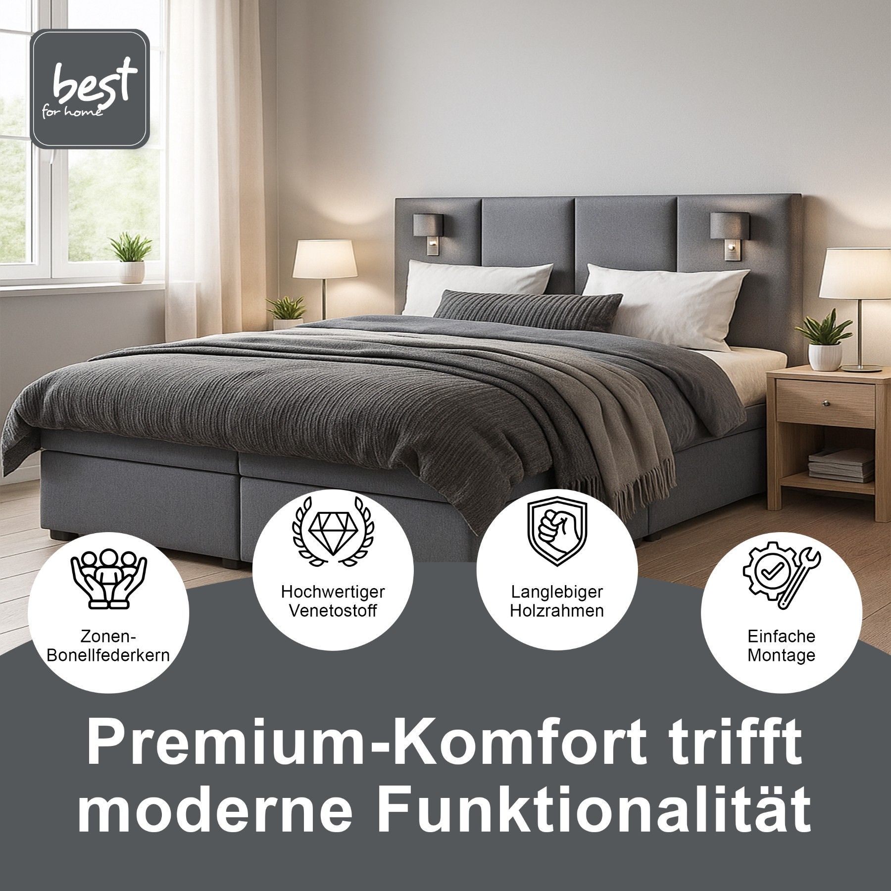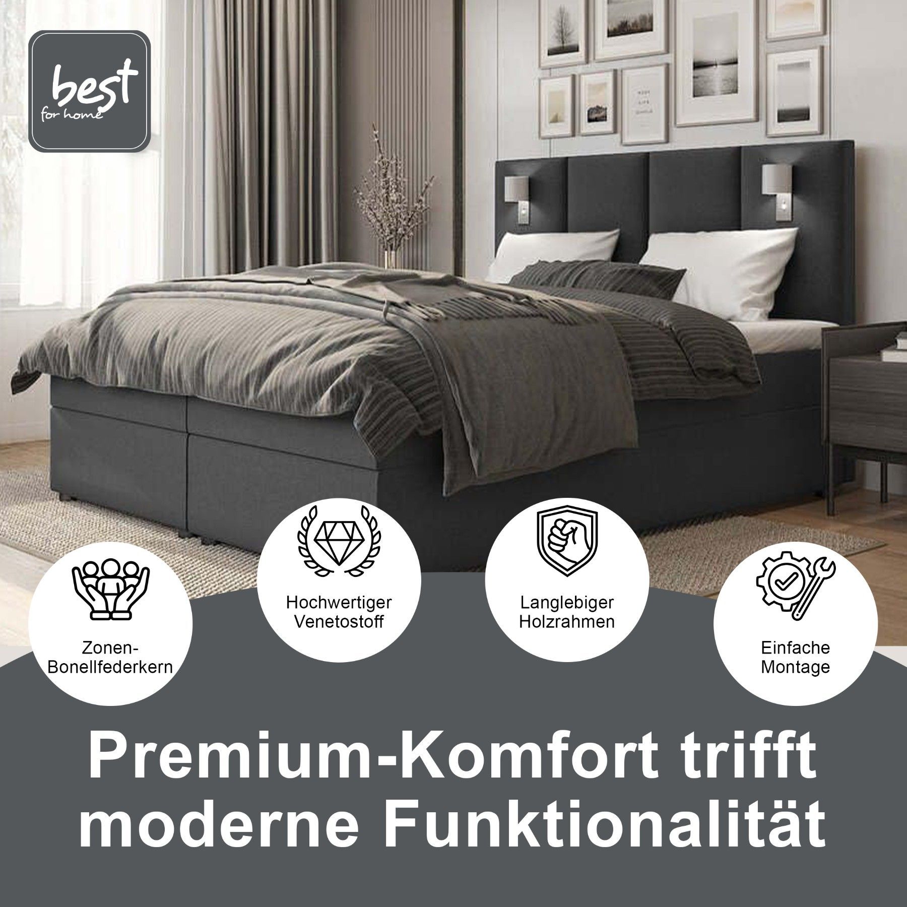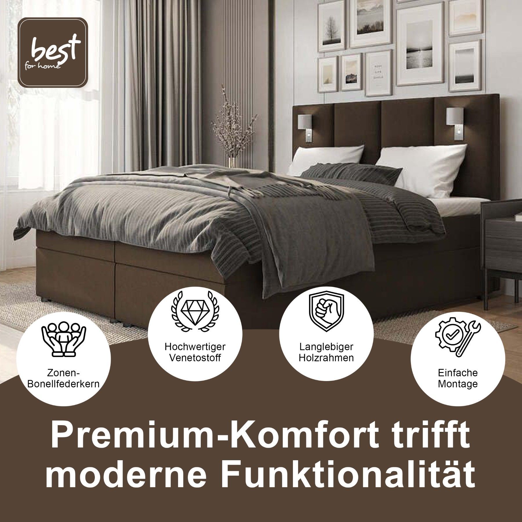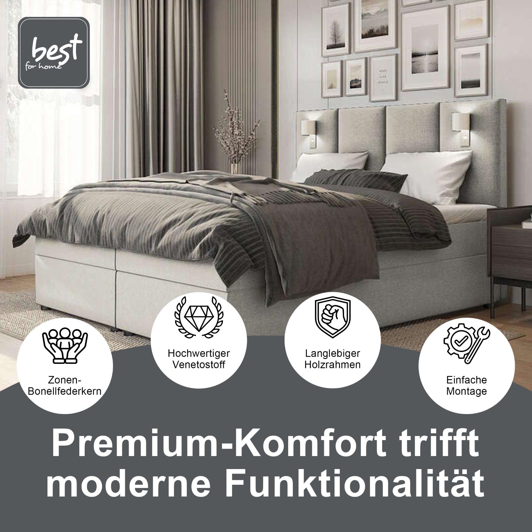 Best For Home Boxspringbett Parma mit 7-Zonen-Bonellfederkern, Topper T-65 & Bettkast