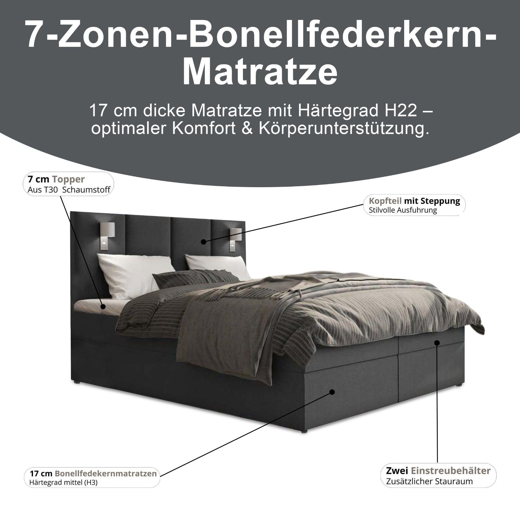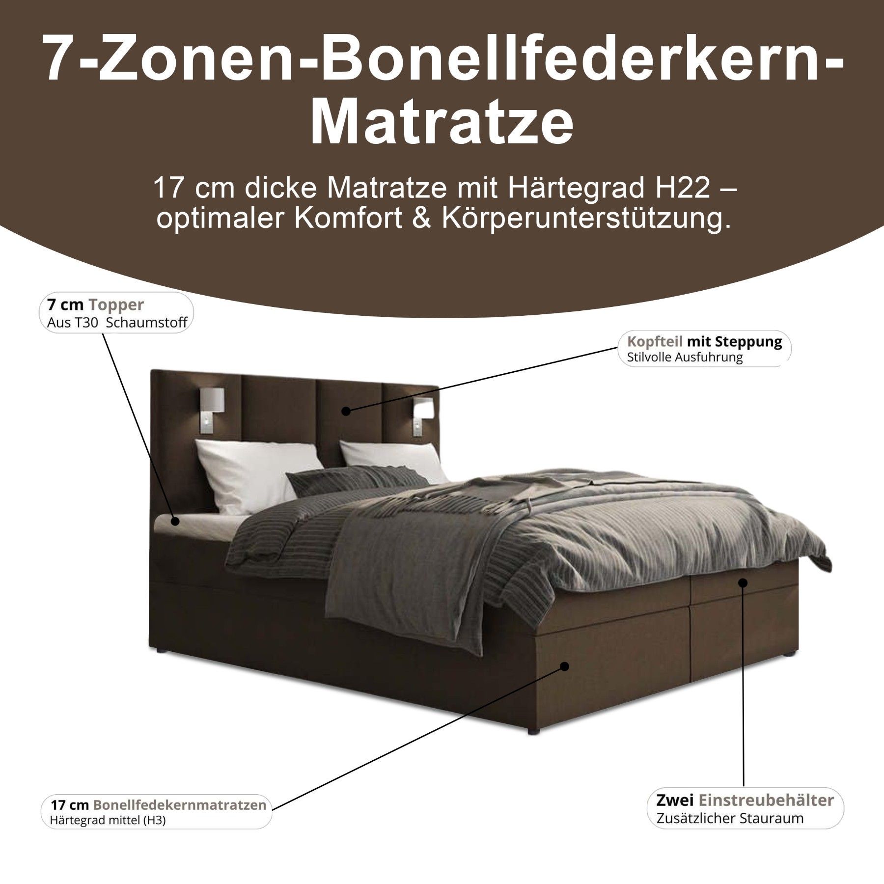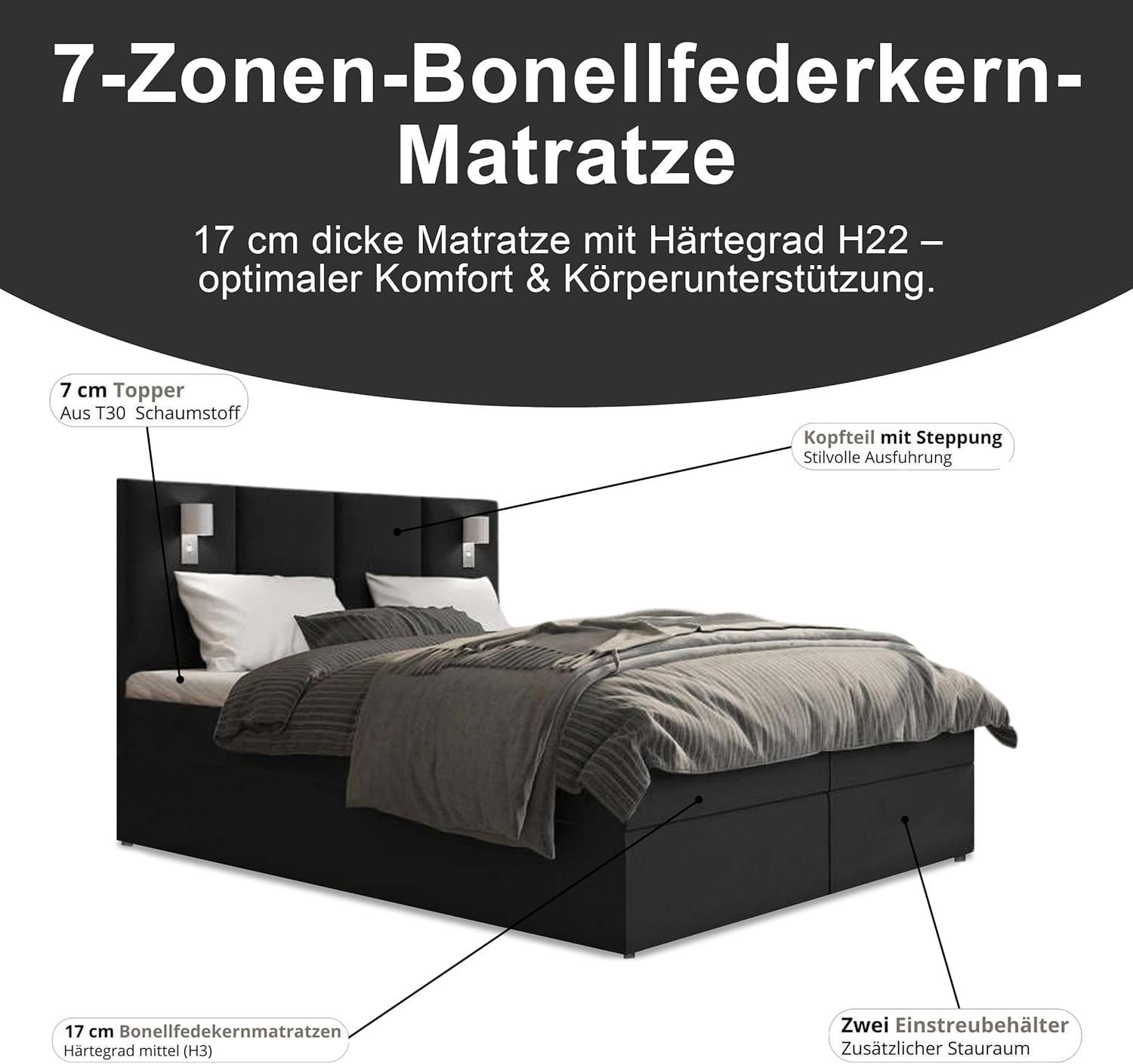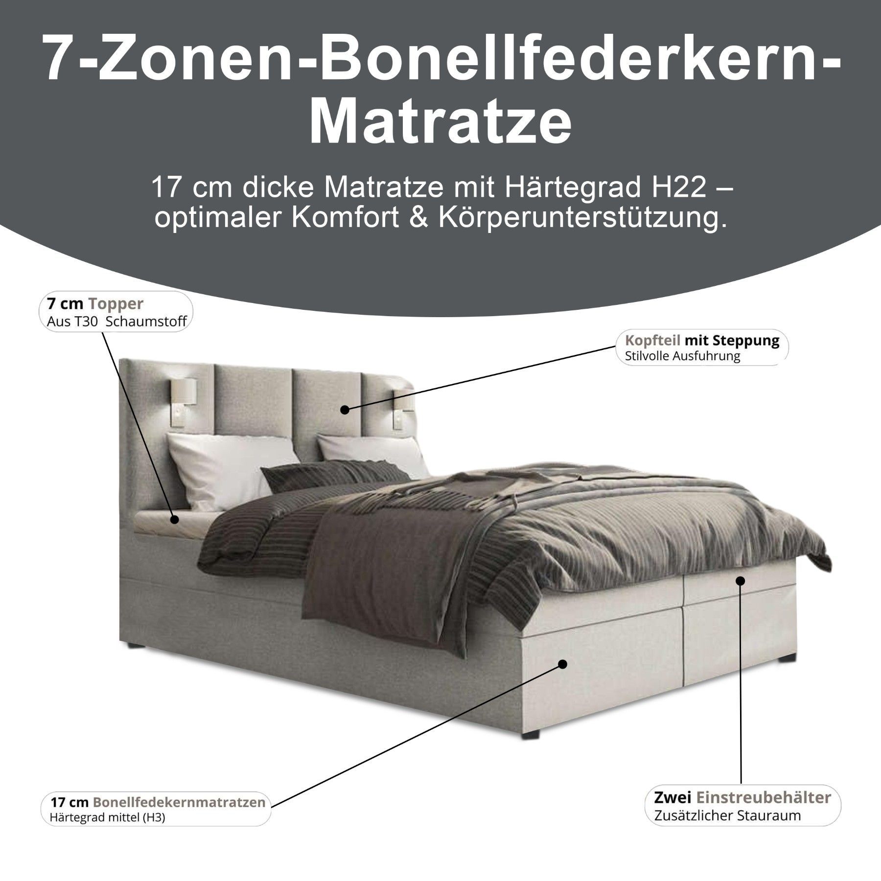 Best For Home Boxspringbett Parma mit 7-Zonen-Bonellfederkern, Topper T-65 & Bettkast