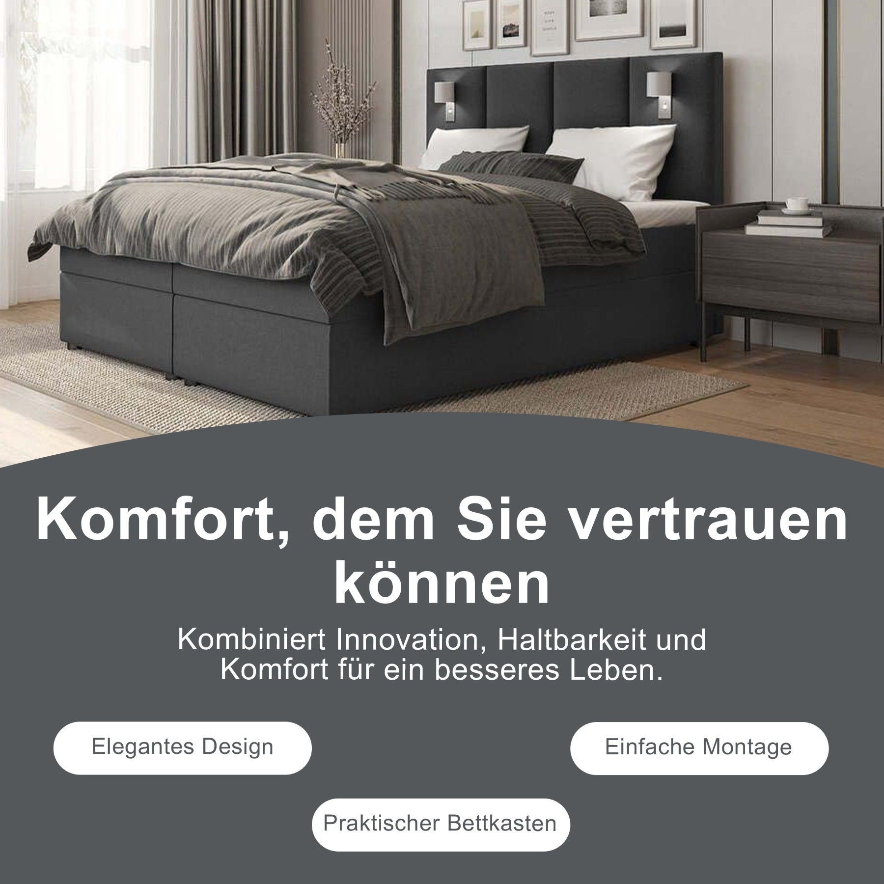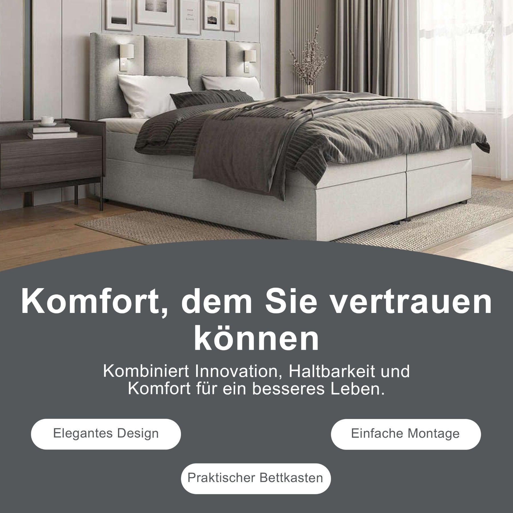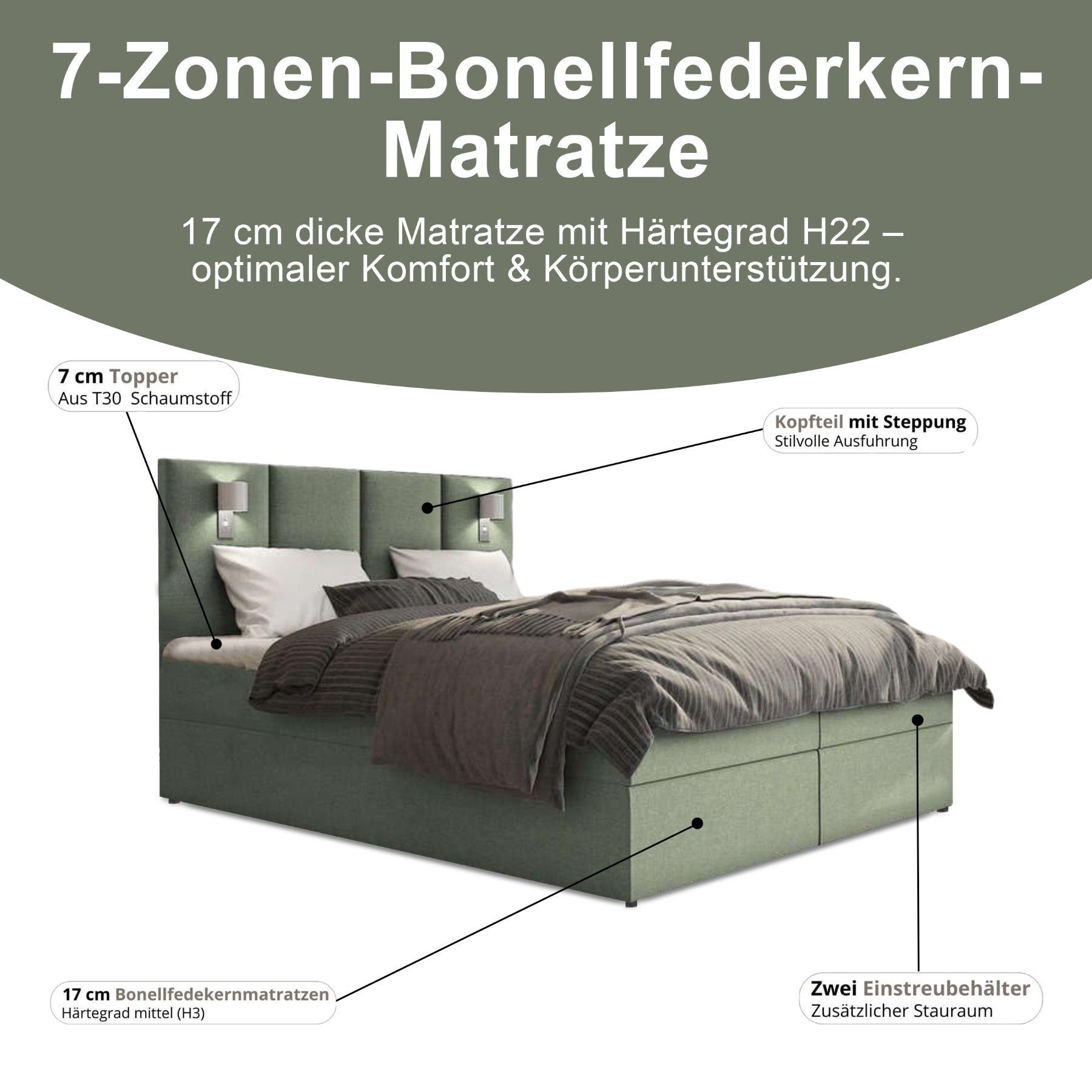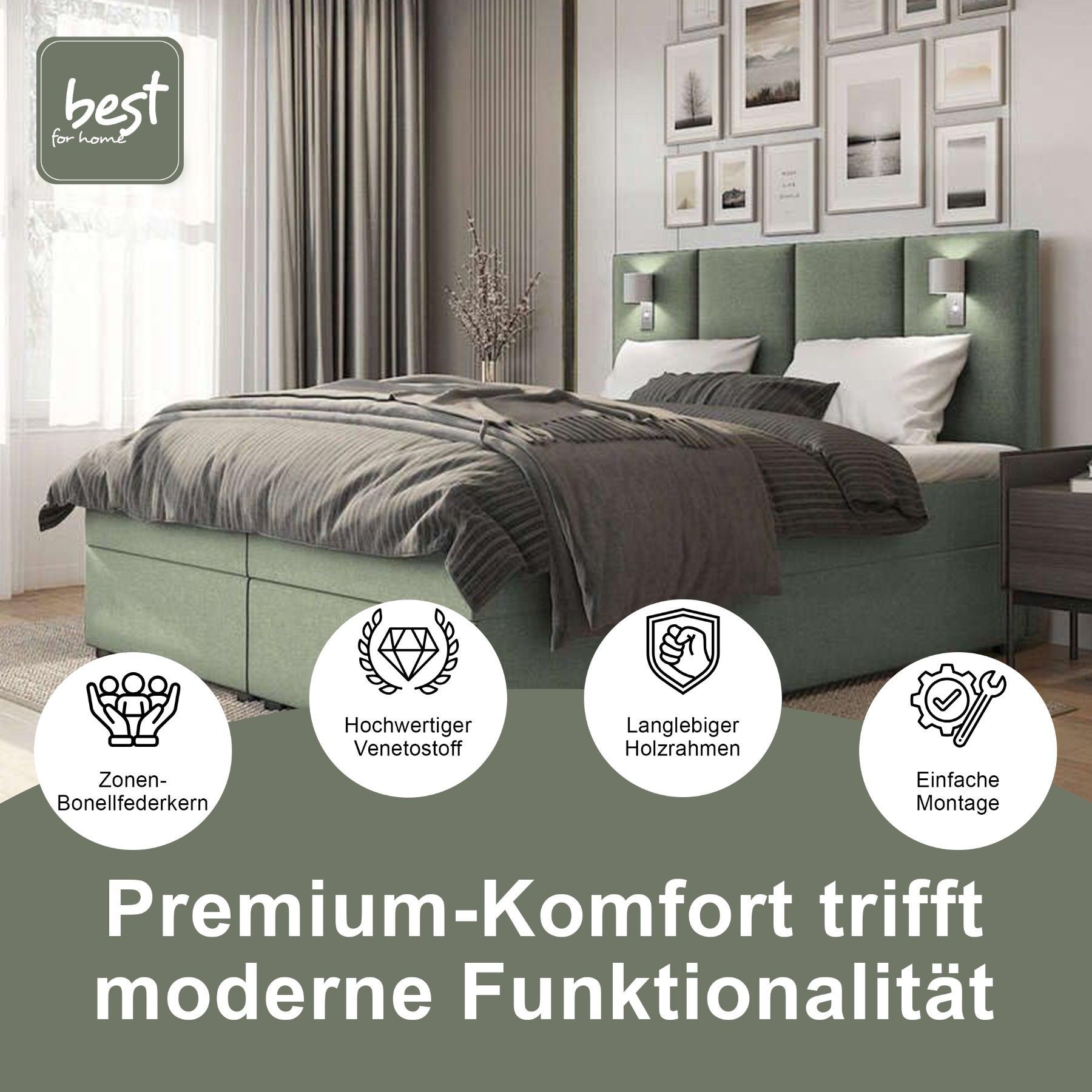 Best For Home Boxspringbett Parma mit 7-Zonen-Bonellfederkern, Topper T-65 & Bettkast