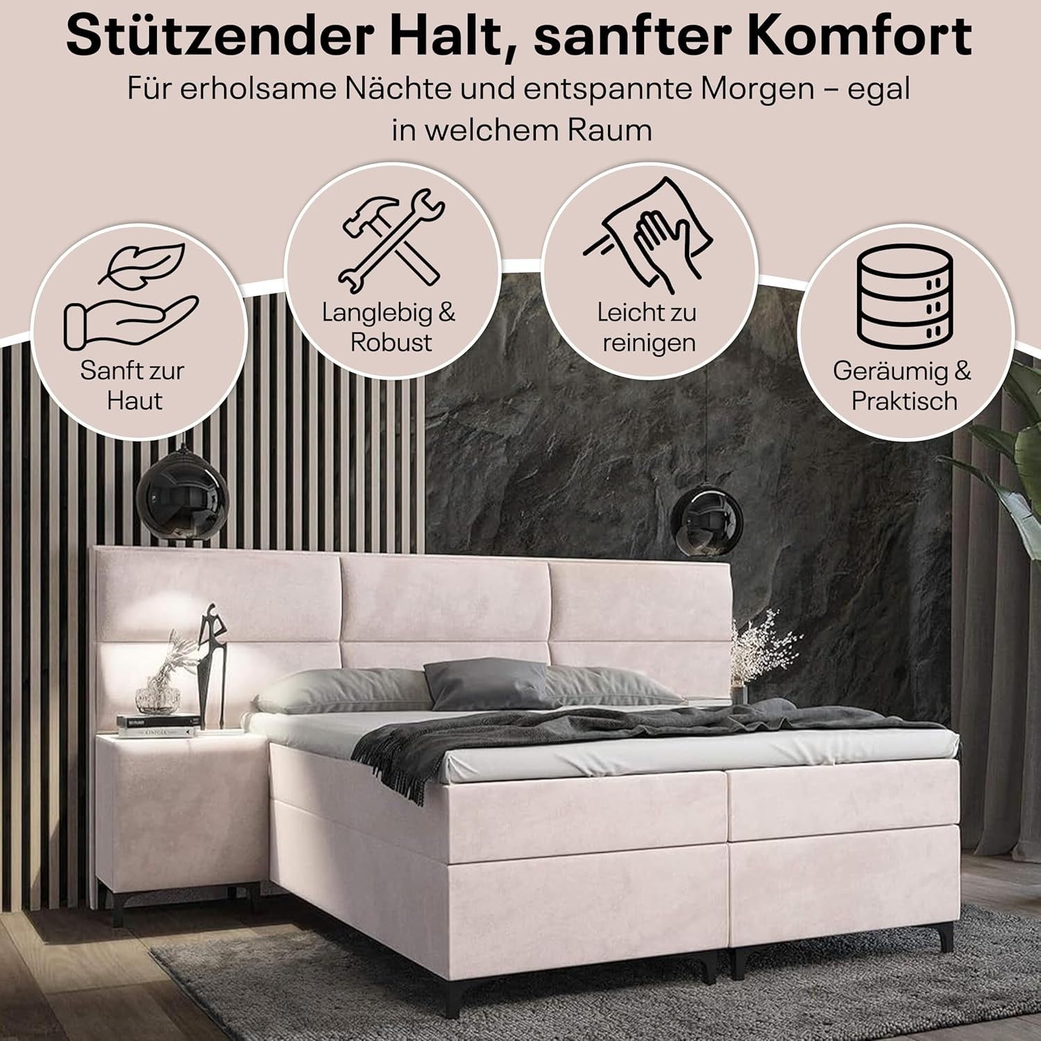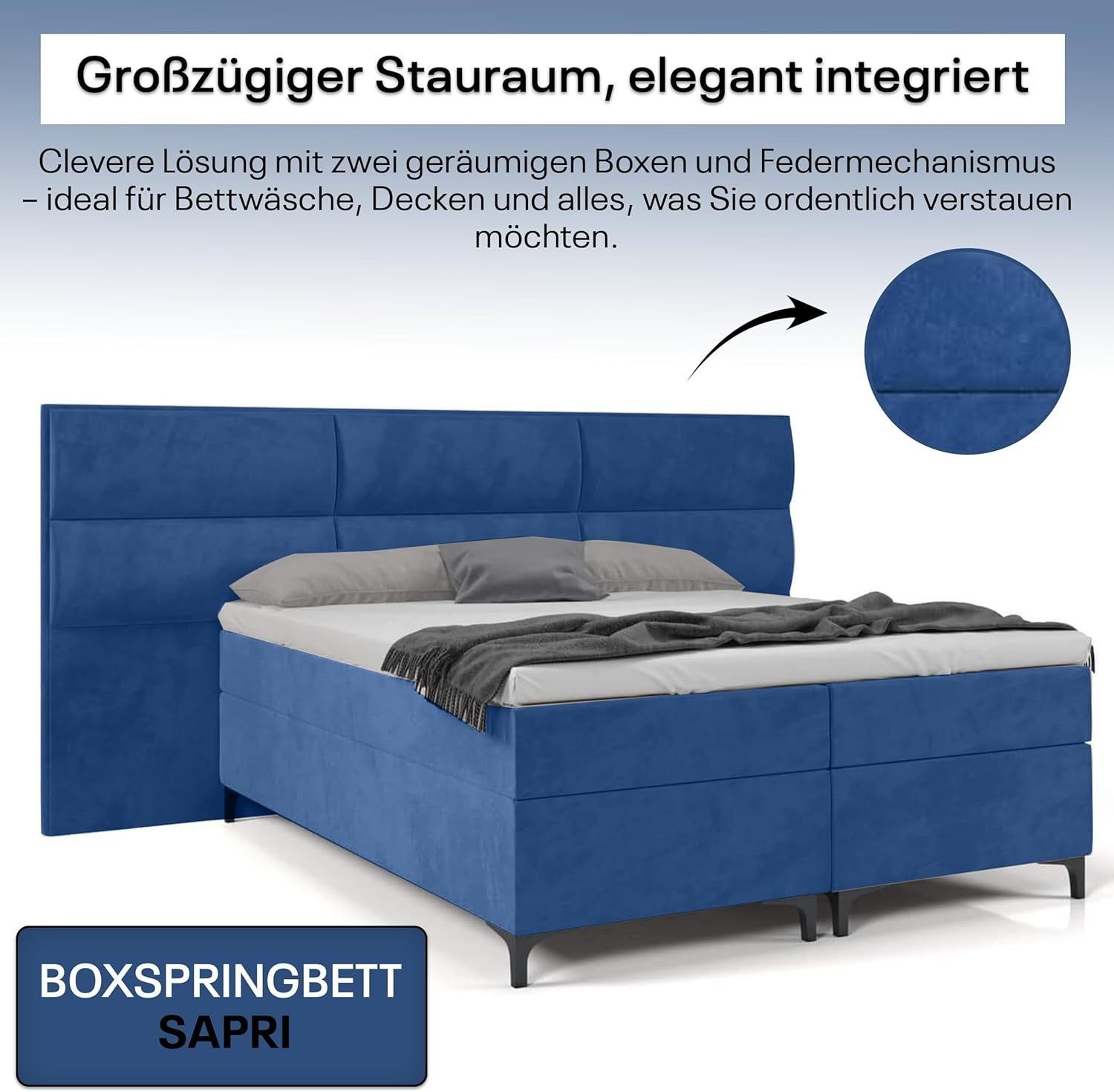 Best For Home Boxspringbett Sapri (120?200?×?200?cm) mit Bettkasten & 2 Nachttischen
