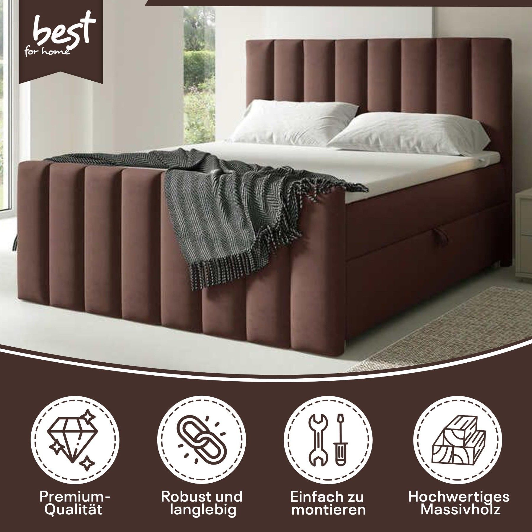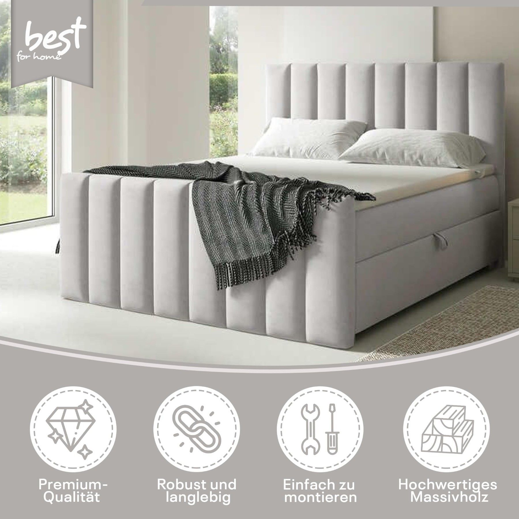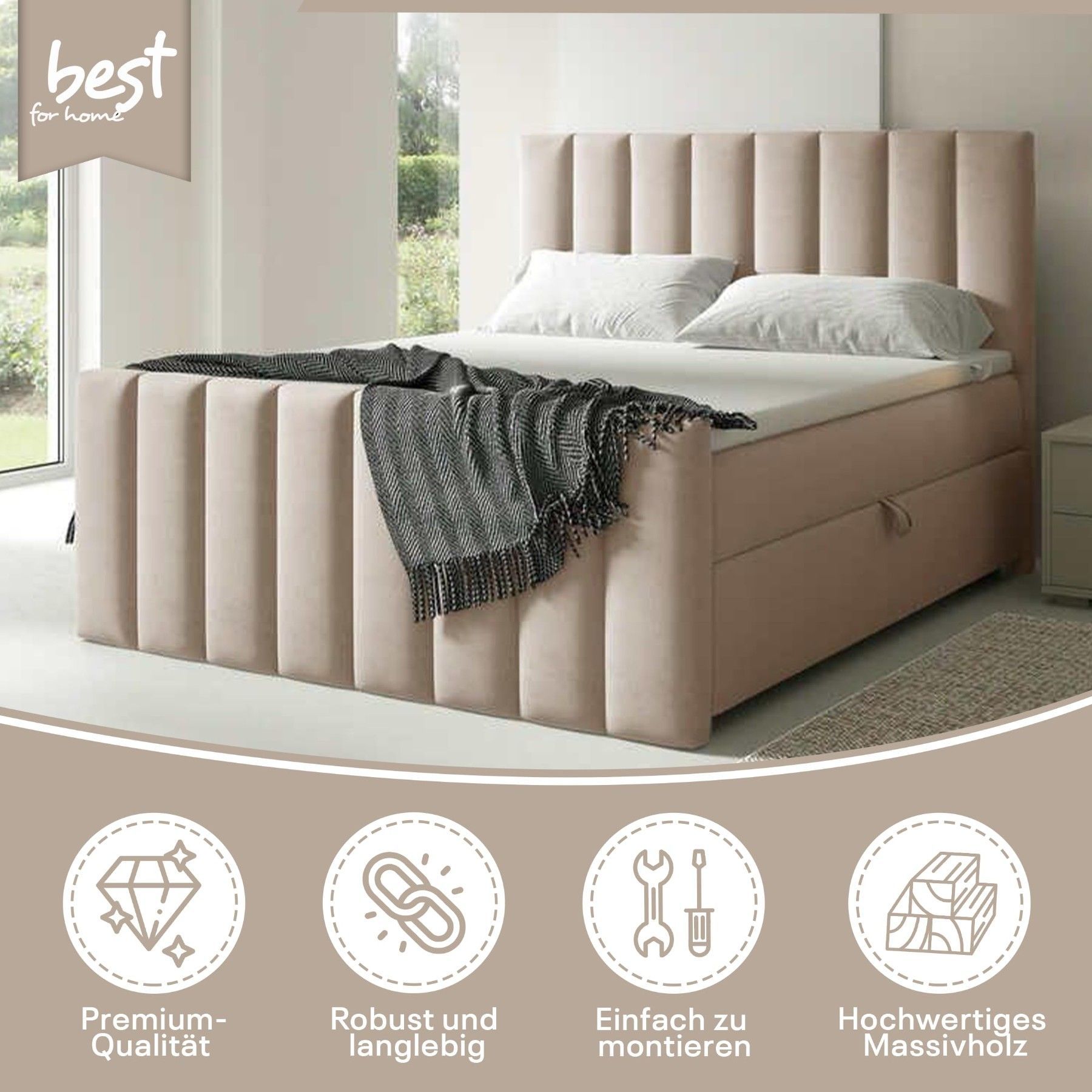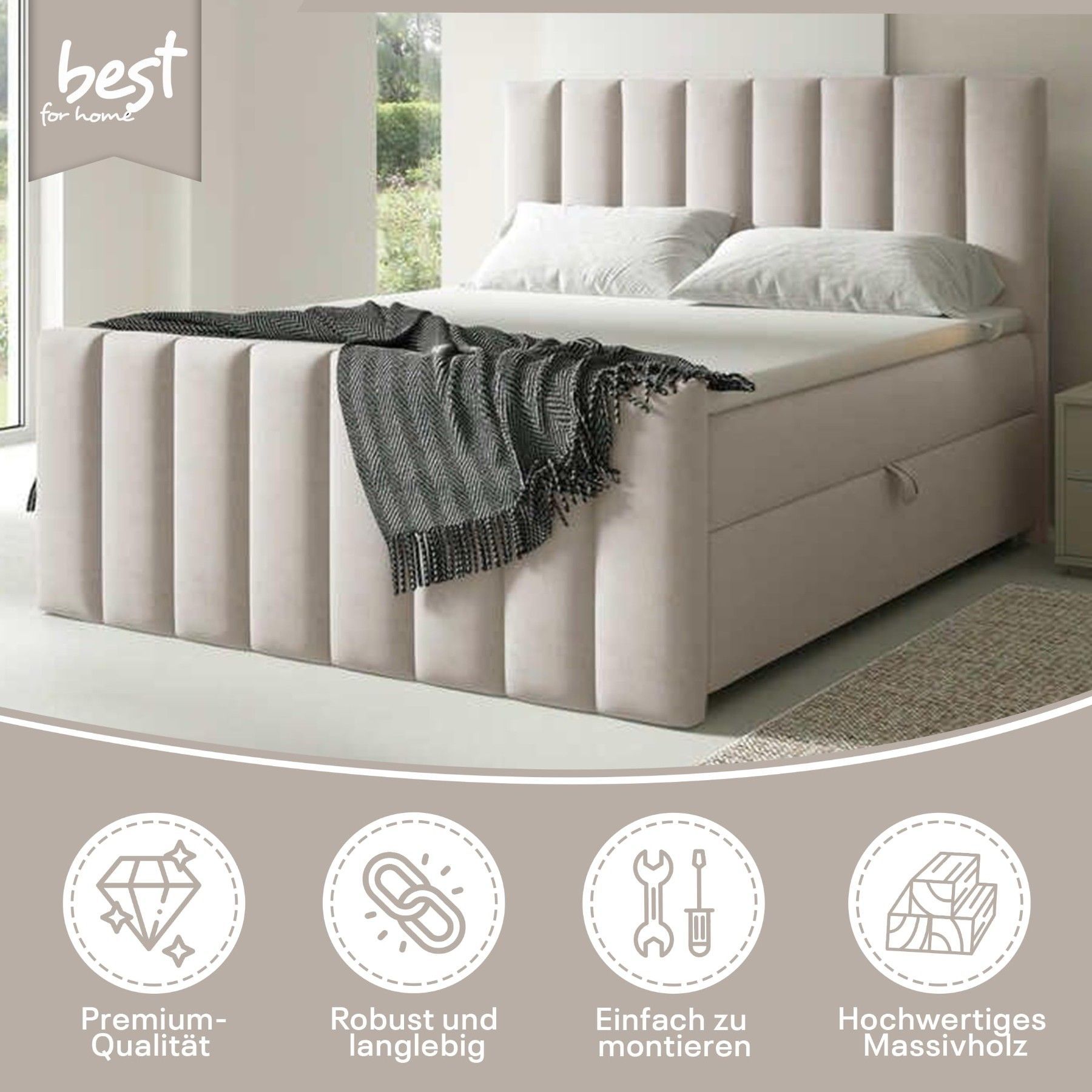 Best For Home Boxspringbett Trinity K-10 Lux | Mit Topper & Bettkasten - Komfort pur
