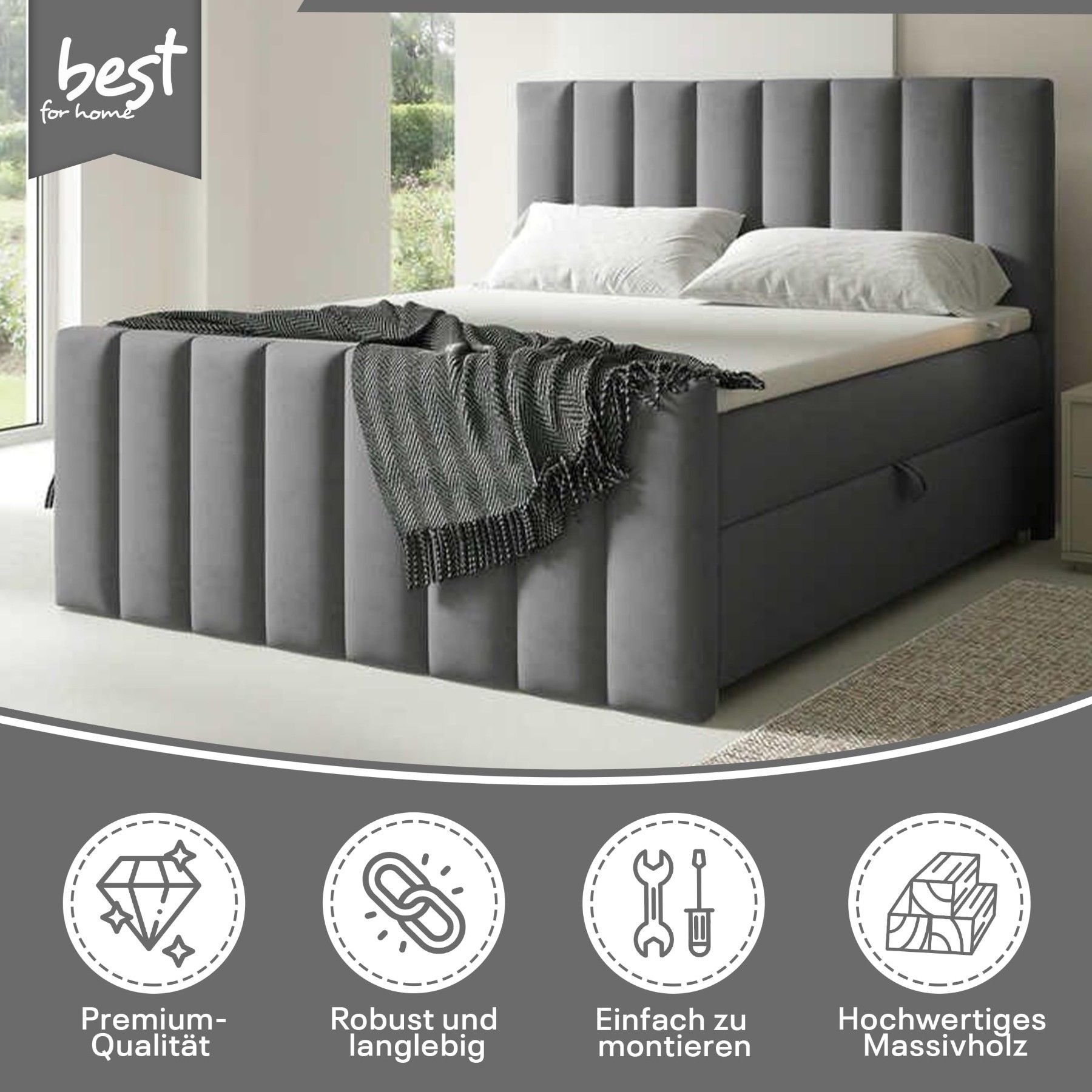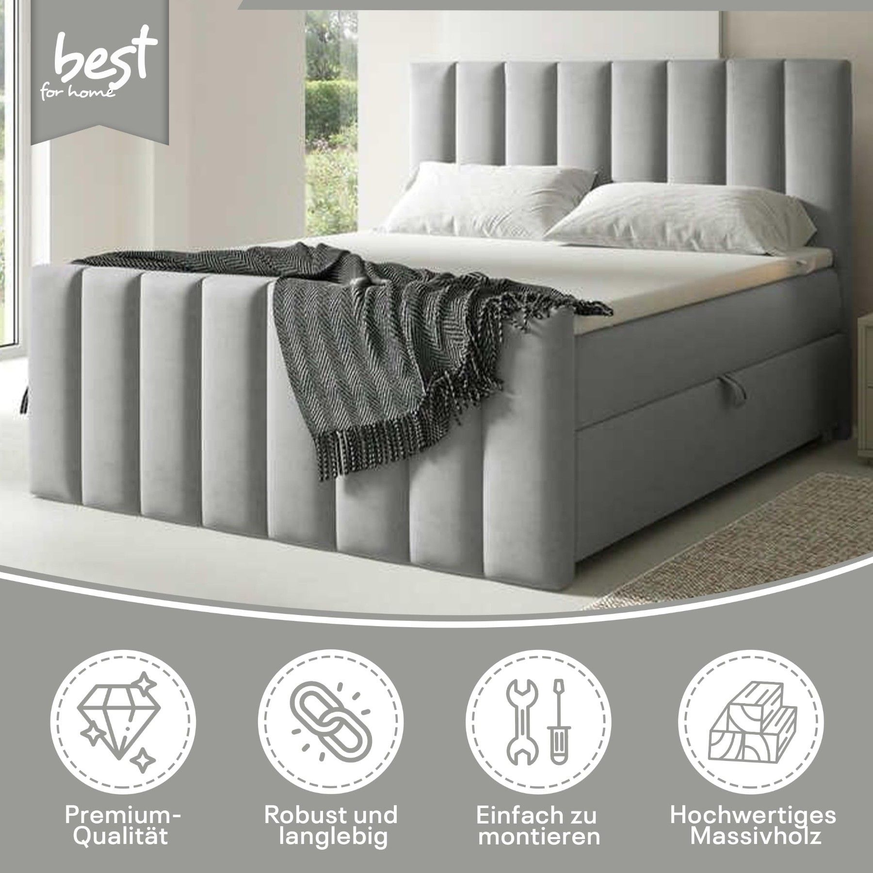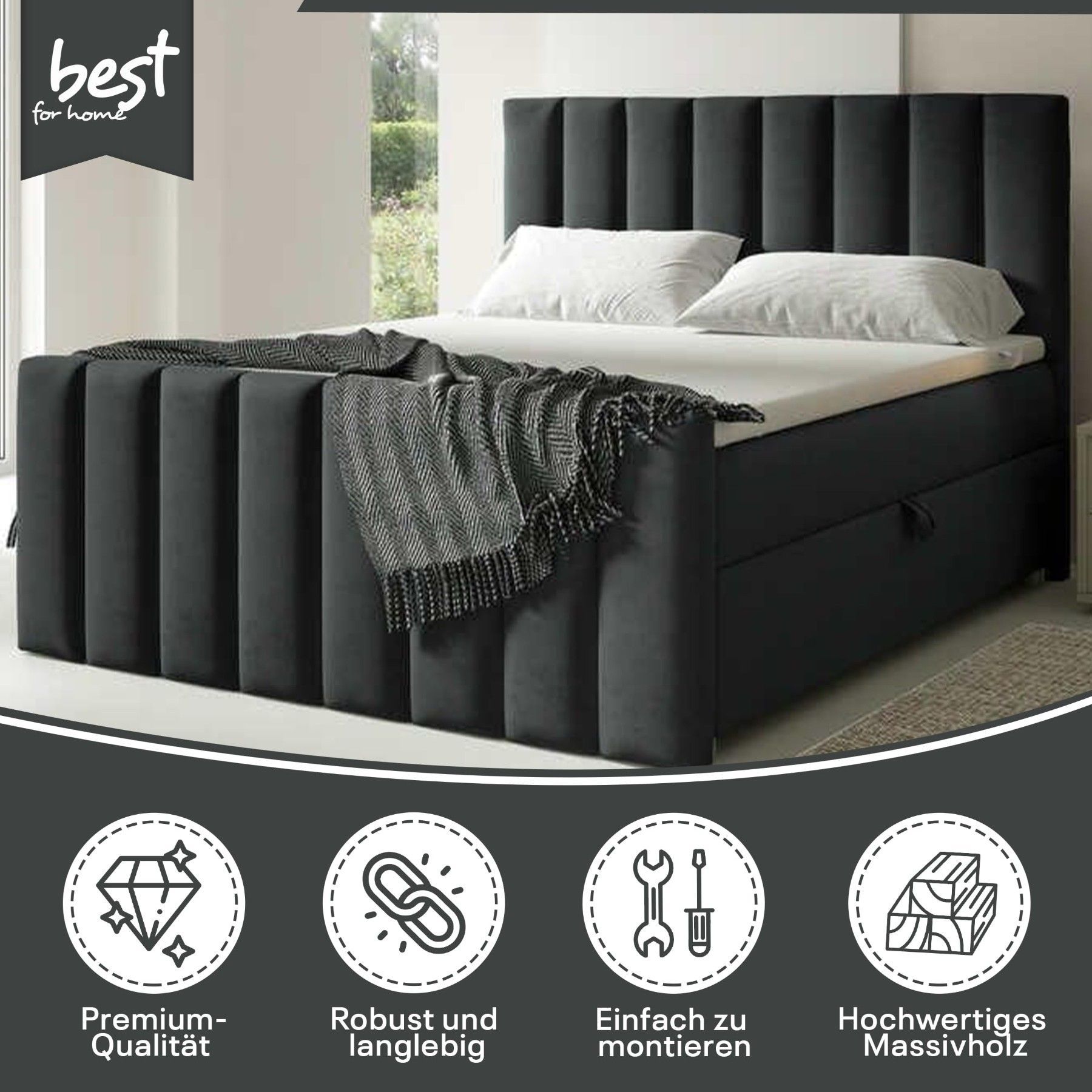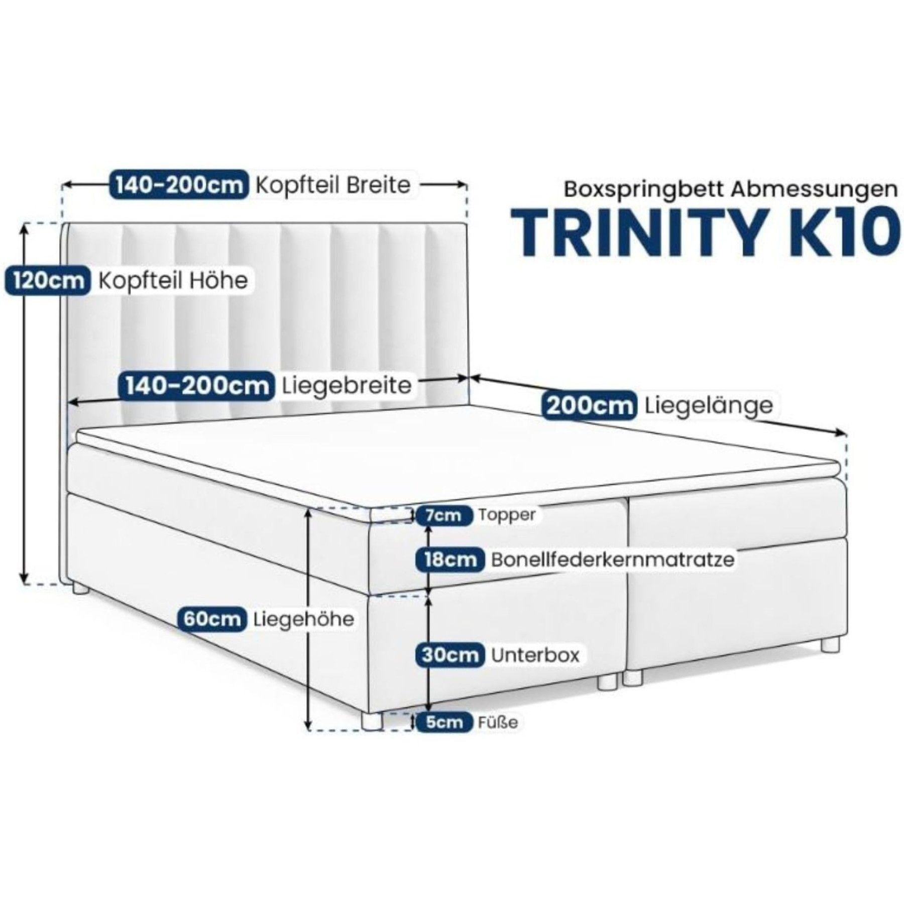 Best For Home Boxspringbett Trinity K-10 Lux | Mit Topper & Bettkasten - Komfort pur