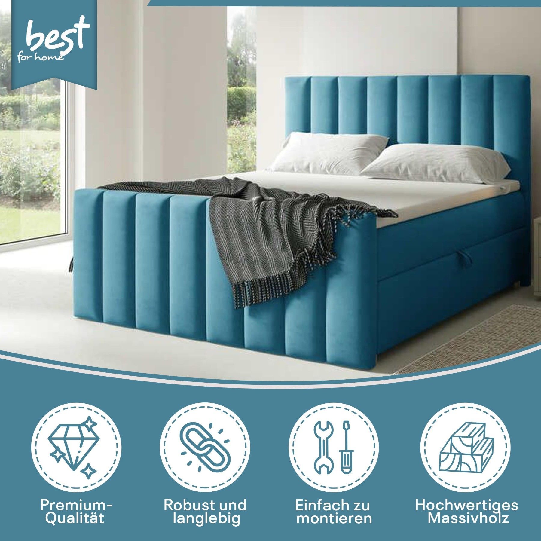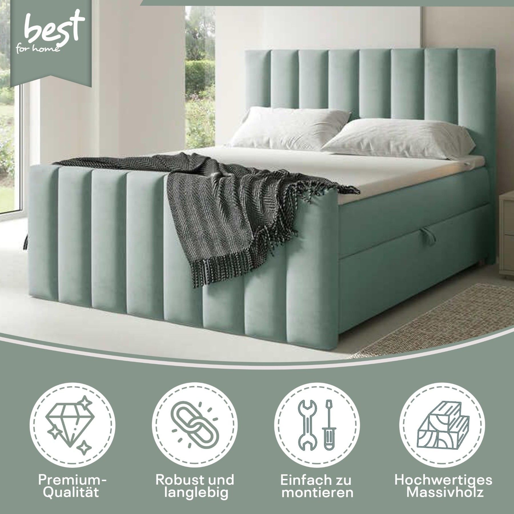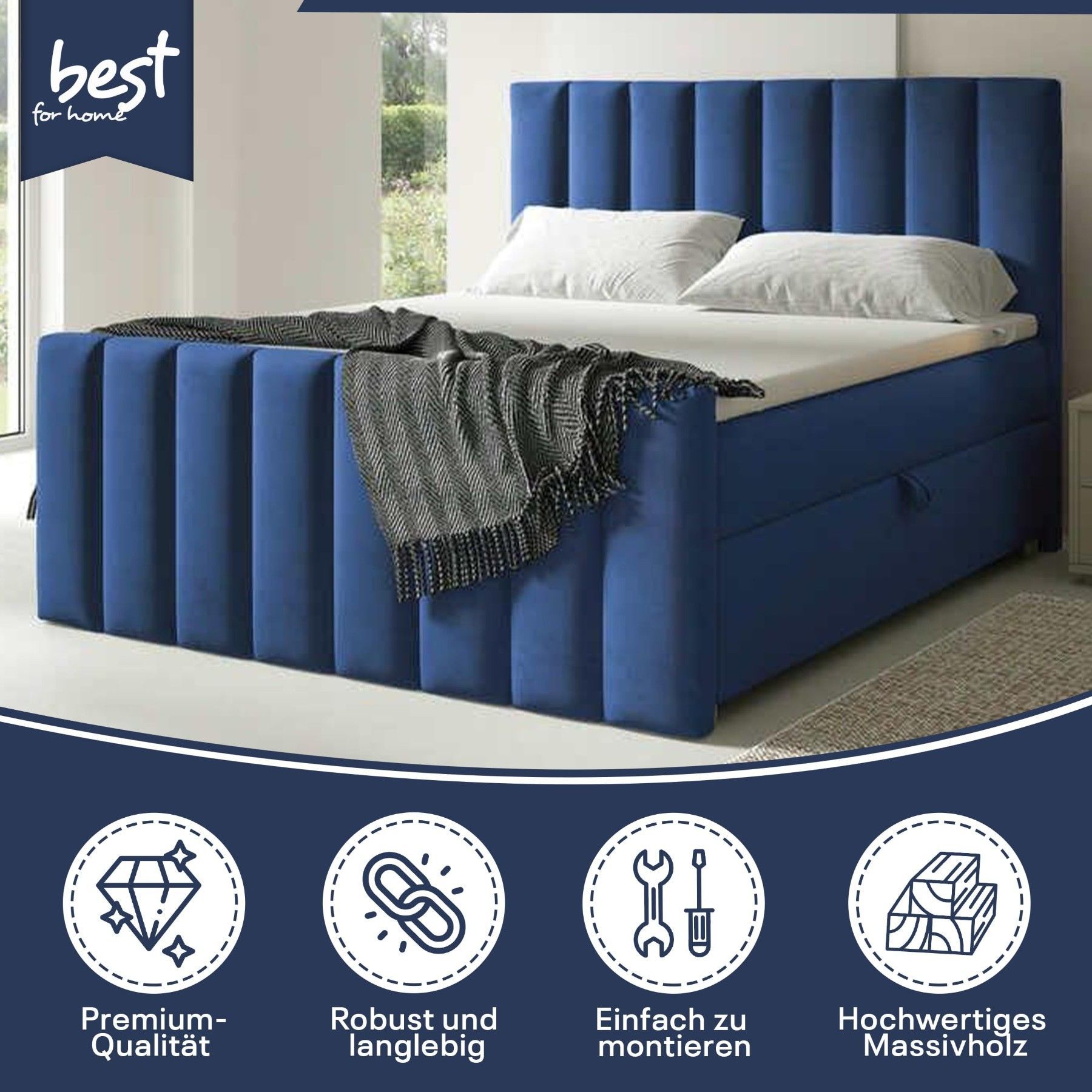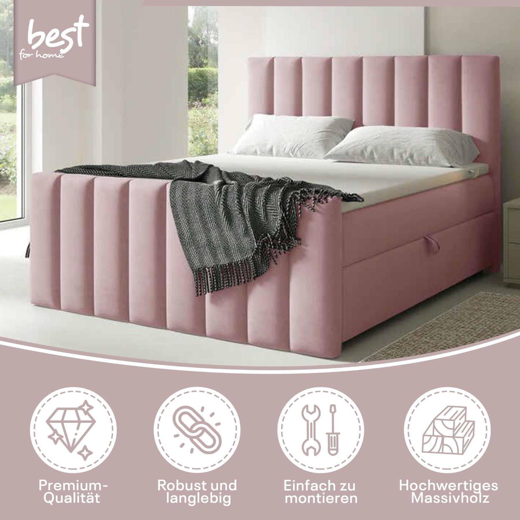 Best For Home Boxspringbett Trinity K-10 Lux | Mit Topper & Bettkasten - Komfort pur