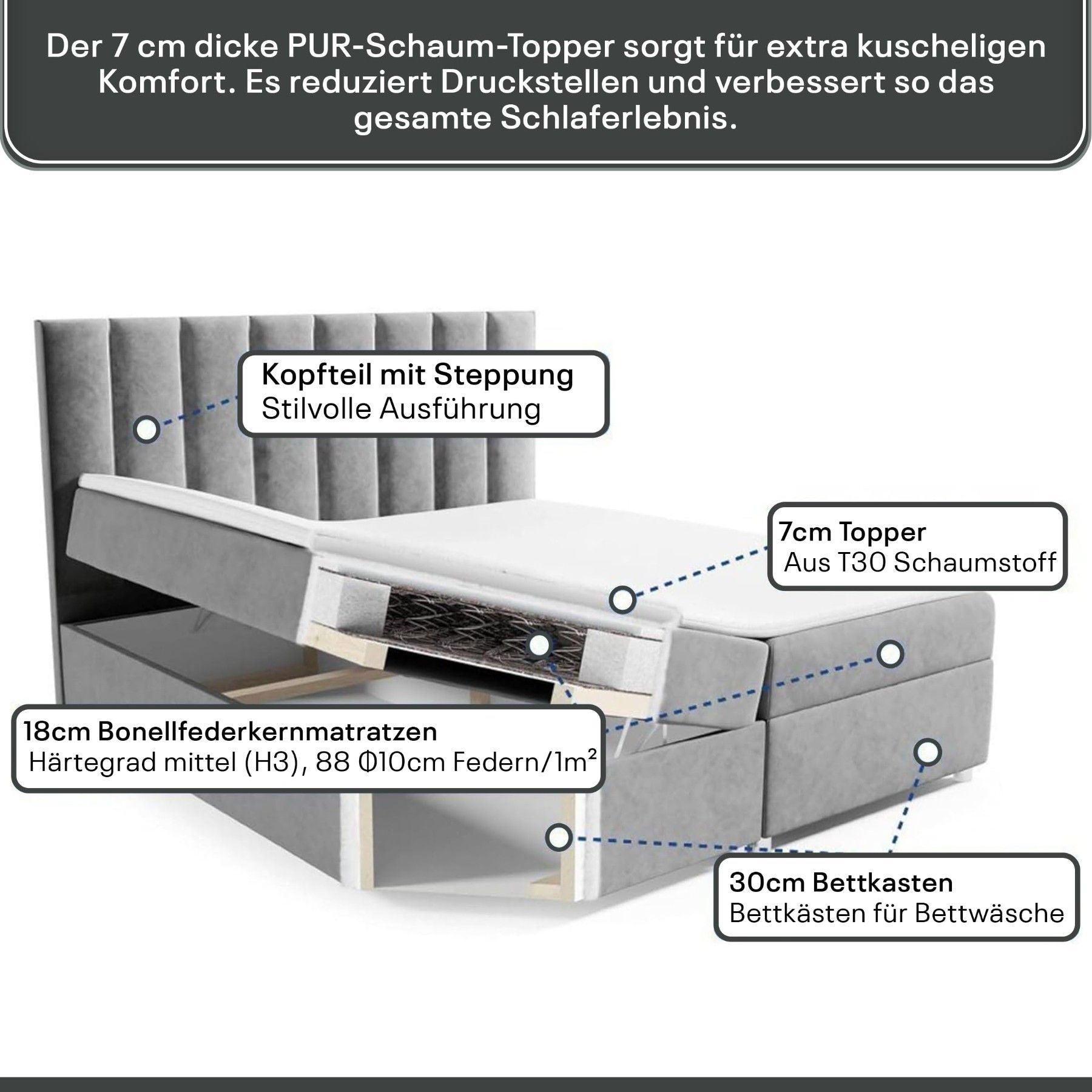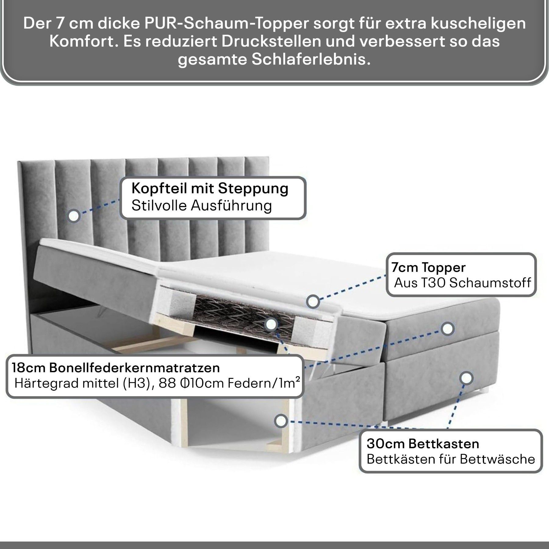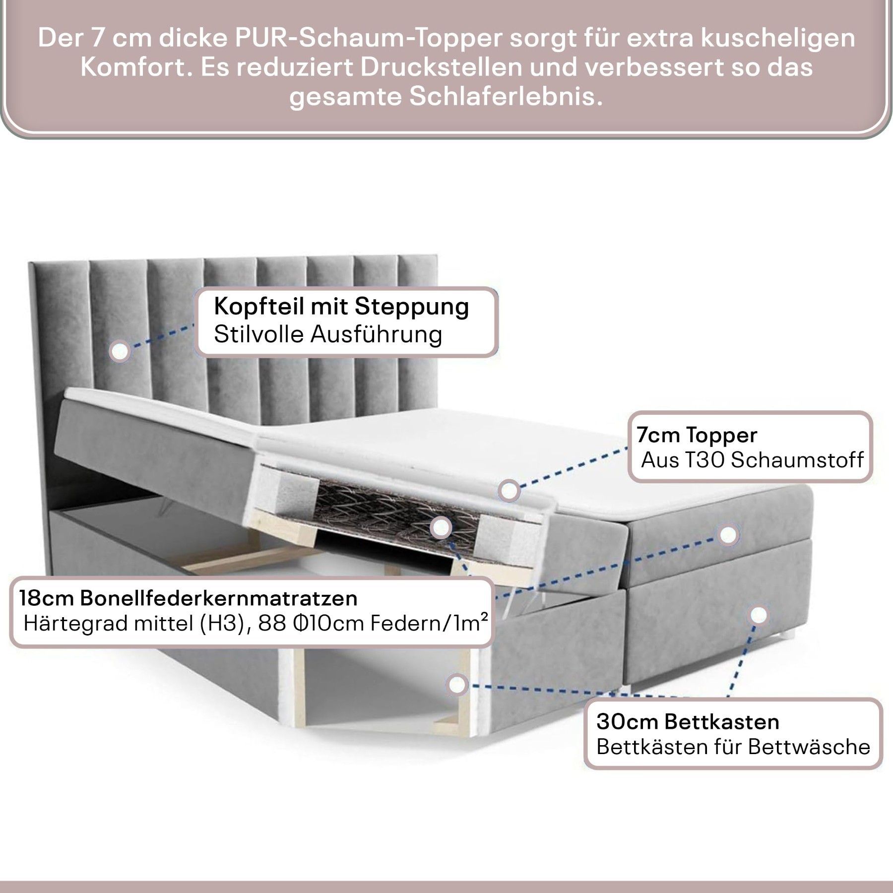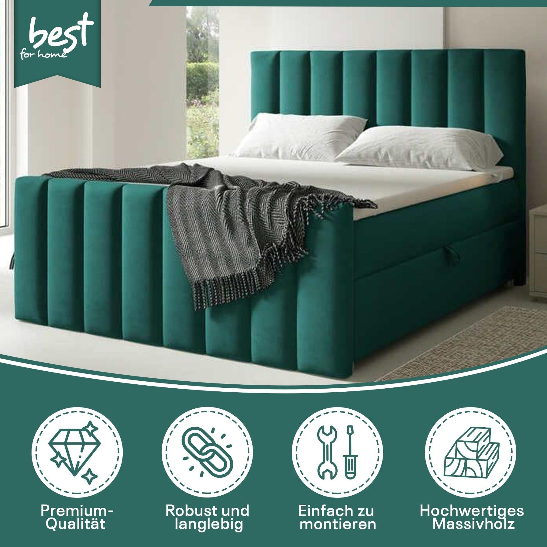 Best For Home Boxspringbett Trinity K-10 Lux | Mit Topper & Bettkasten - Komfort pur
