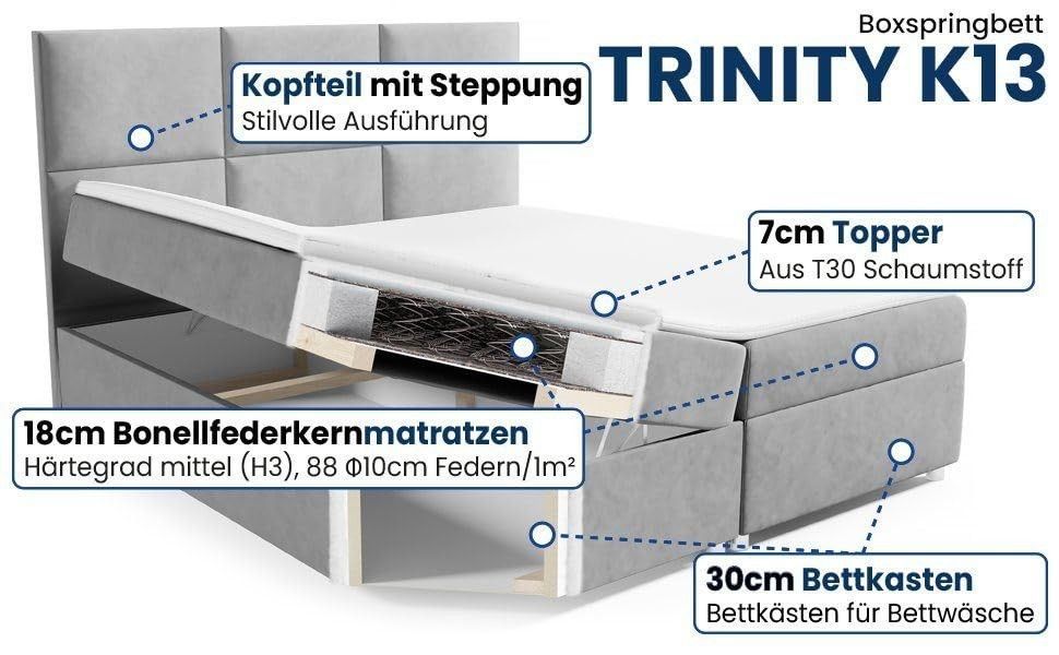 Best For Home Boxspringbett Trinity K-13 Bonellfederkern inkl. Topper mit Bettkasten