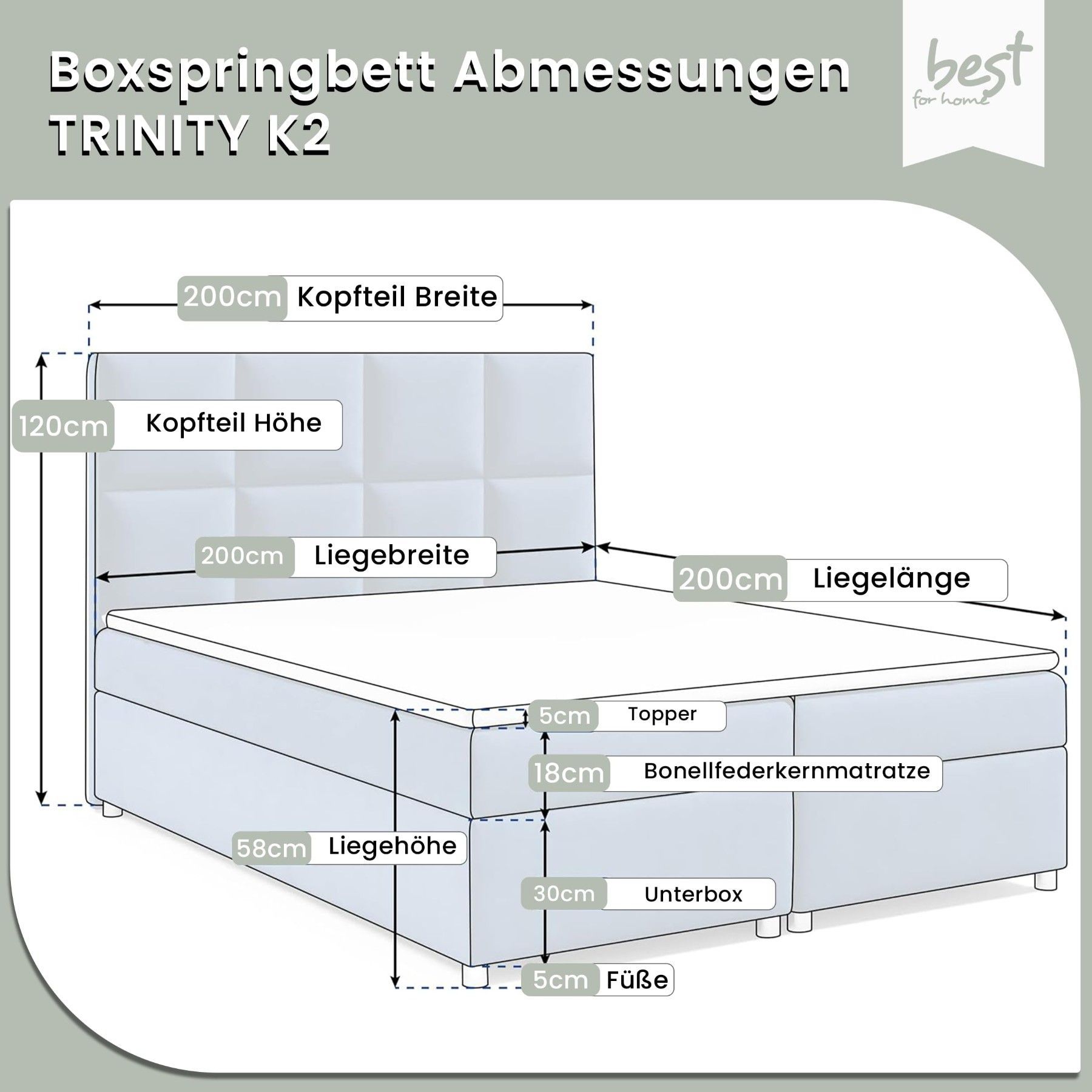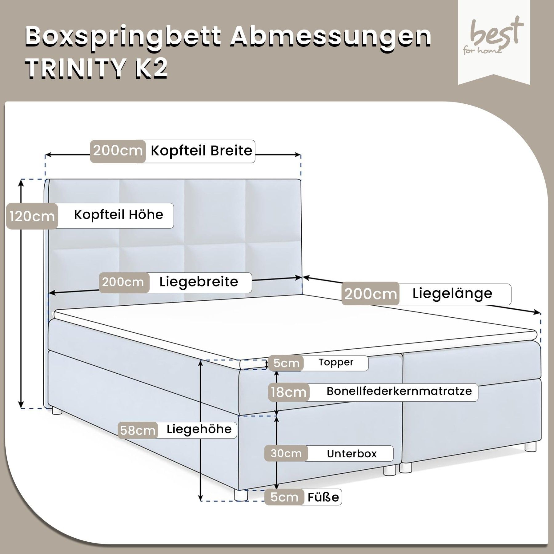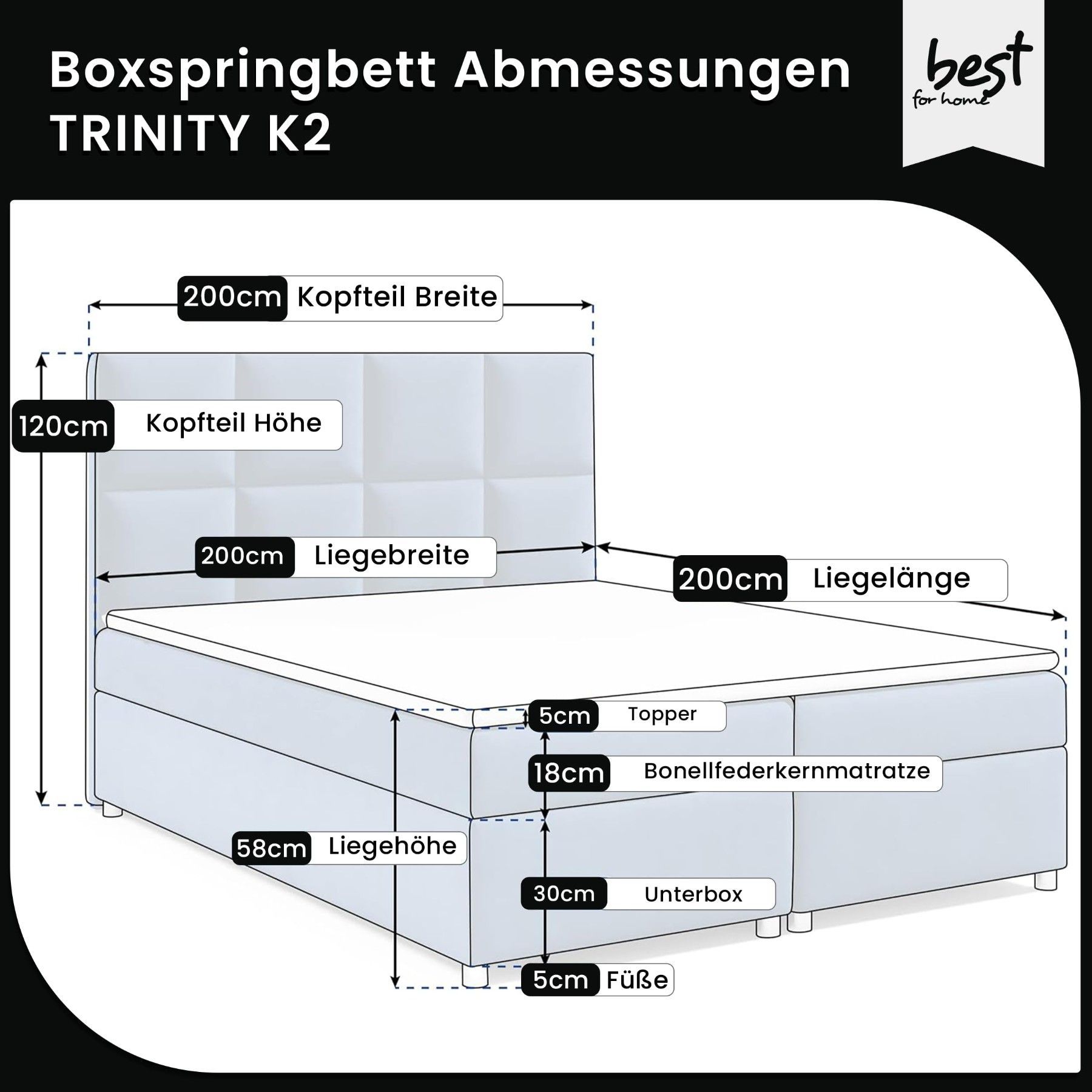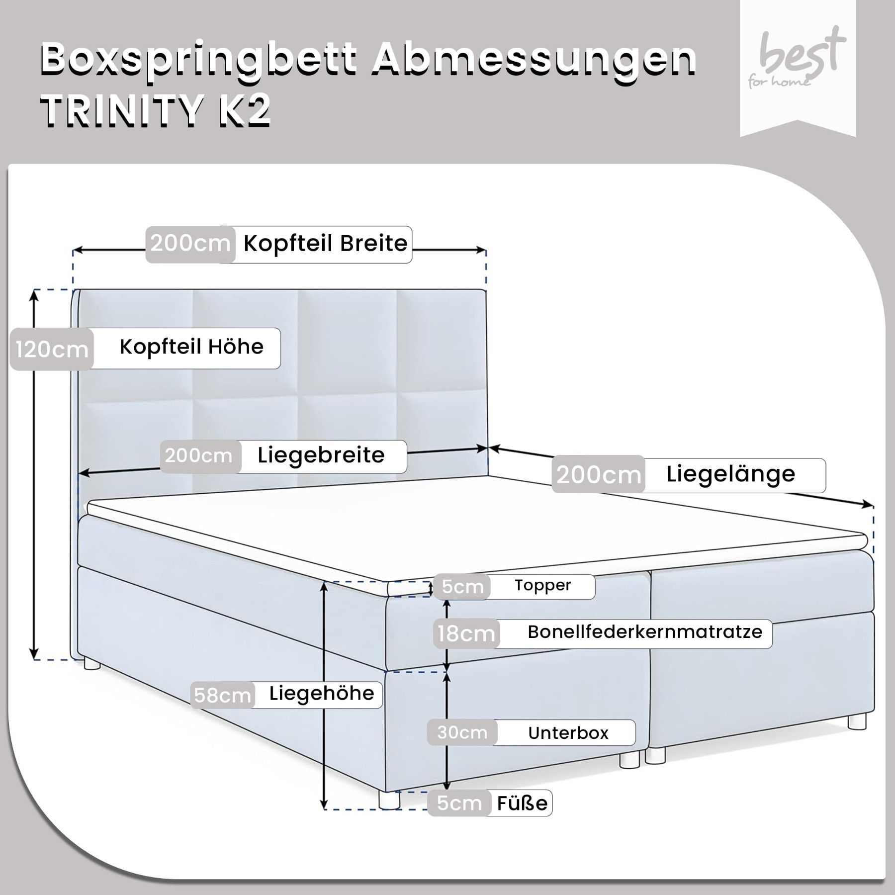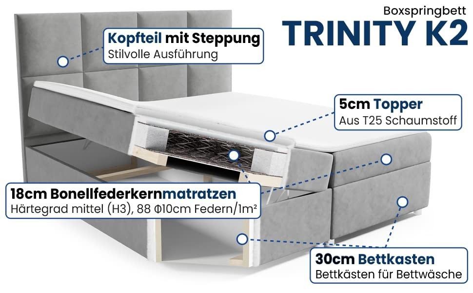Best For Home Boxspringbett Trinity K-2 mit 7-Zonen Bonellfederkernmatratze & Staura