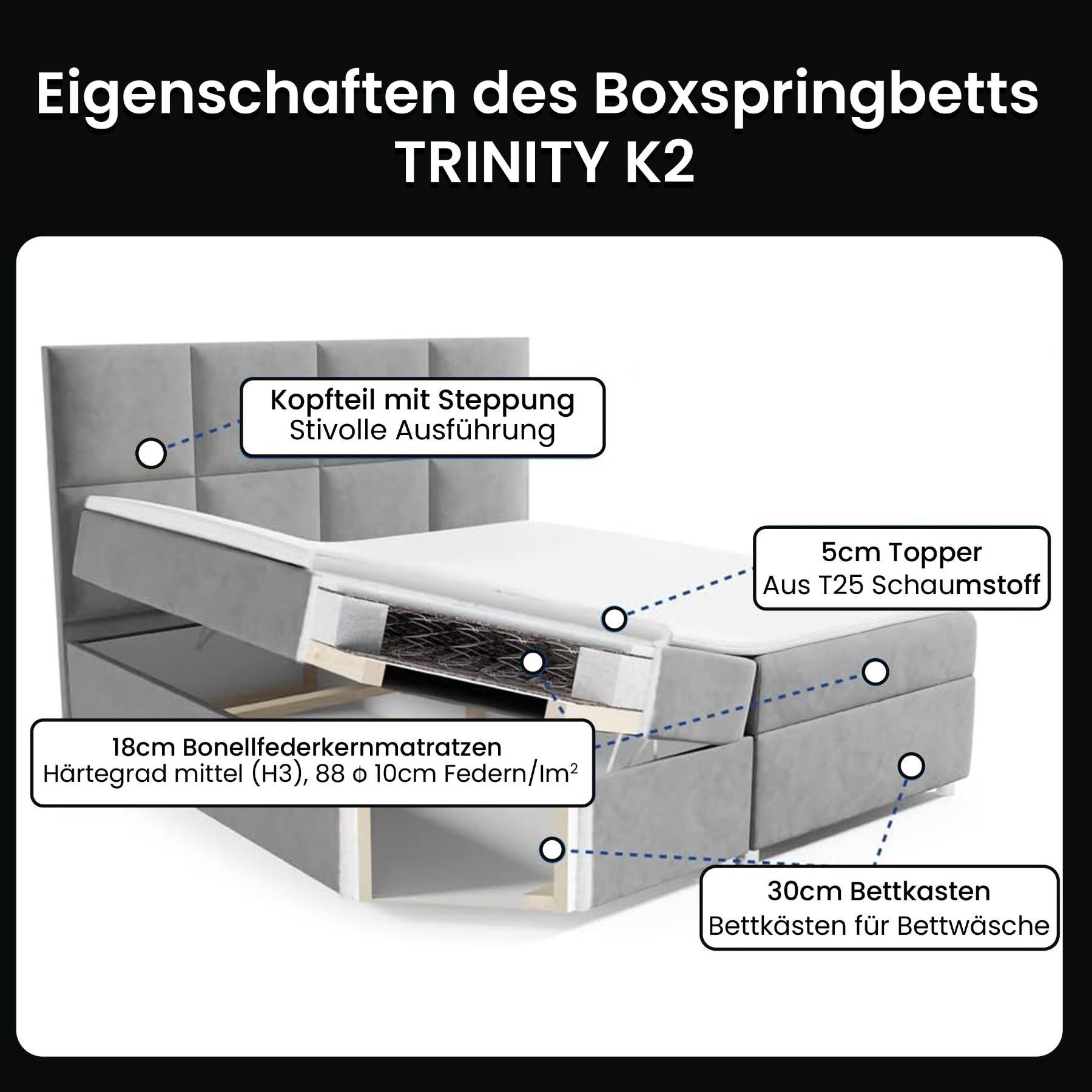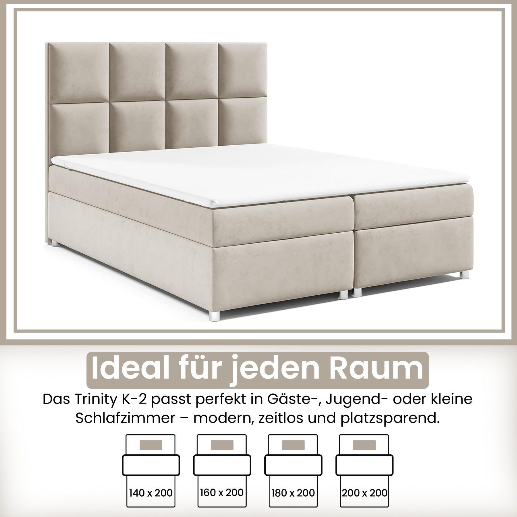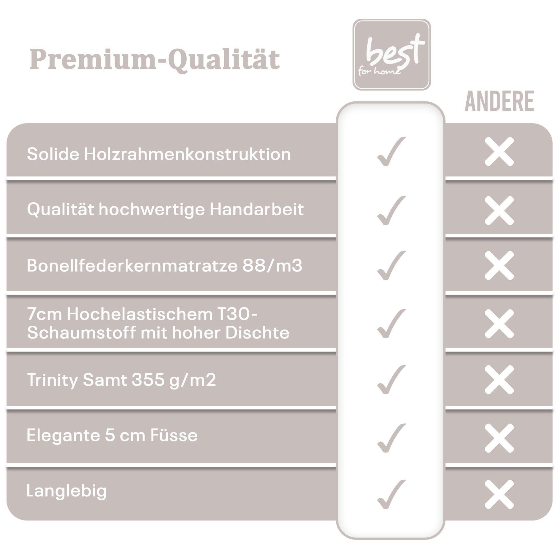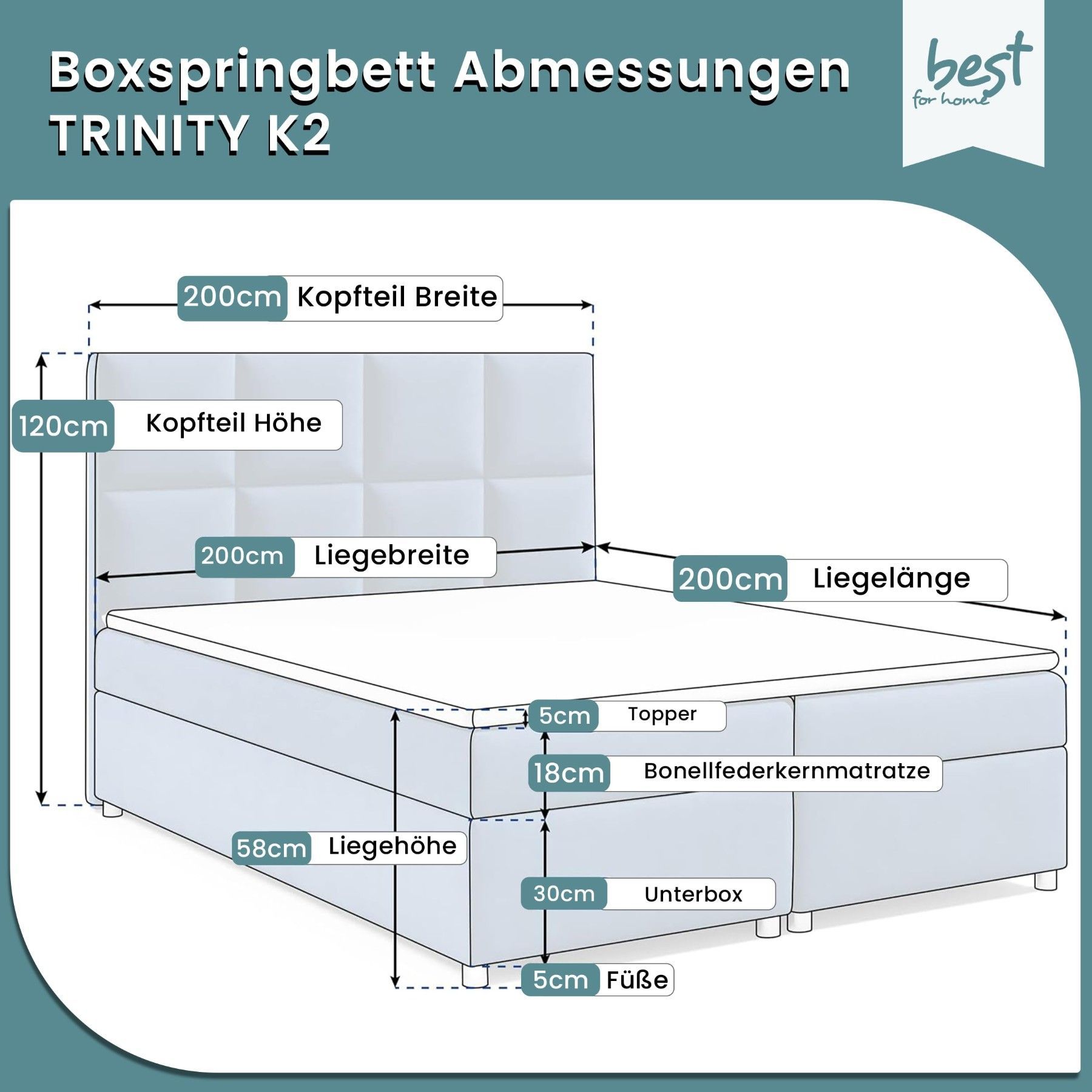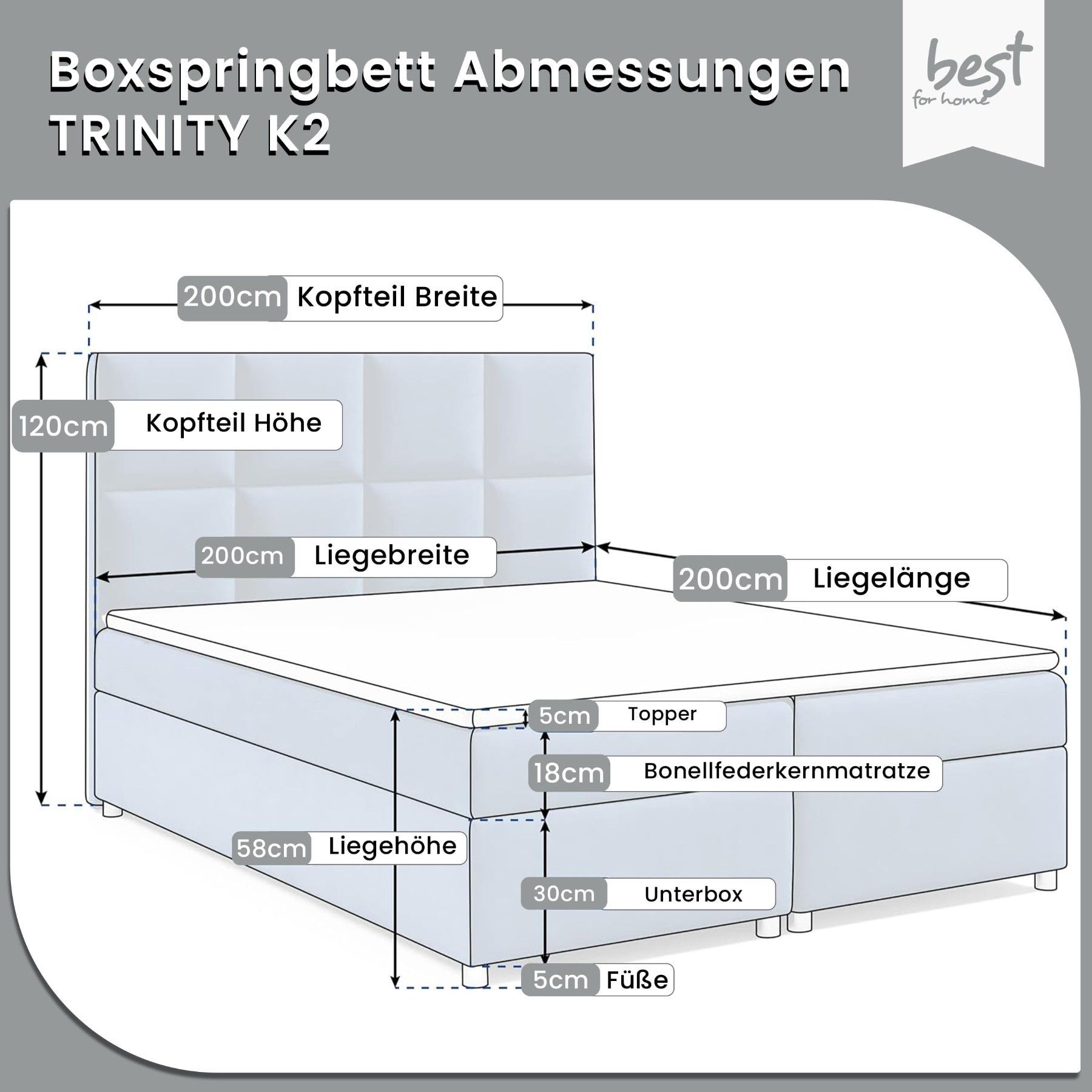 Best For Home Boxspringbett Trinity K-2 mit 7-Zonen Bonellfederkernmatratze & Staura