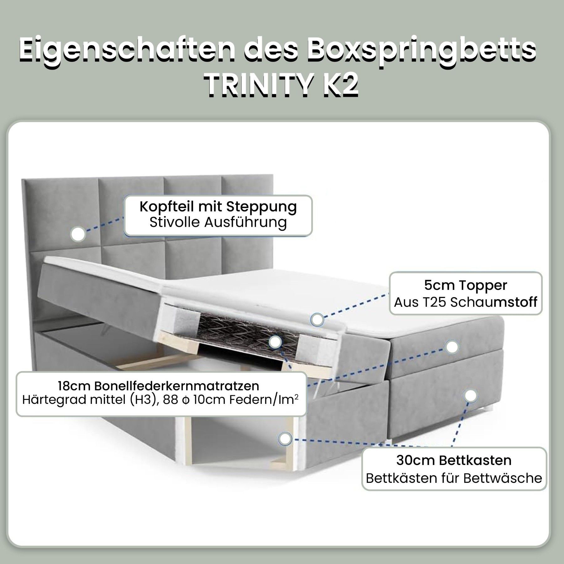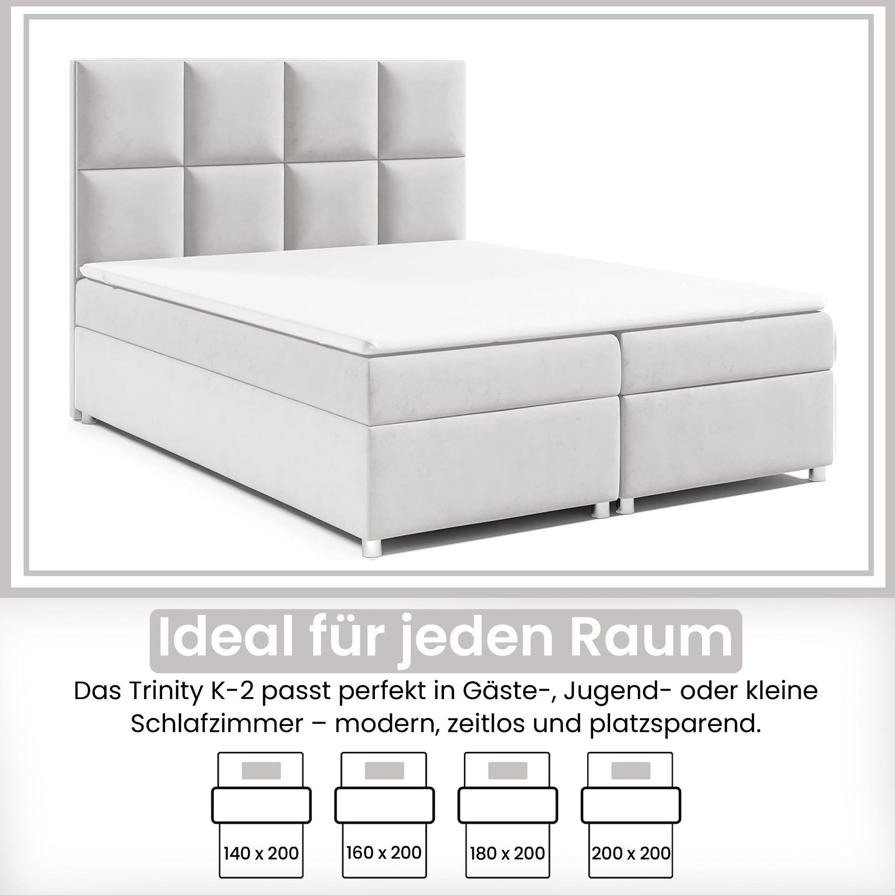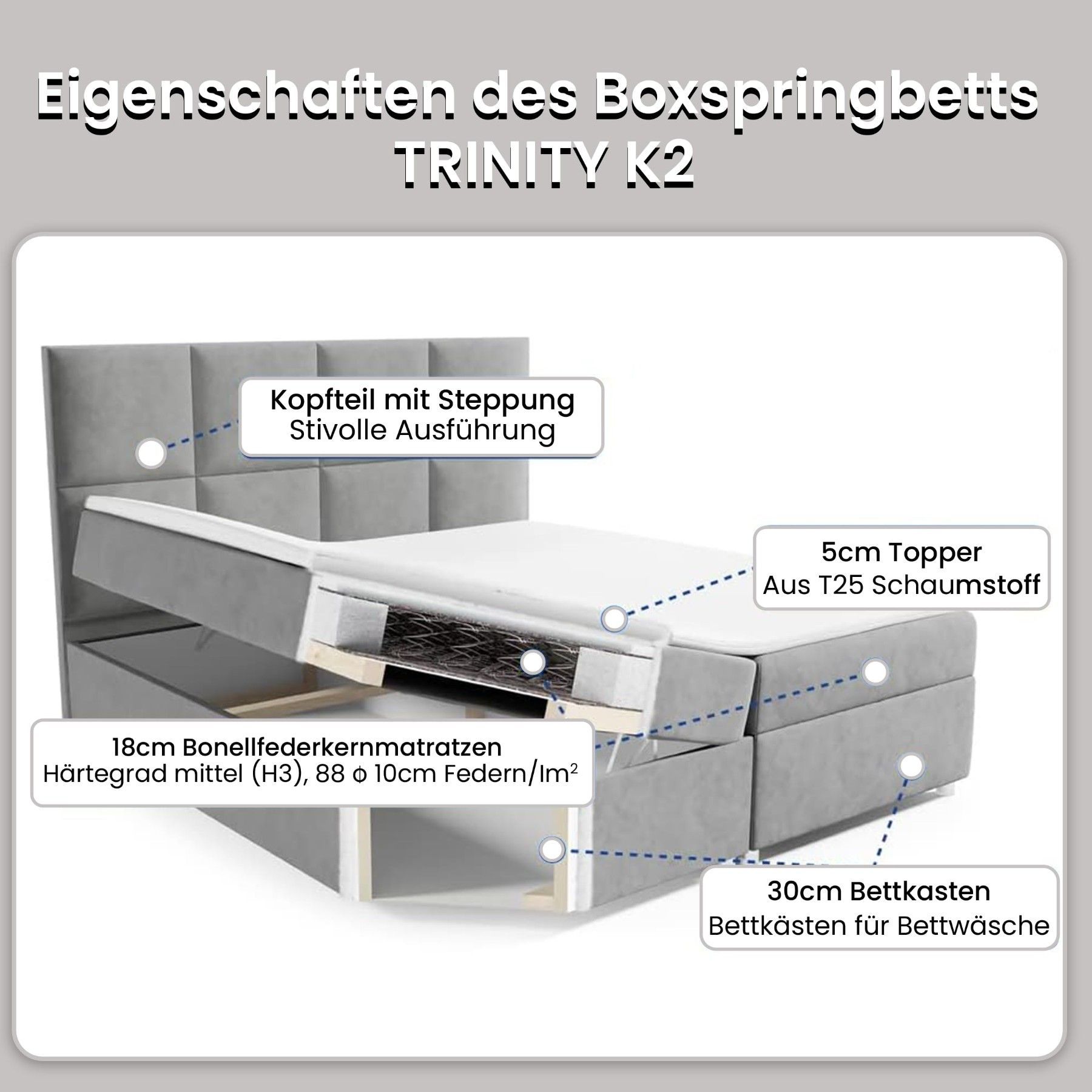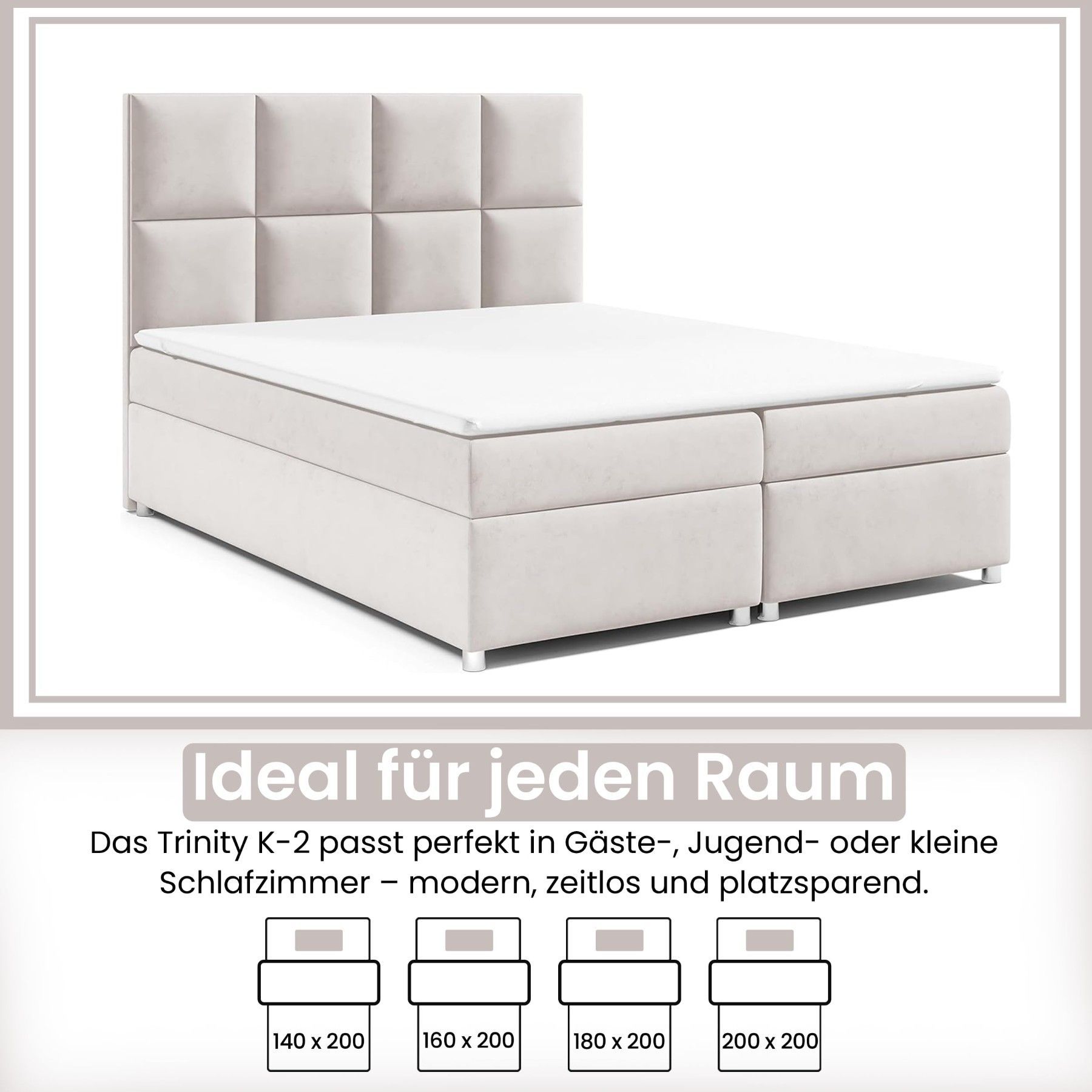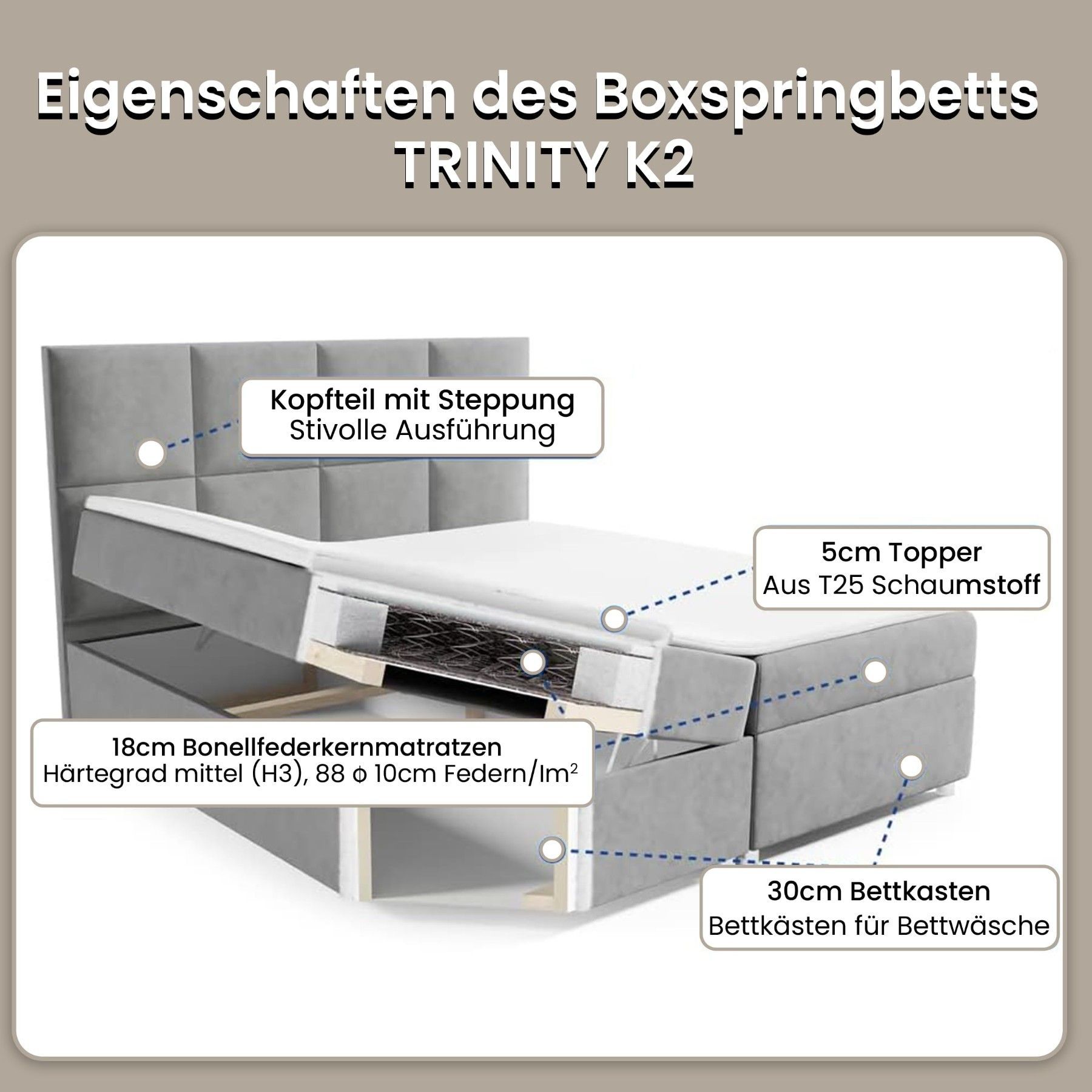Best For Home Boxspringbett Trinity K-2 mit 7-Zonen Bonellfederkernmatratze & Staura