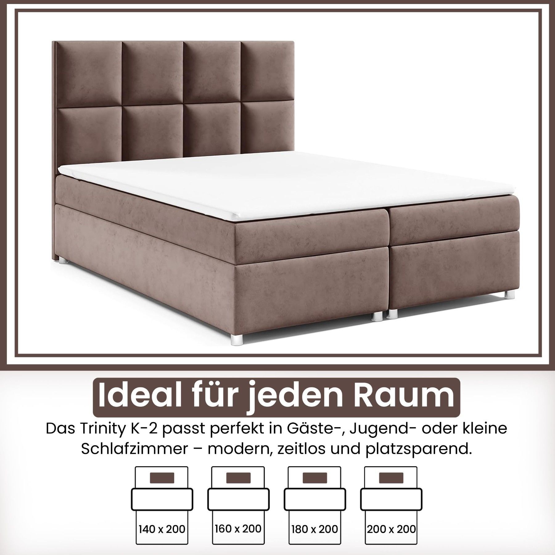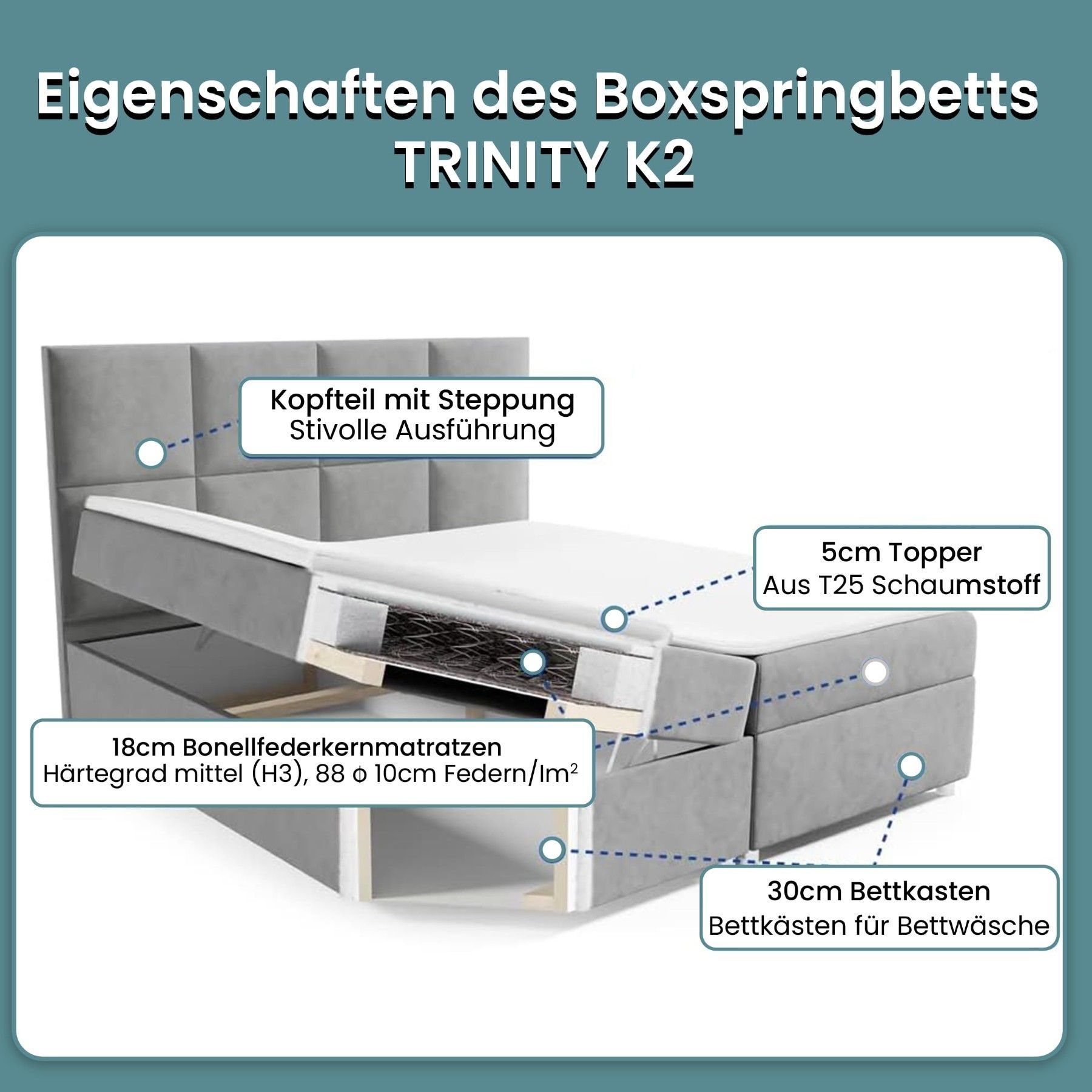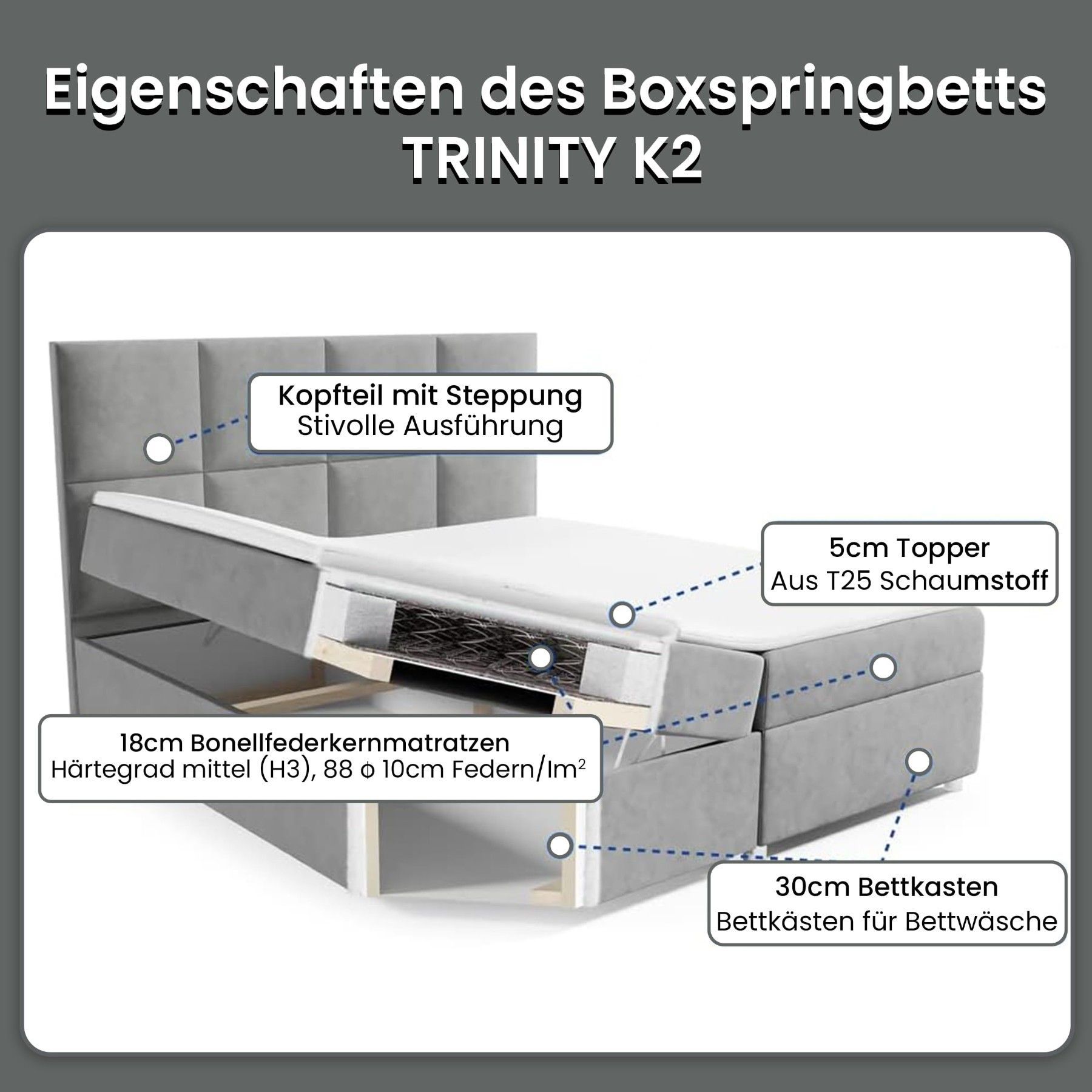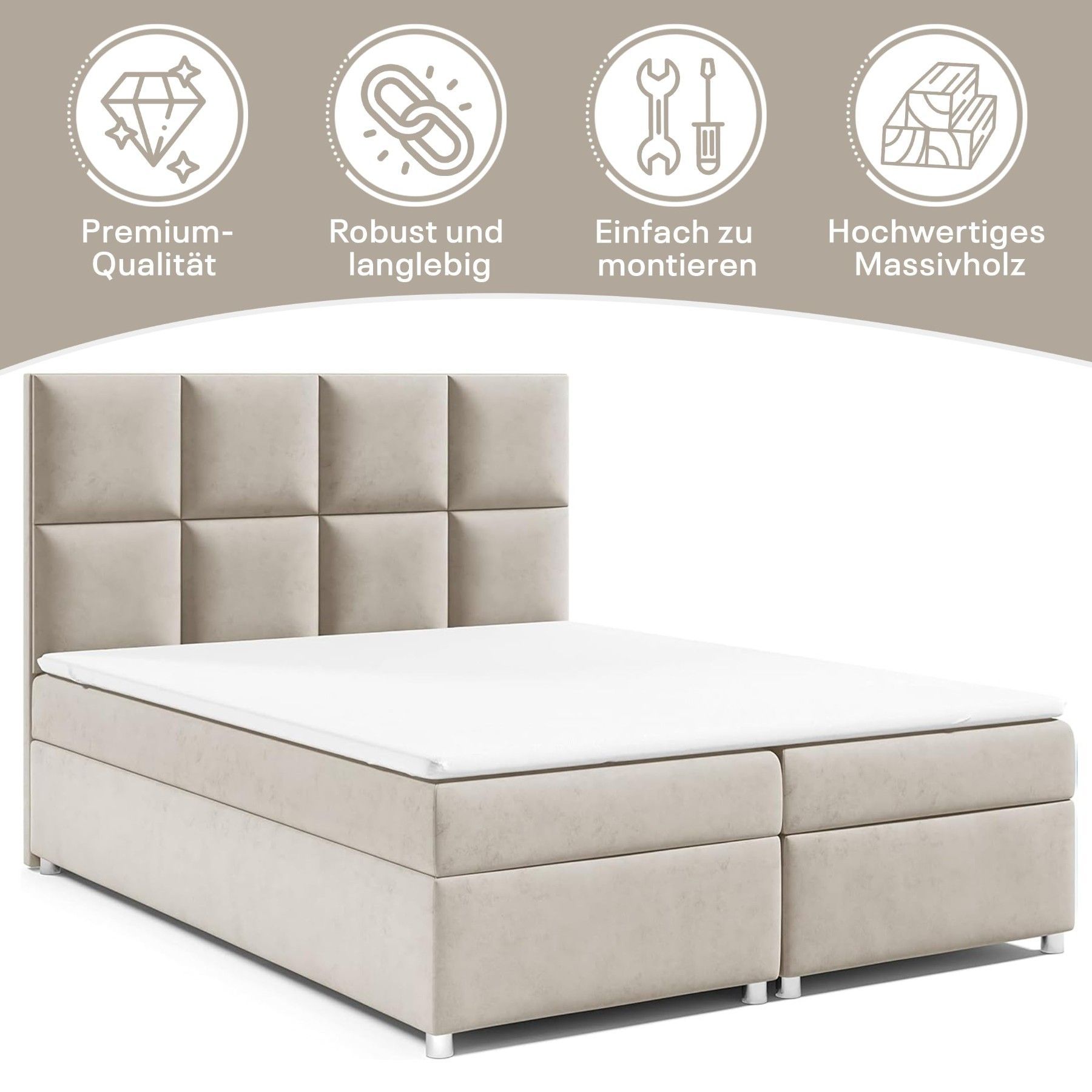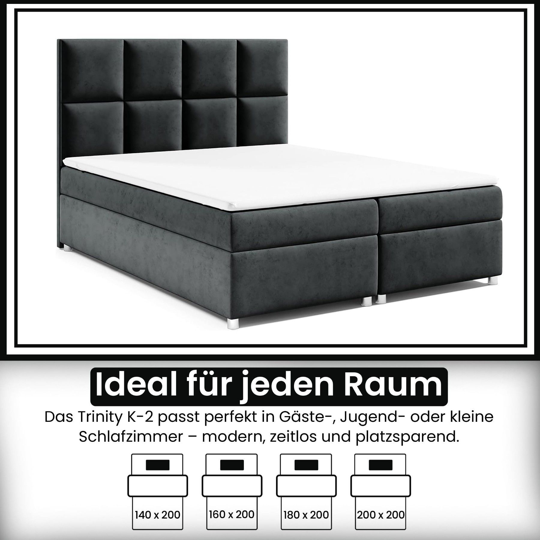 Best For Home Boxspringbett Trinity K-2 mit 7-Zonen Bonellfederkernmatratze & Staura