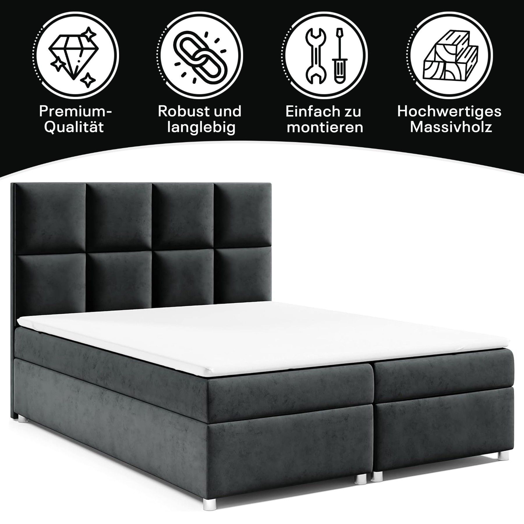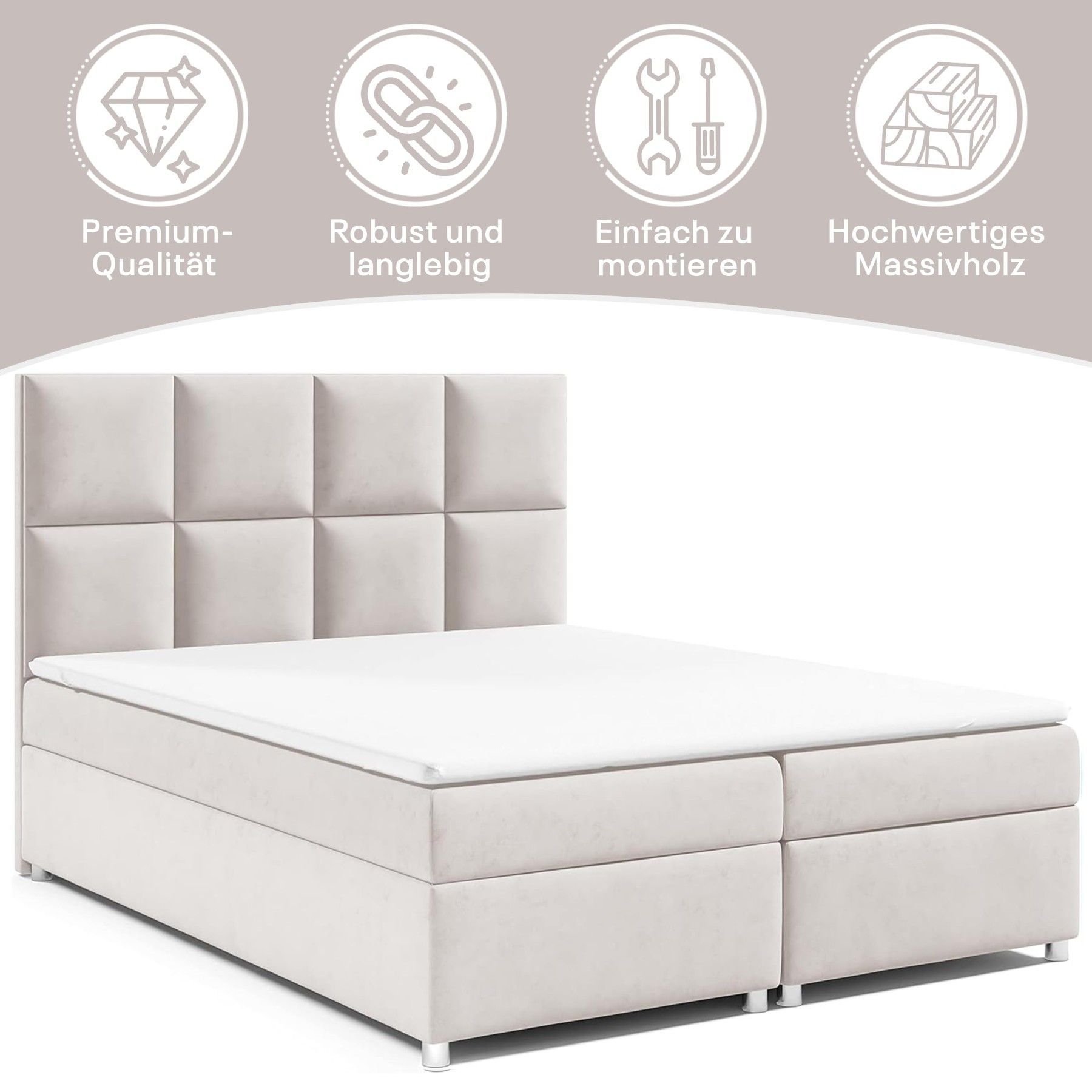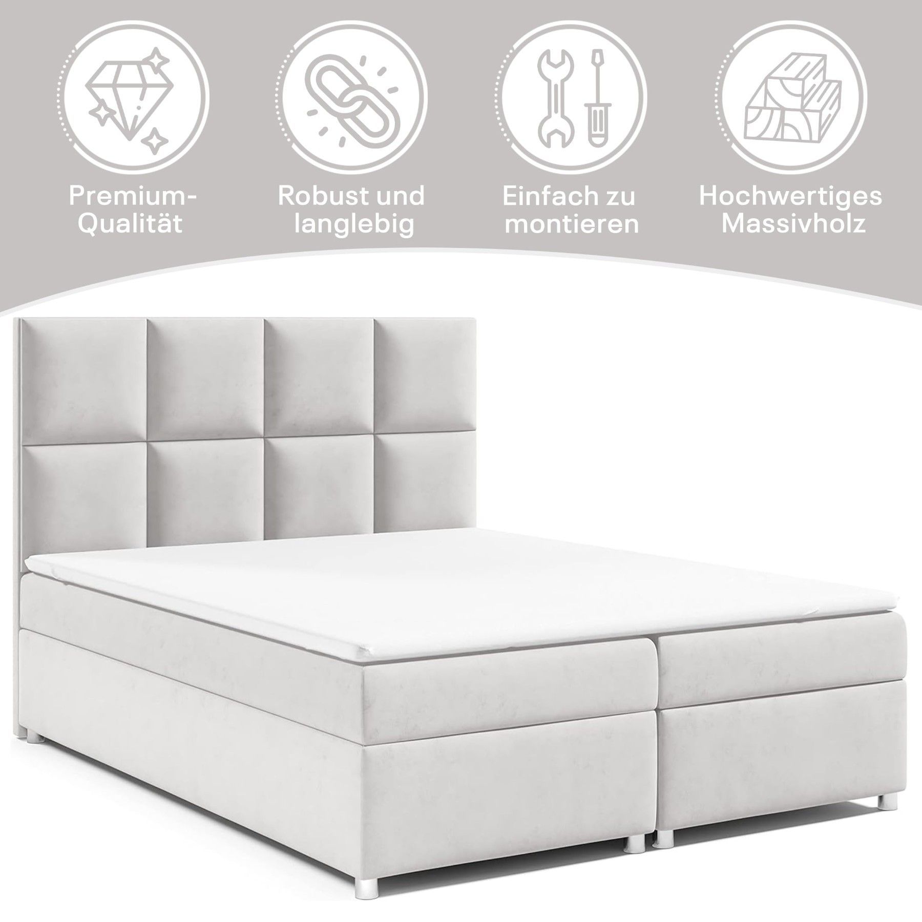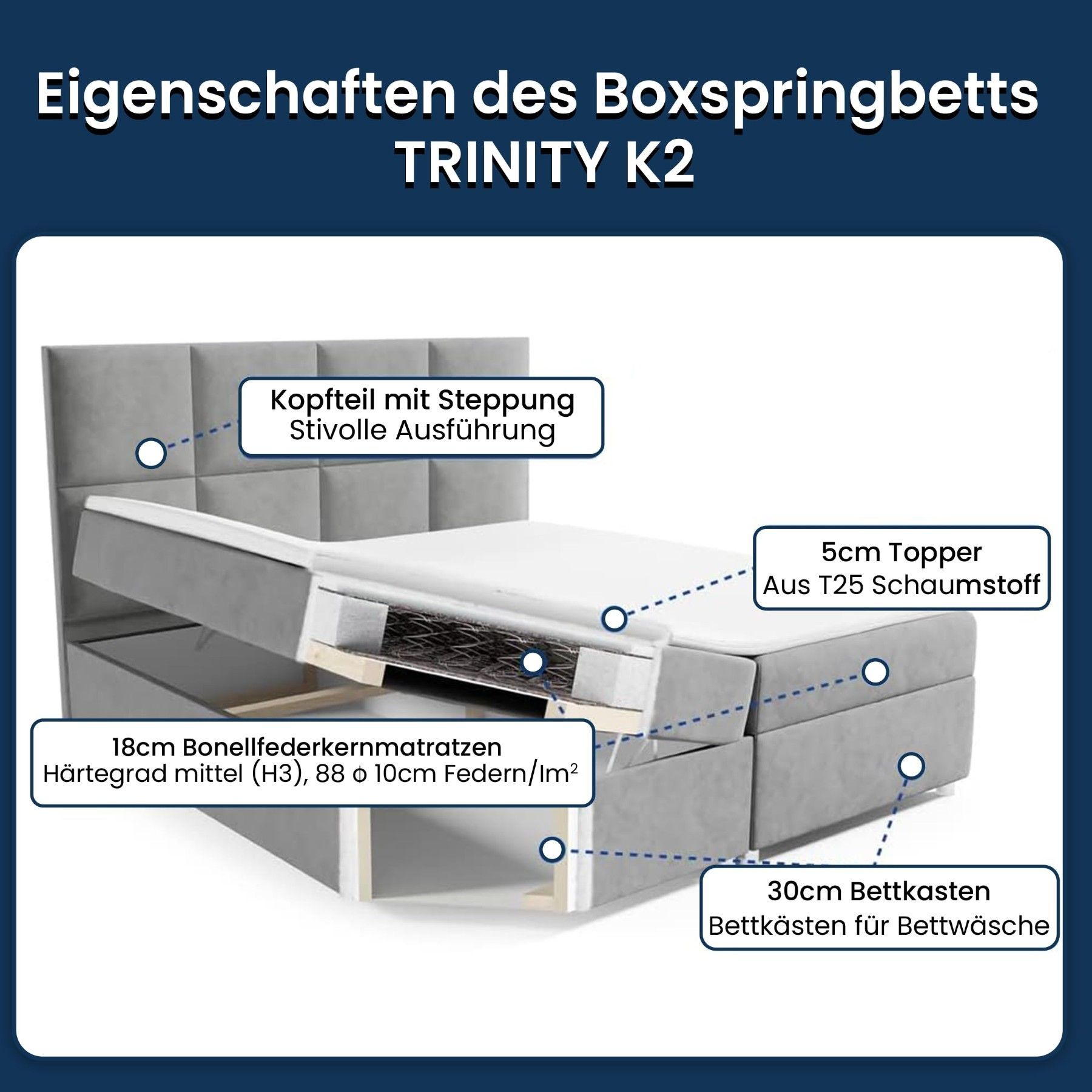 Best For Home Boxspringbett Trinity K-2 mit 7-Zonen Bonellfederkernmatratze & Staura