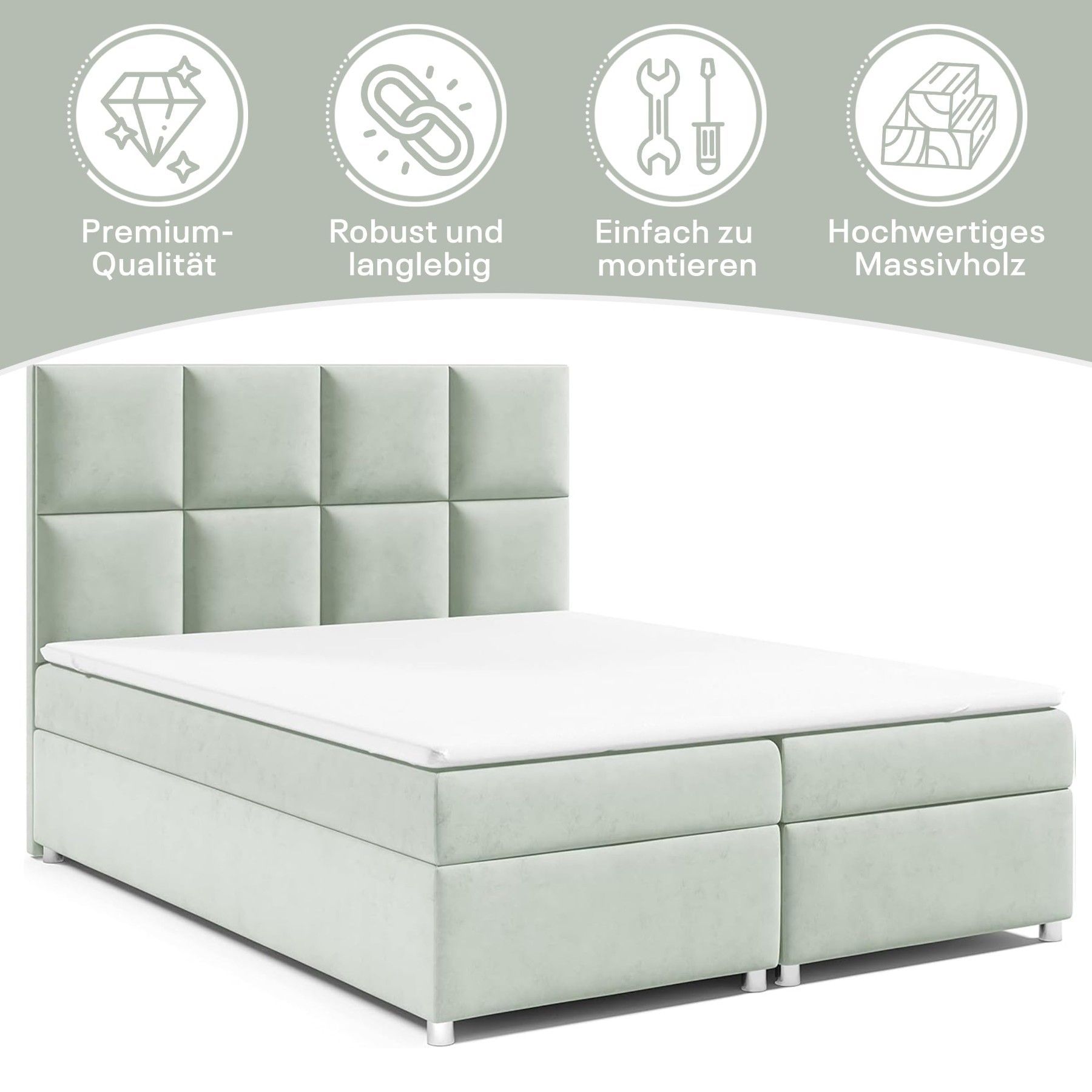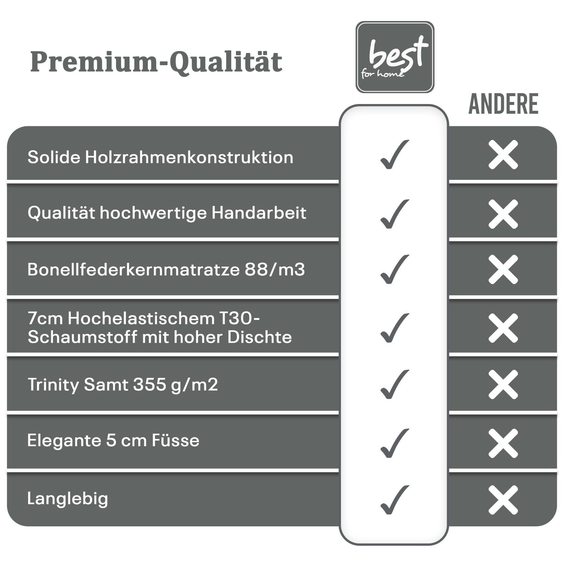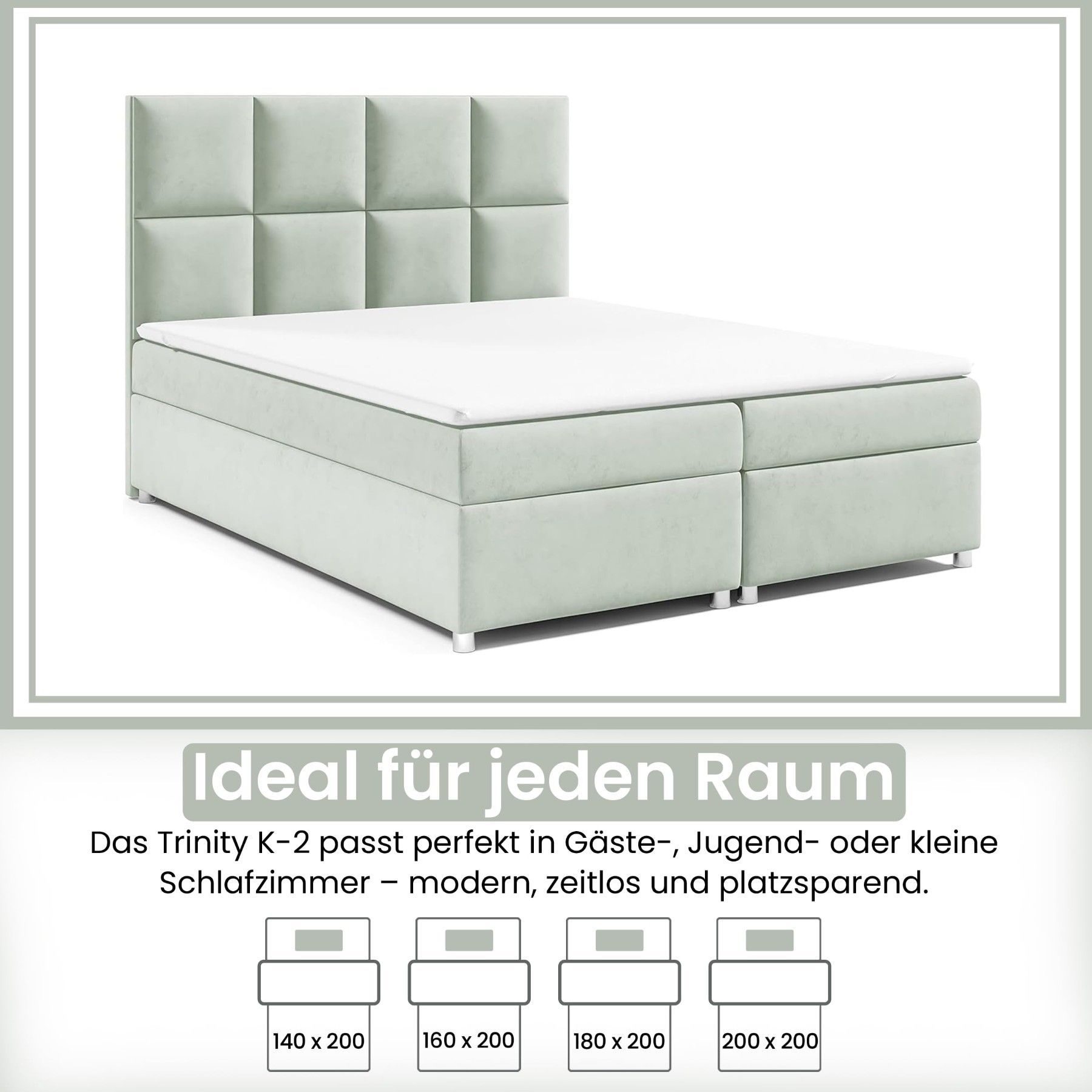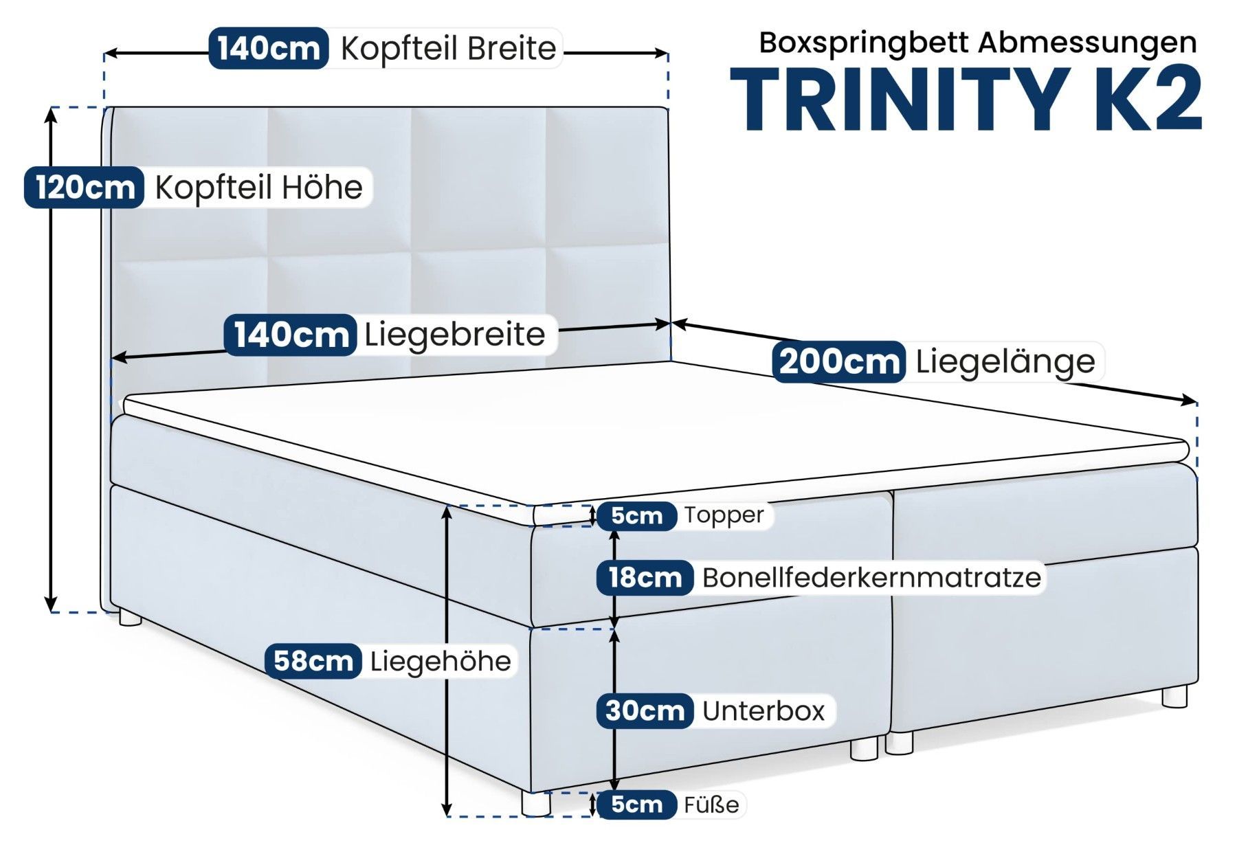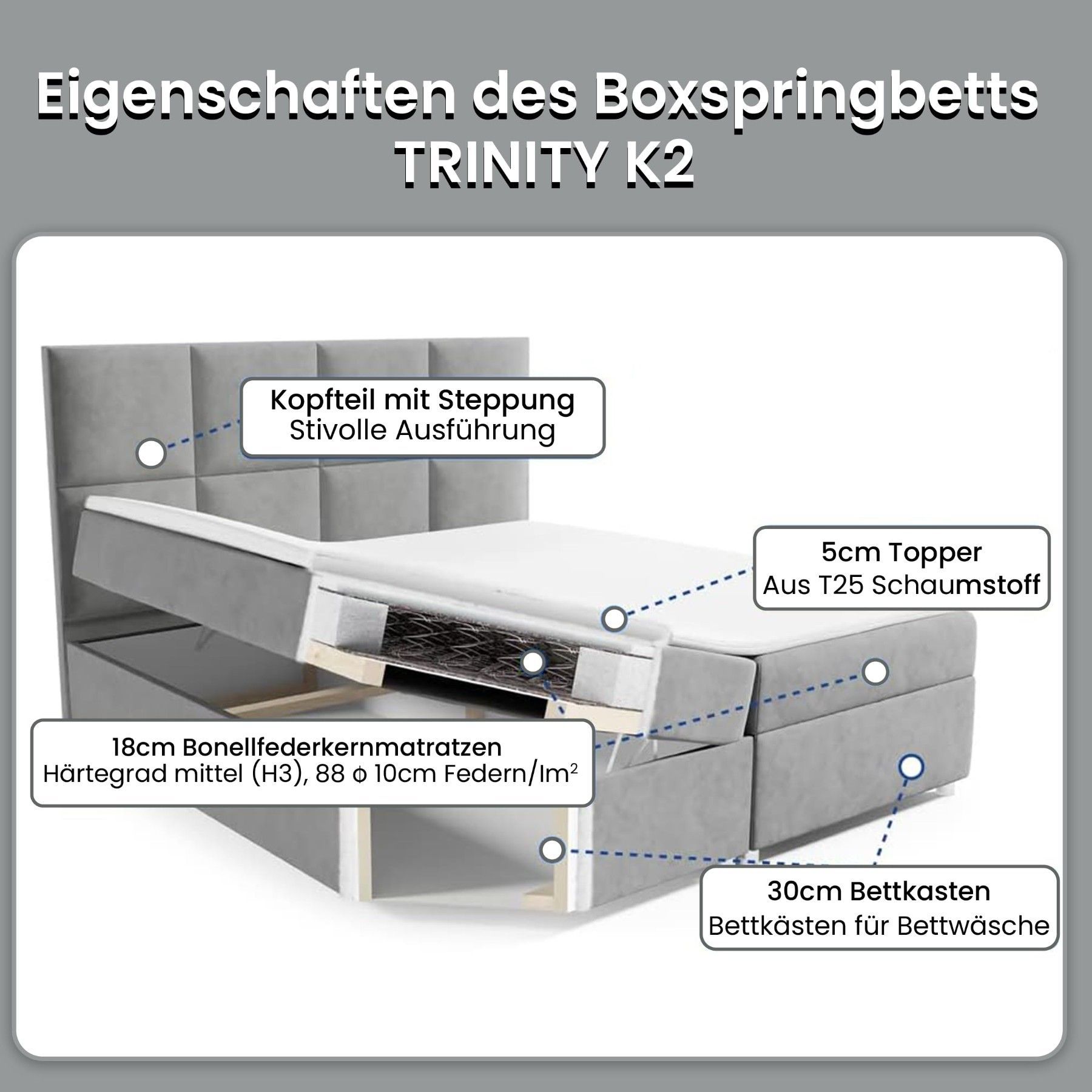 Best For Home Boxspringbett Trinity K-2 mit 7-Zonen Bonellfederkernmatratze & Staura