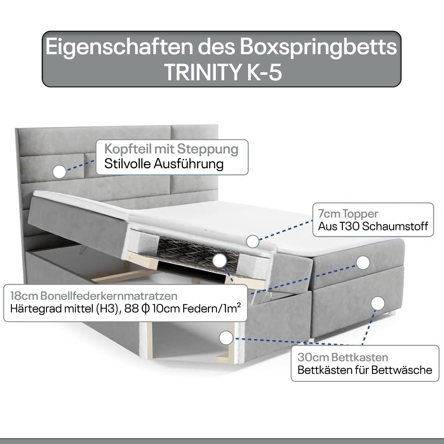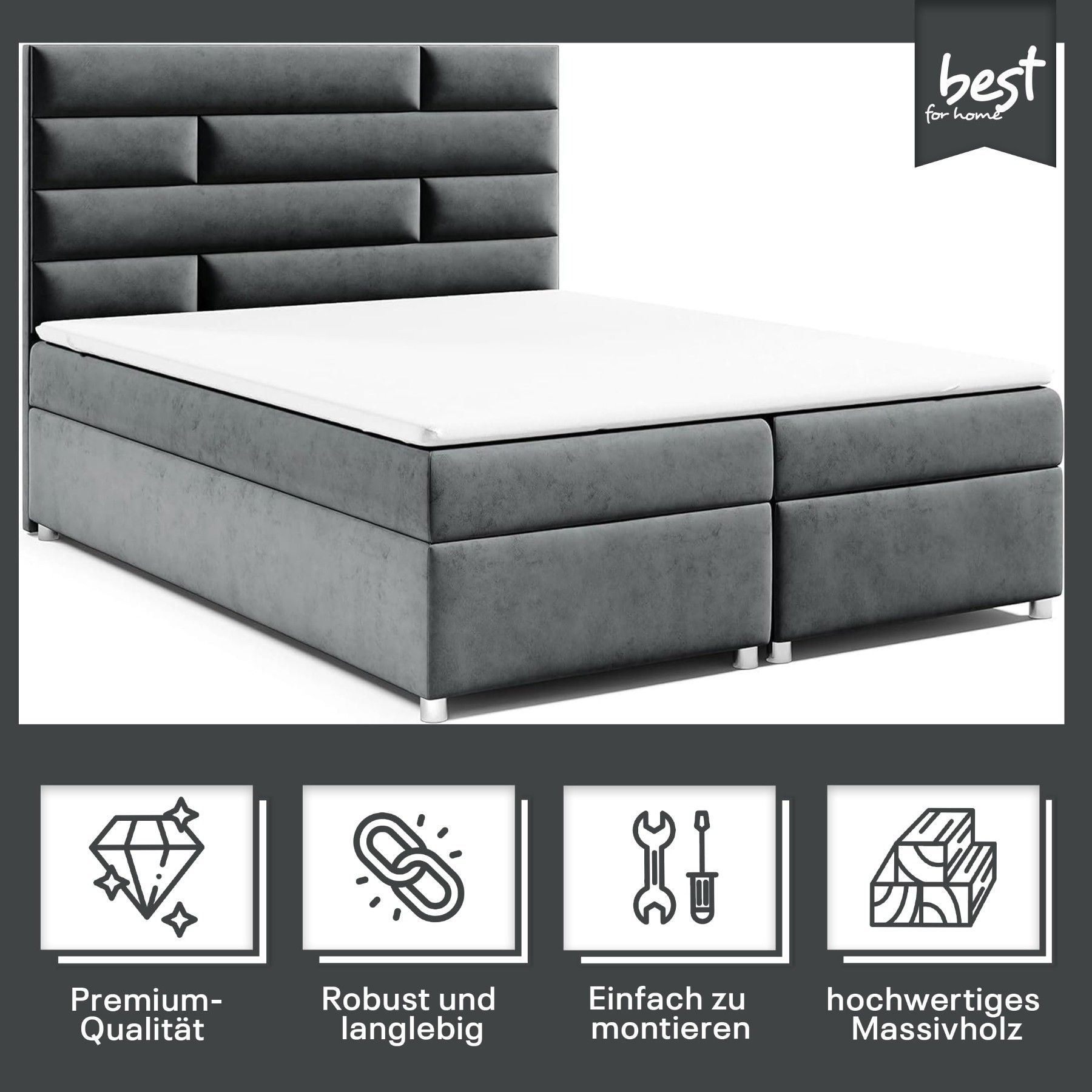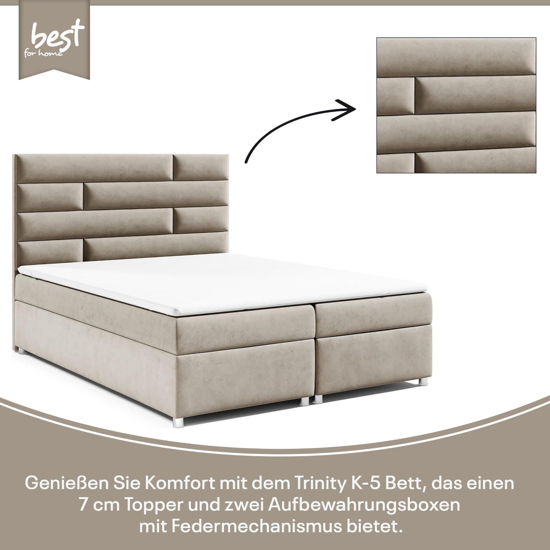 Best For Home Boxspringbett Trinity K-5 Bonellfederkern inkl. Topper, Liefer & Aufbau