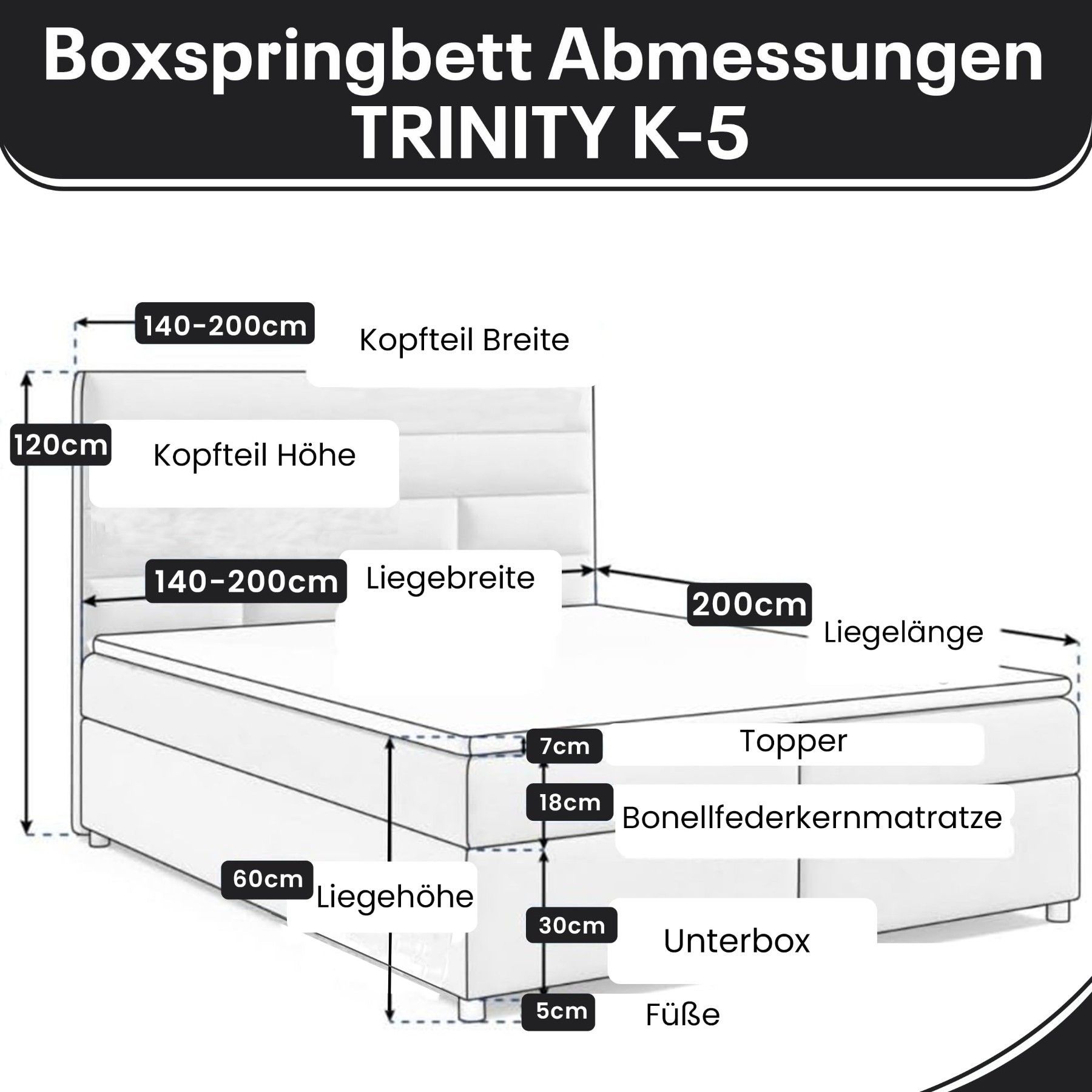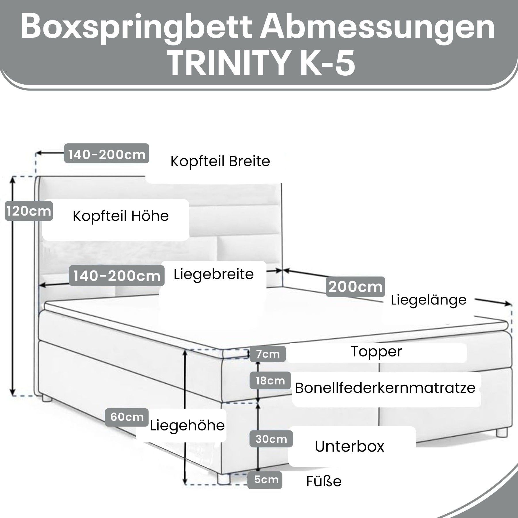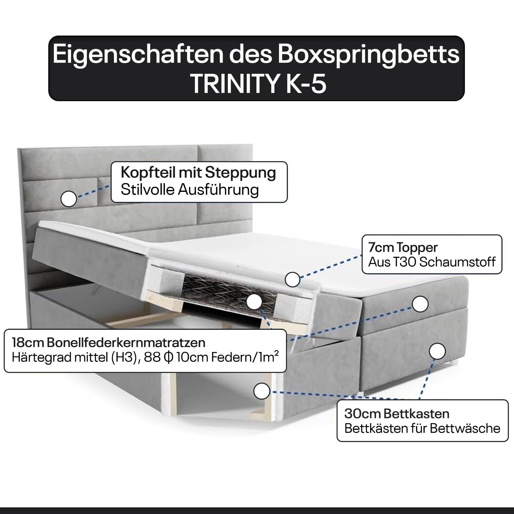 Best For Home Boxspringbett Trinity K-5 Bonellfederkern inkl. Topper, Liefer & Aufbau