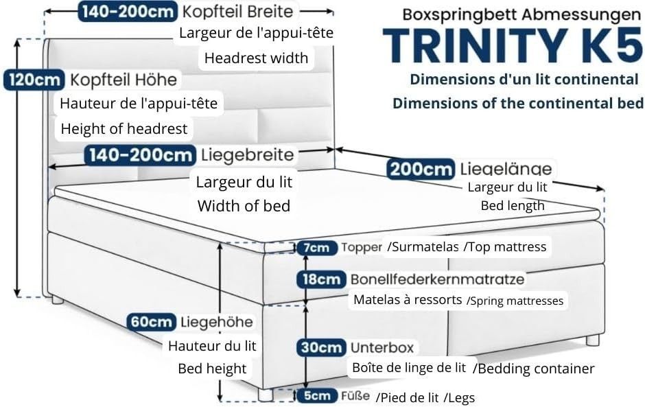 Best For Home Boxspringbett Trinity K-5 mit Bettkasten & Topper | Bonell-Federkern