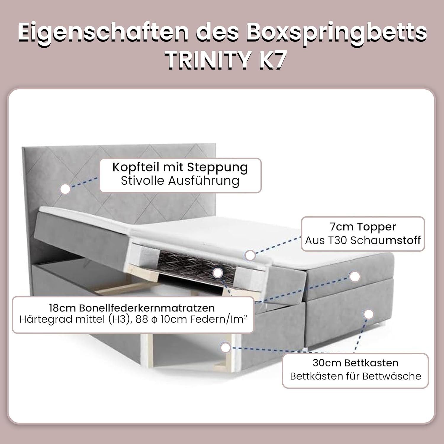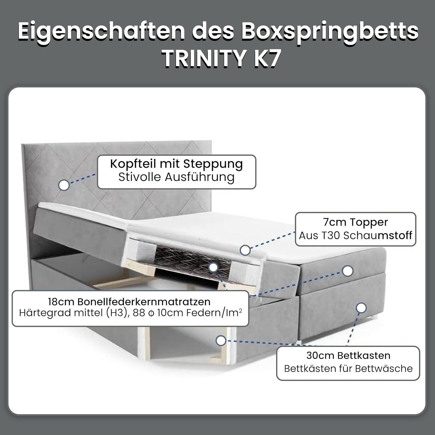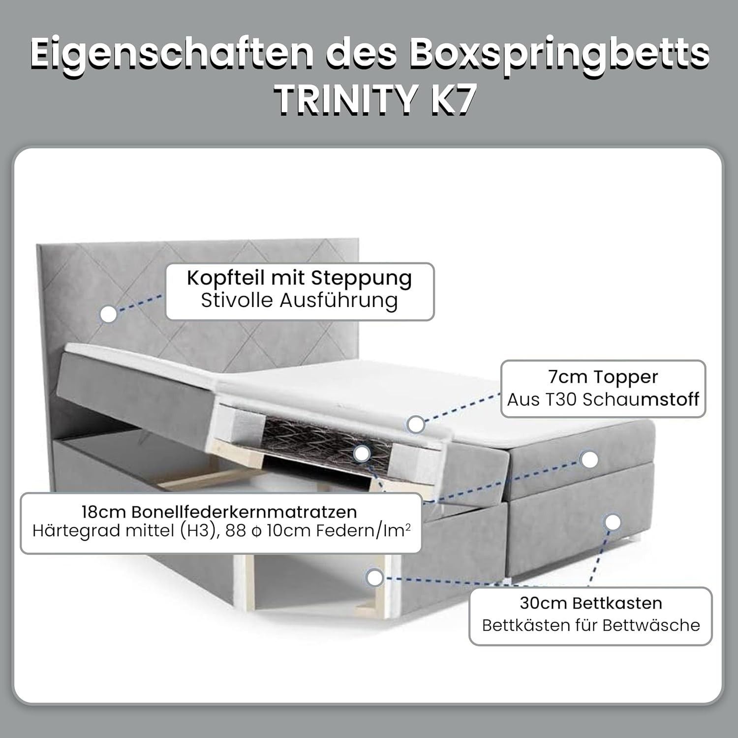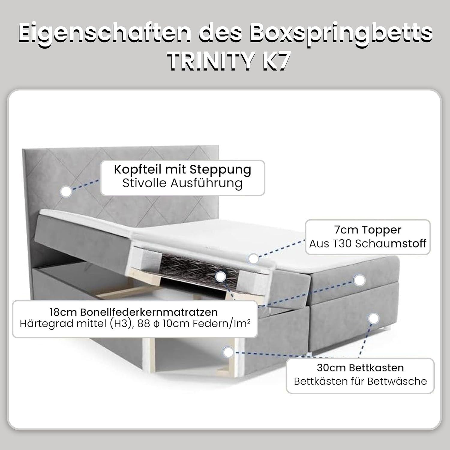 Best For Home Boxspringbett Trinity K-7 Bonellfederkern mit Bettkasten inkl. Topper