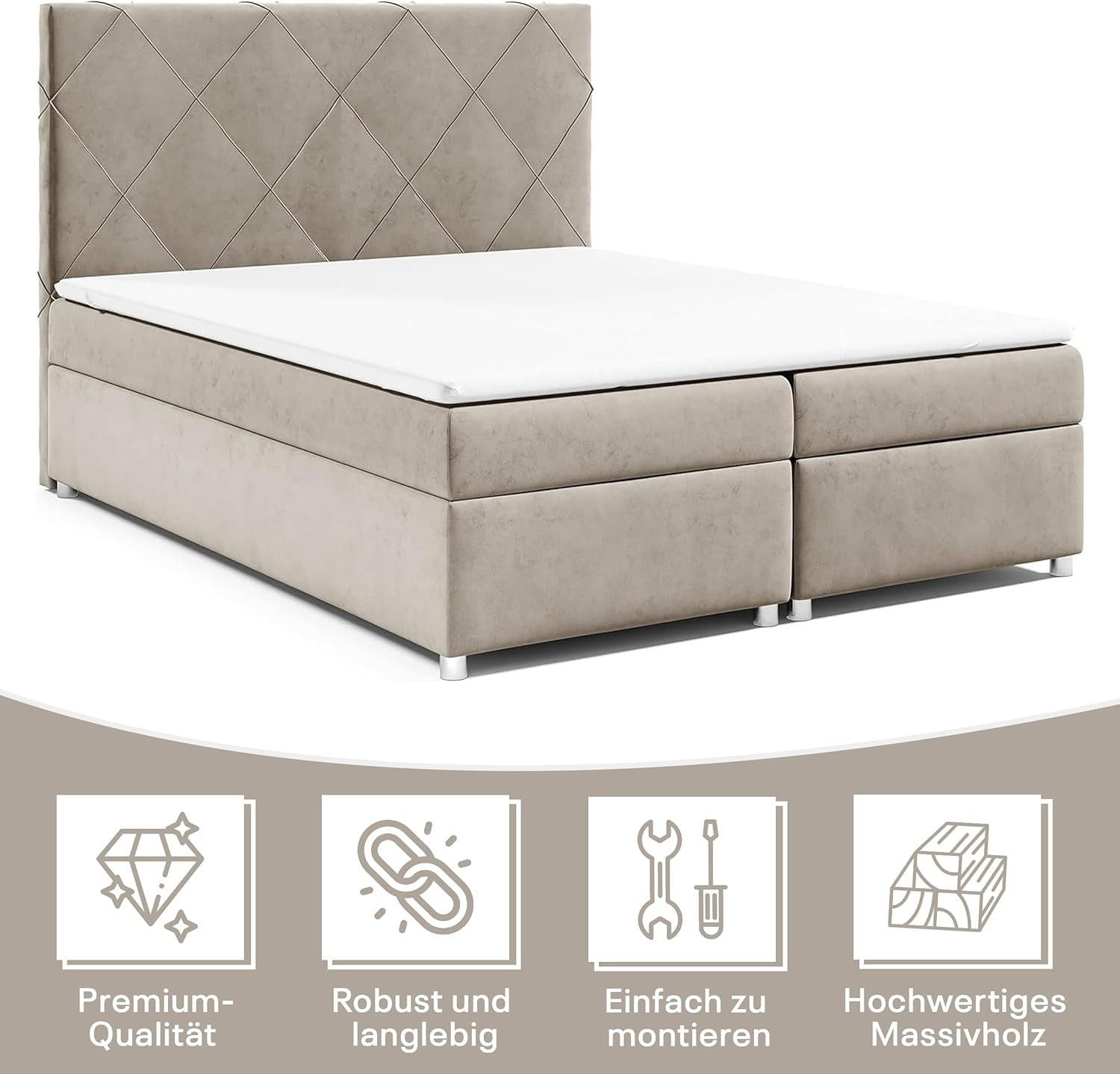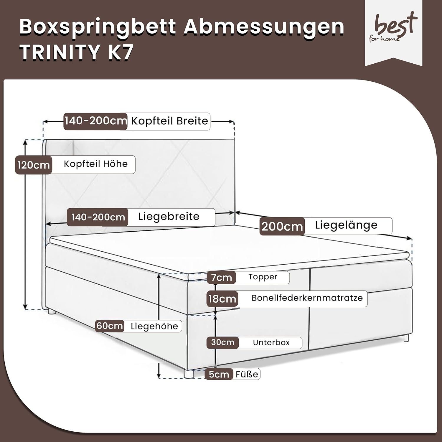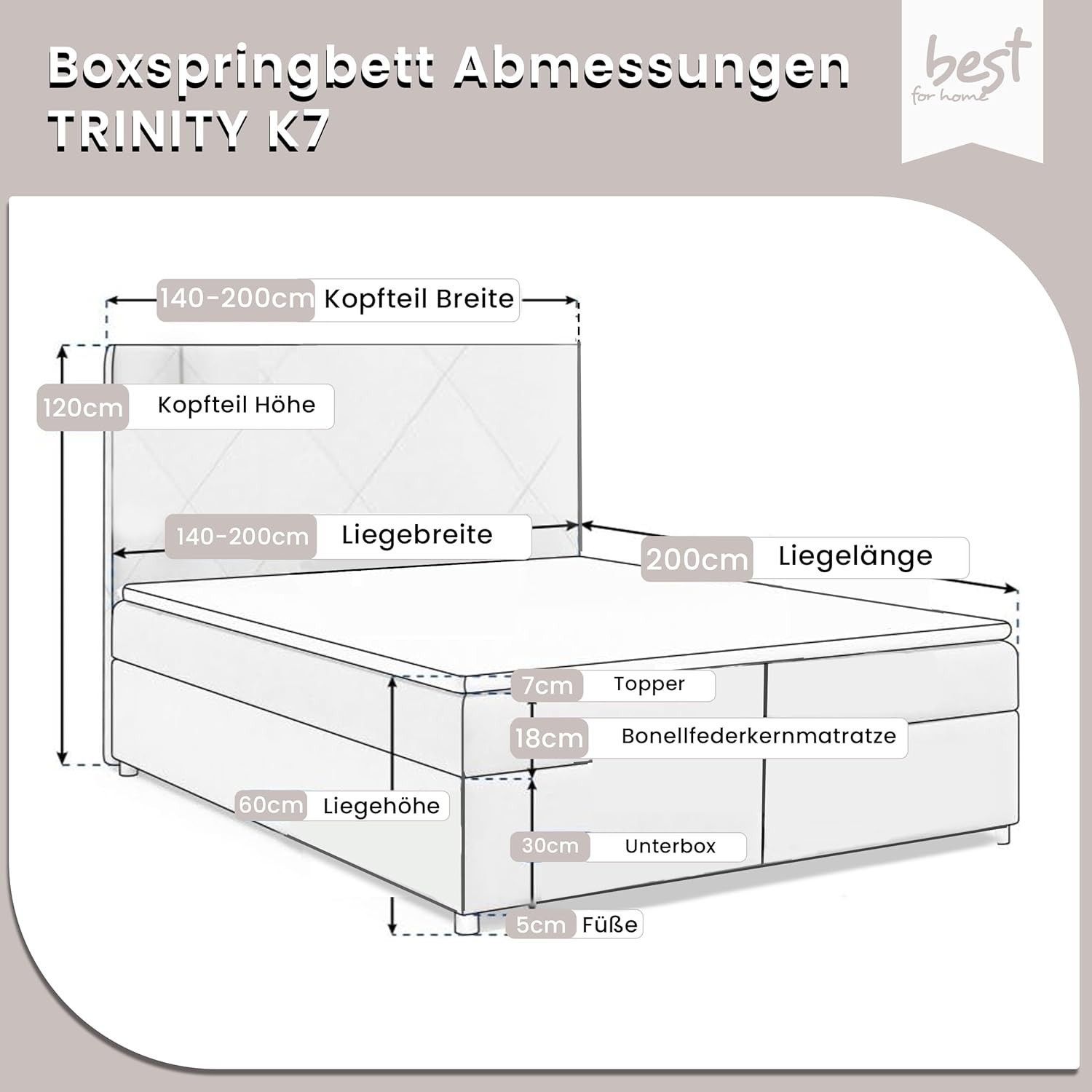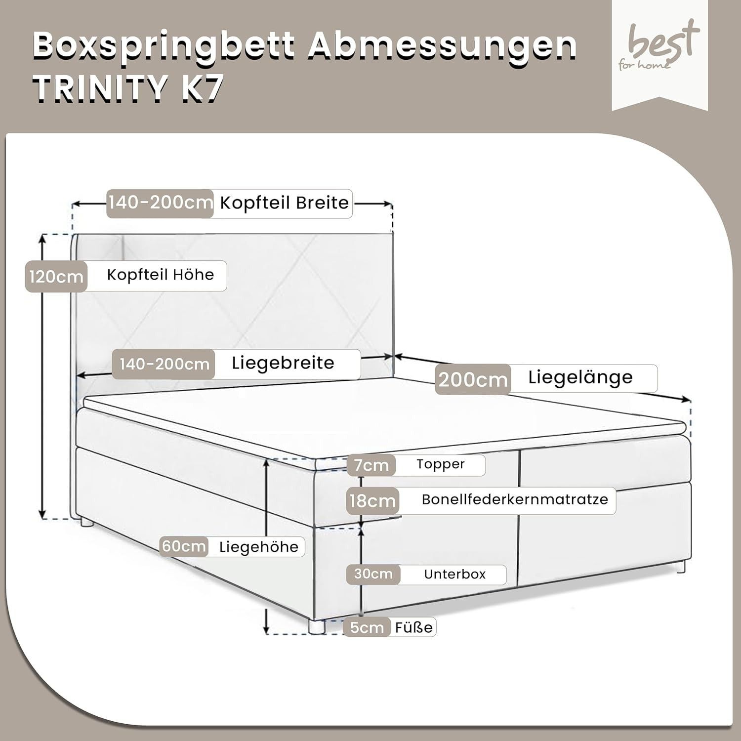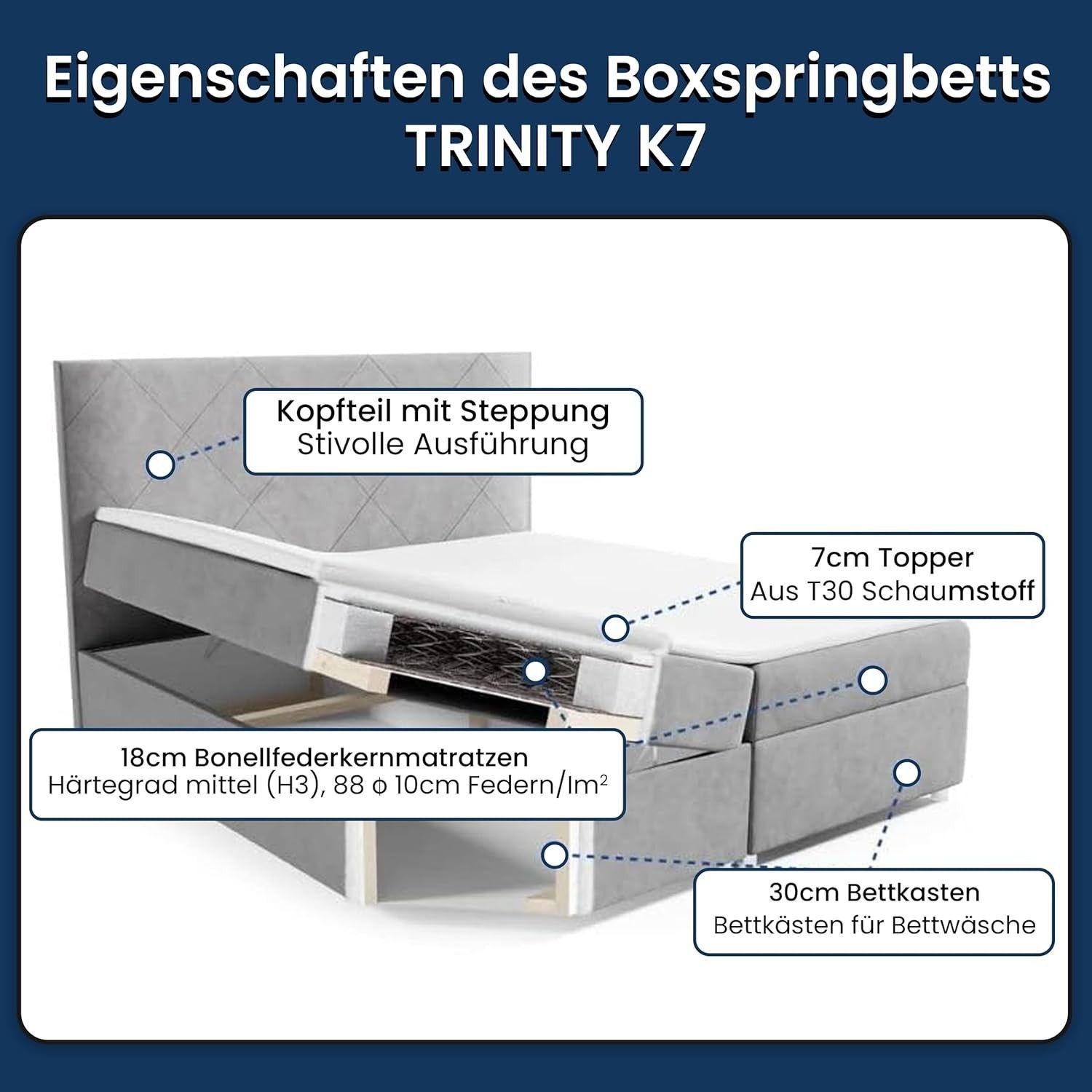 Best For Home Boxspringbett Trinity K-7 Bonellfederkern mit Bettkasten inkl. Topper