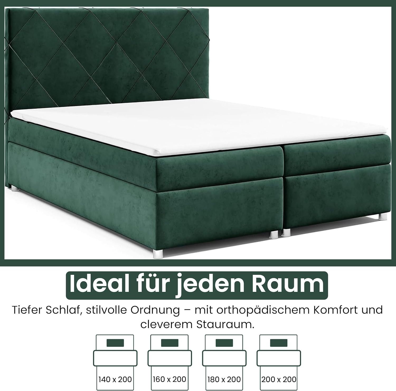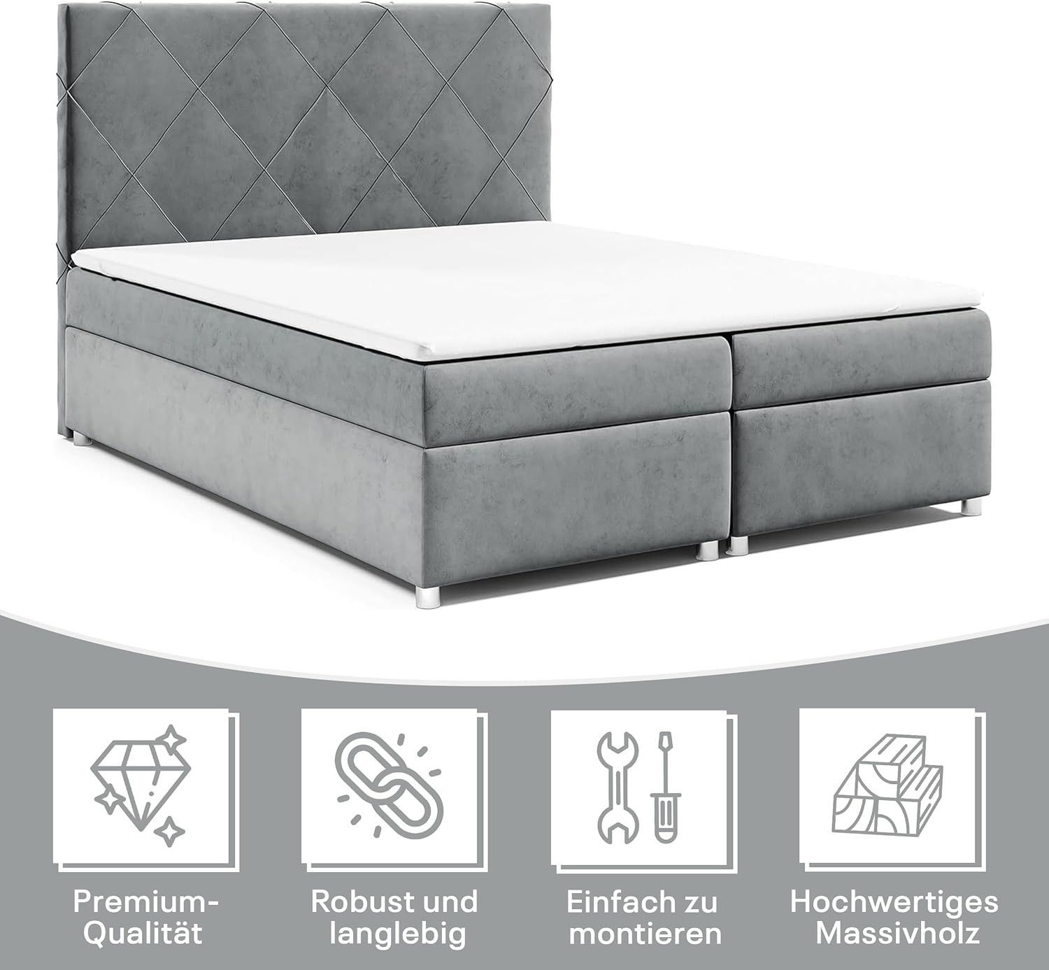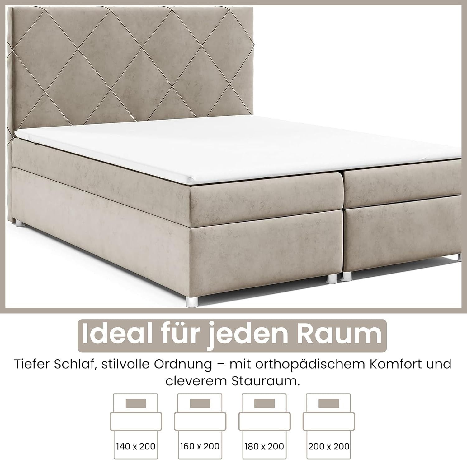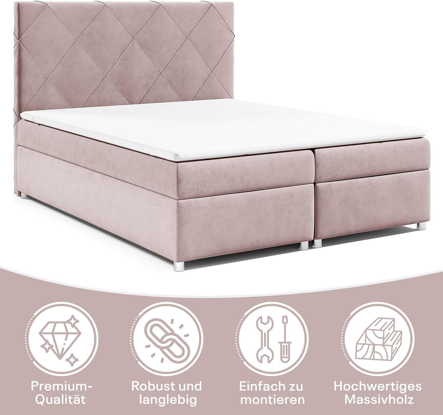 Best For Home Boxspringbett Trinity K-7 Bonellfederkern mit Bettkasten inkl. Topper