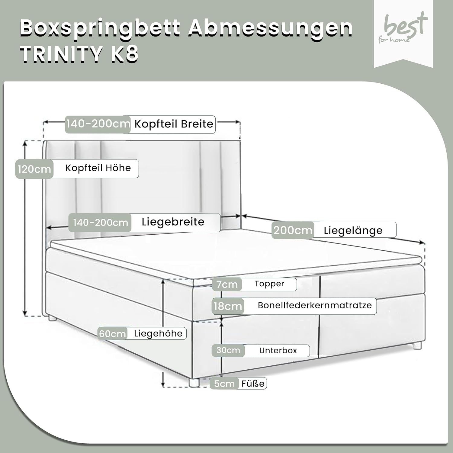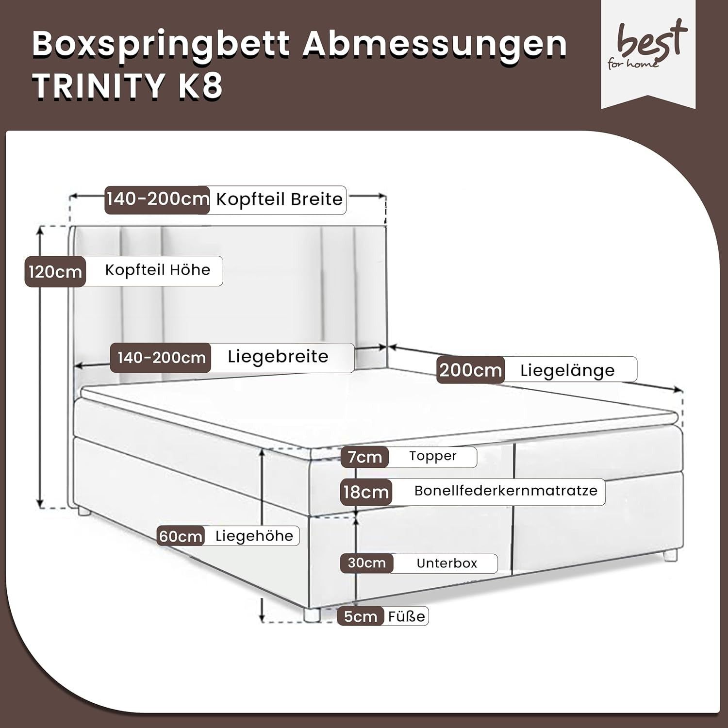 Best For Home Boxspringbett Trinity K-8 mit Bettkasten & Topper | Bonell-Federkern