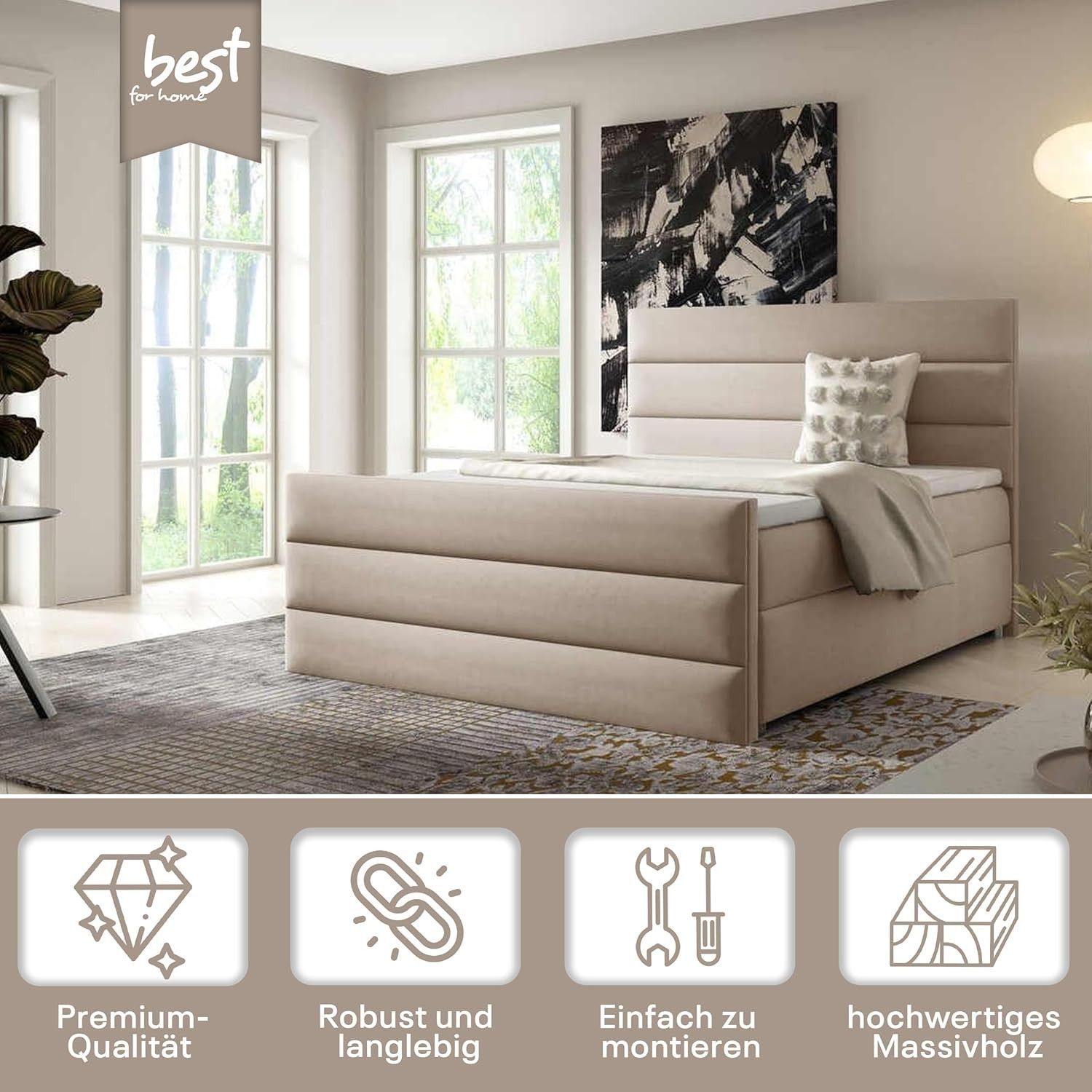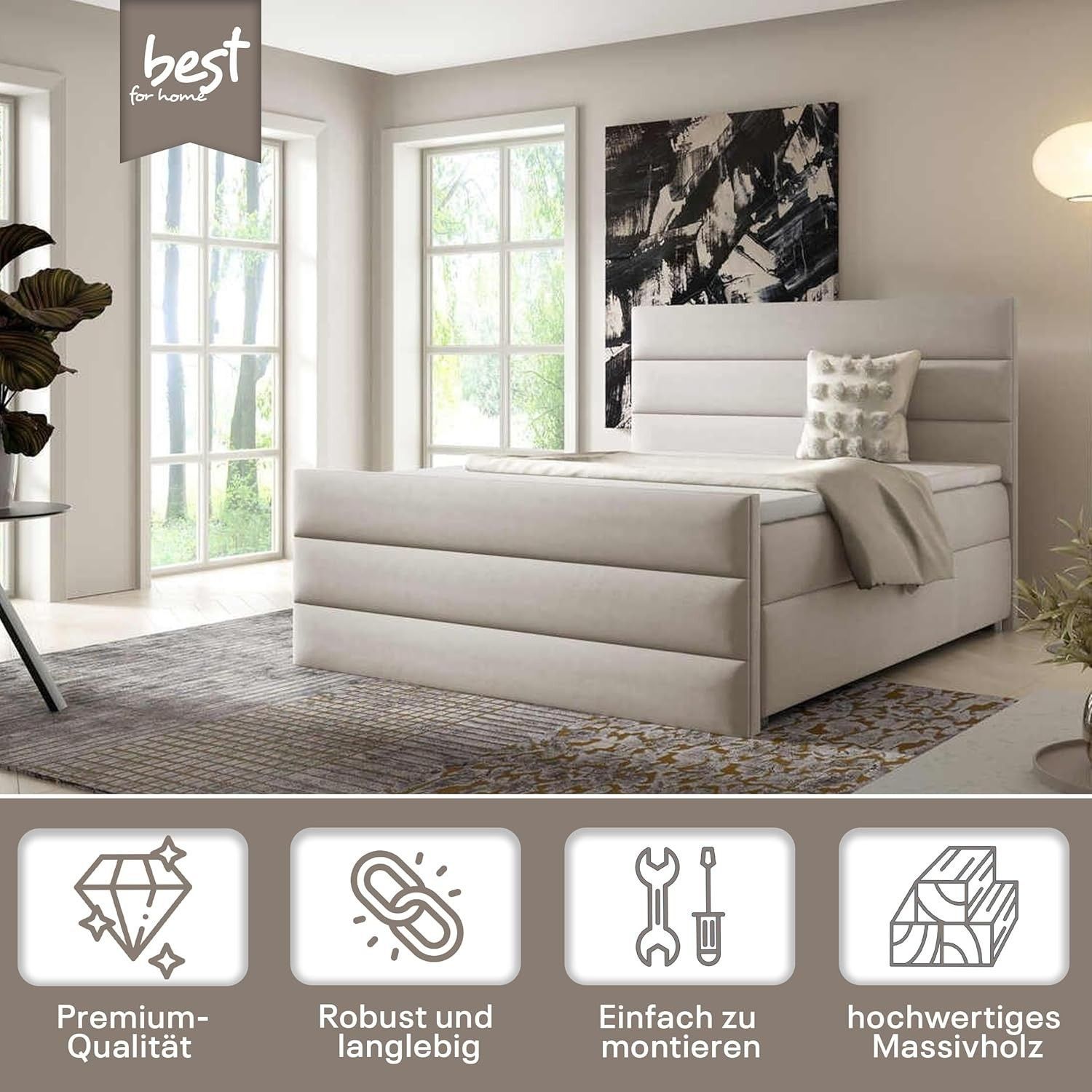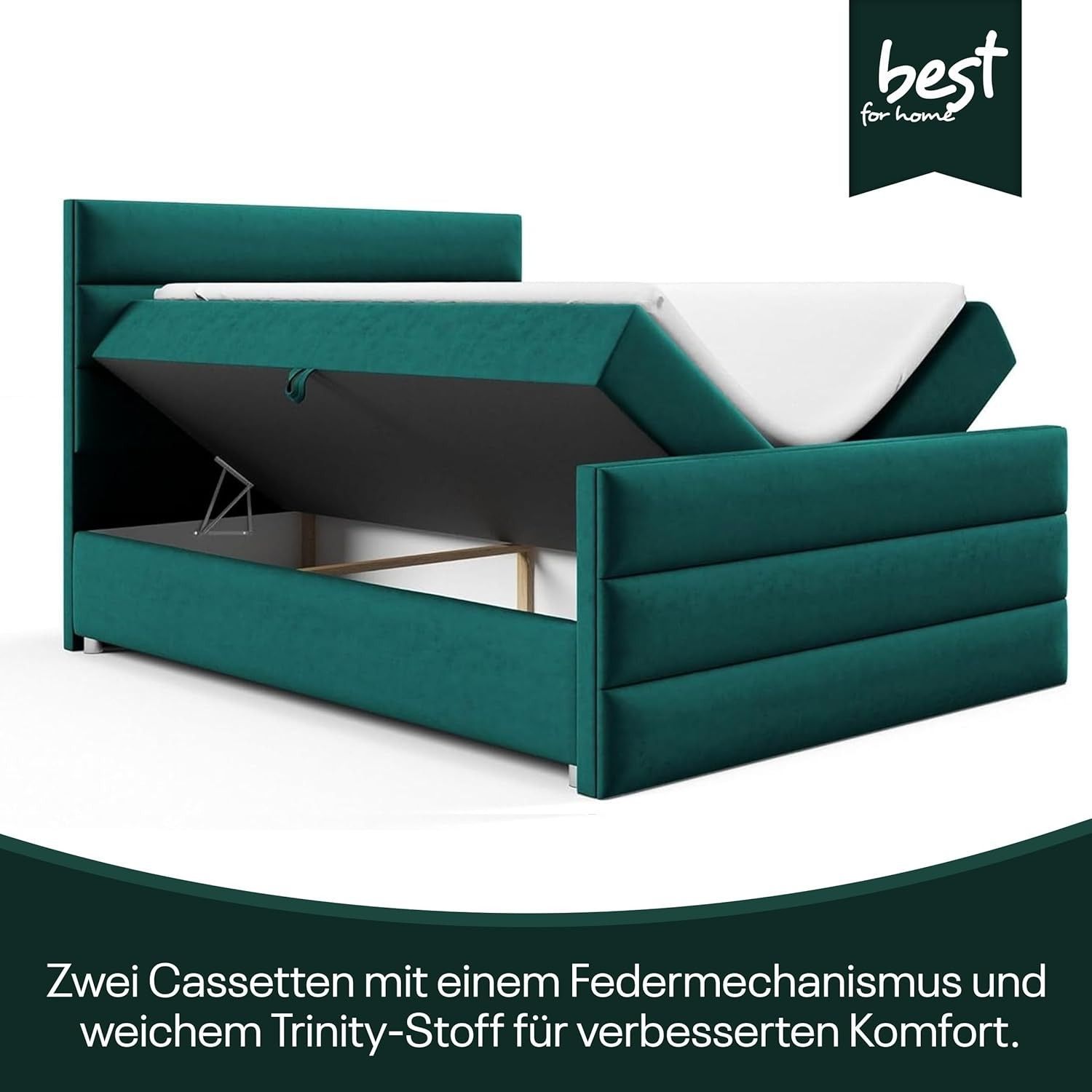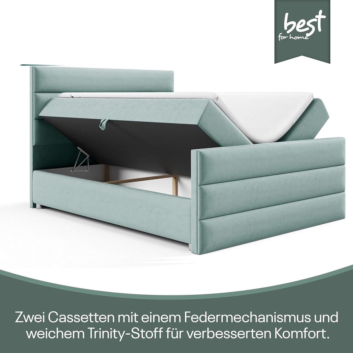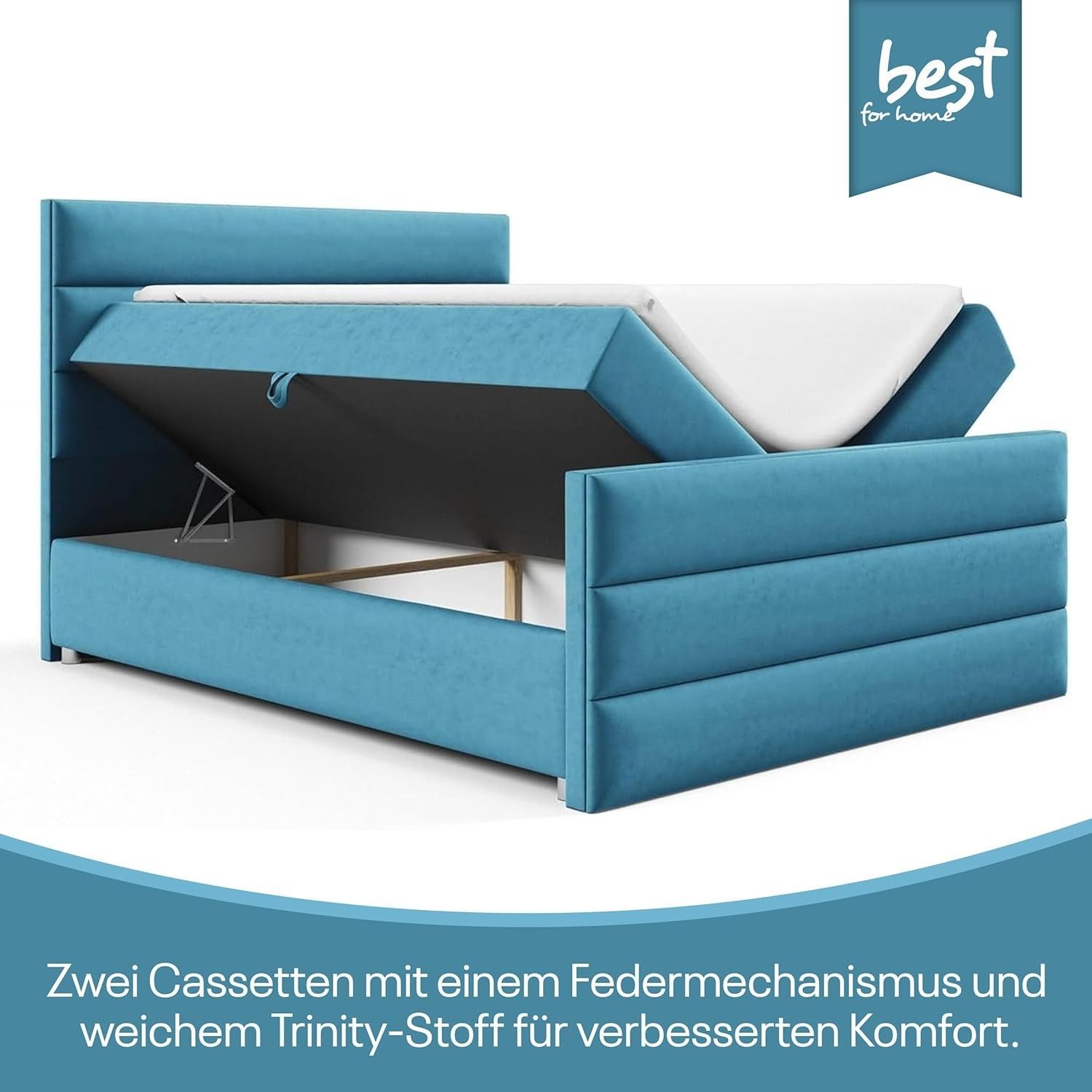 Best For Home Boxspringbett Trinity K1 140-200x200 cm mit Bettkasten & Topper