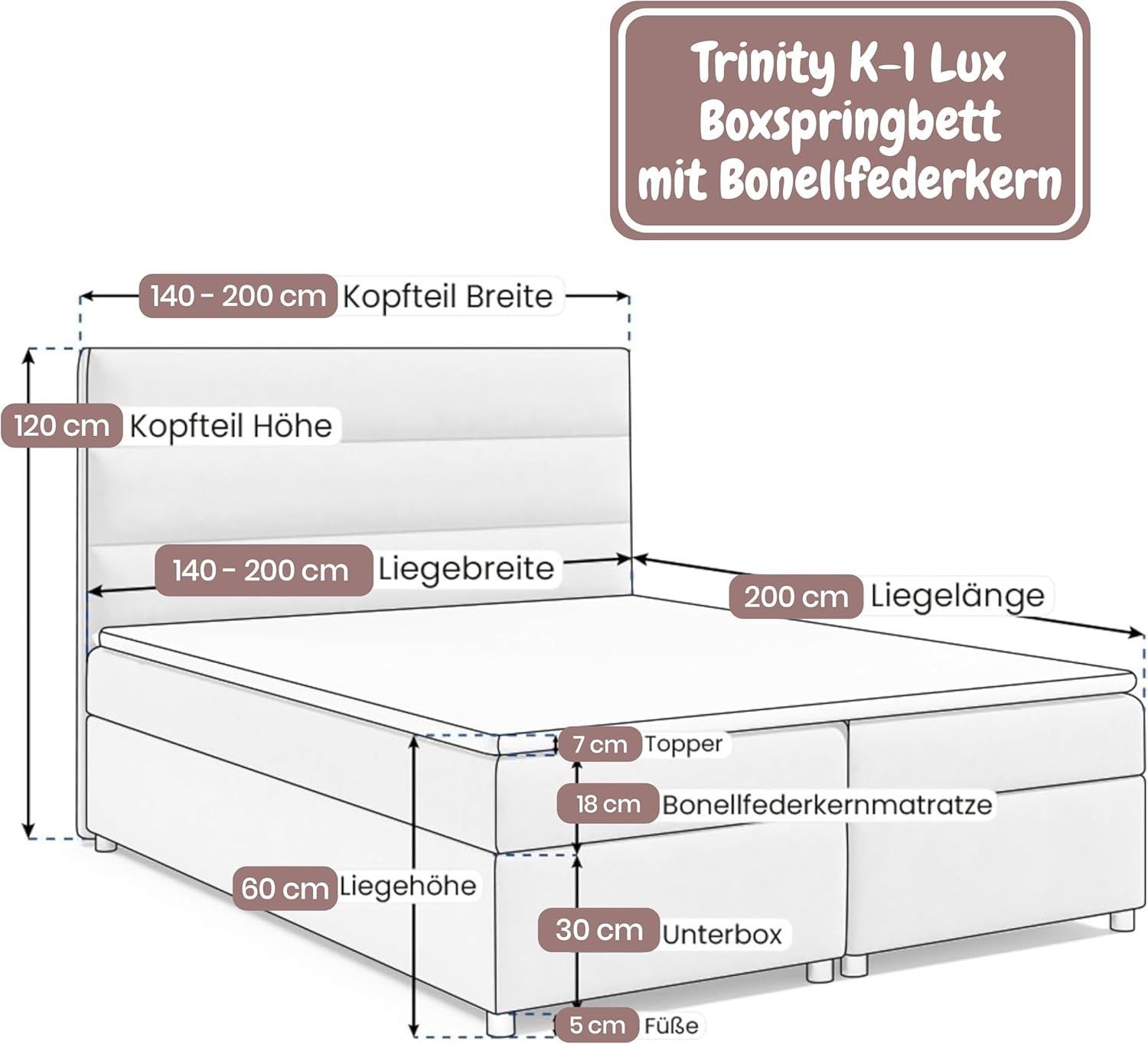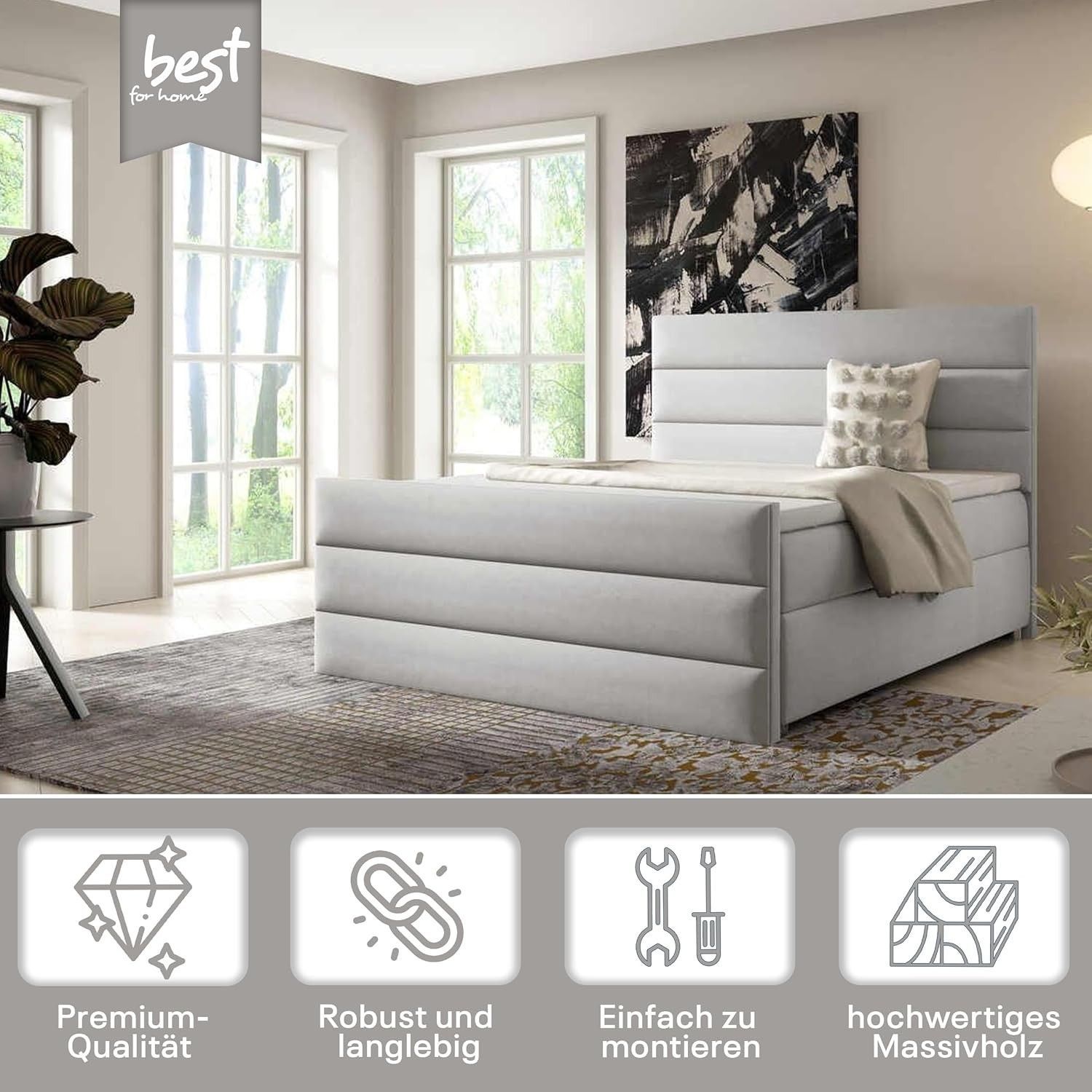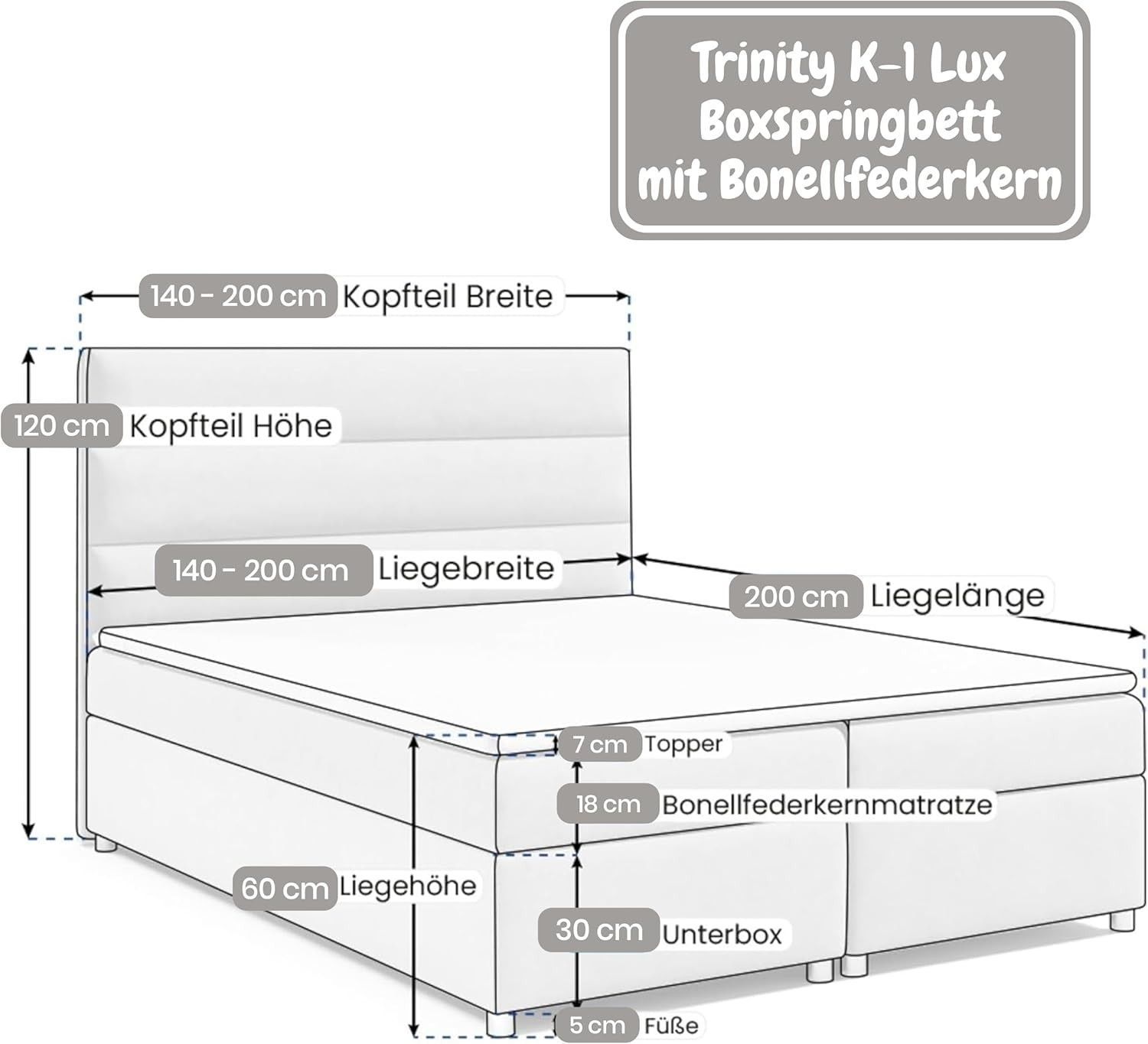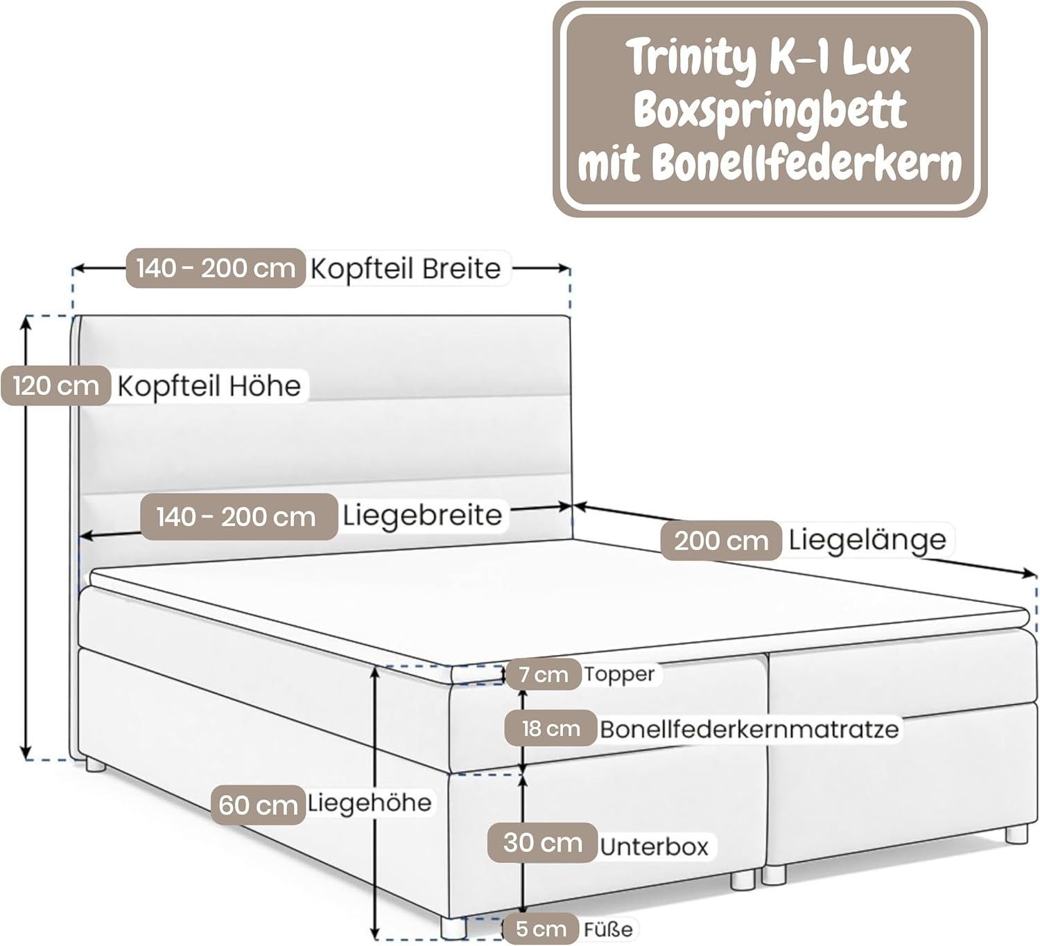 Best For Home Boxspringbett Trinity K1 140-200x200 cm mit Bettkasten & Topper