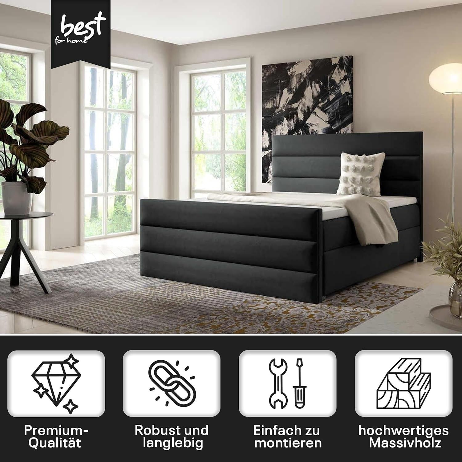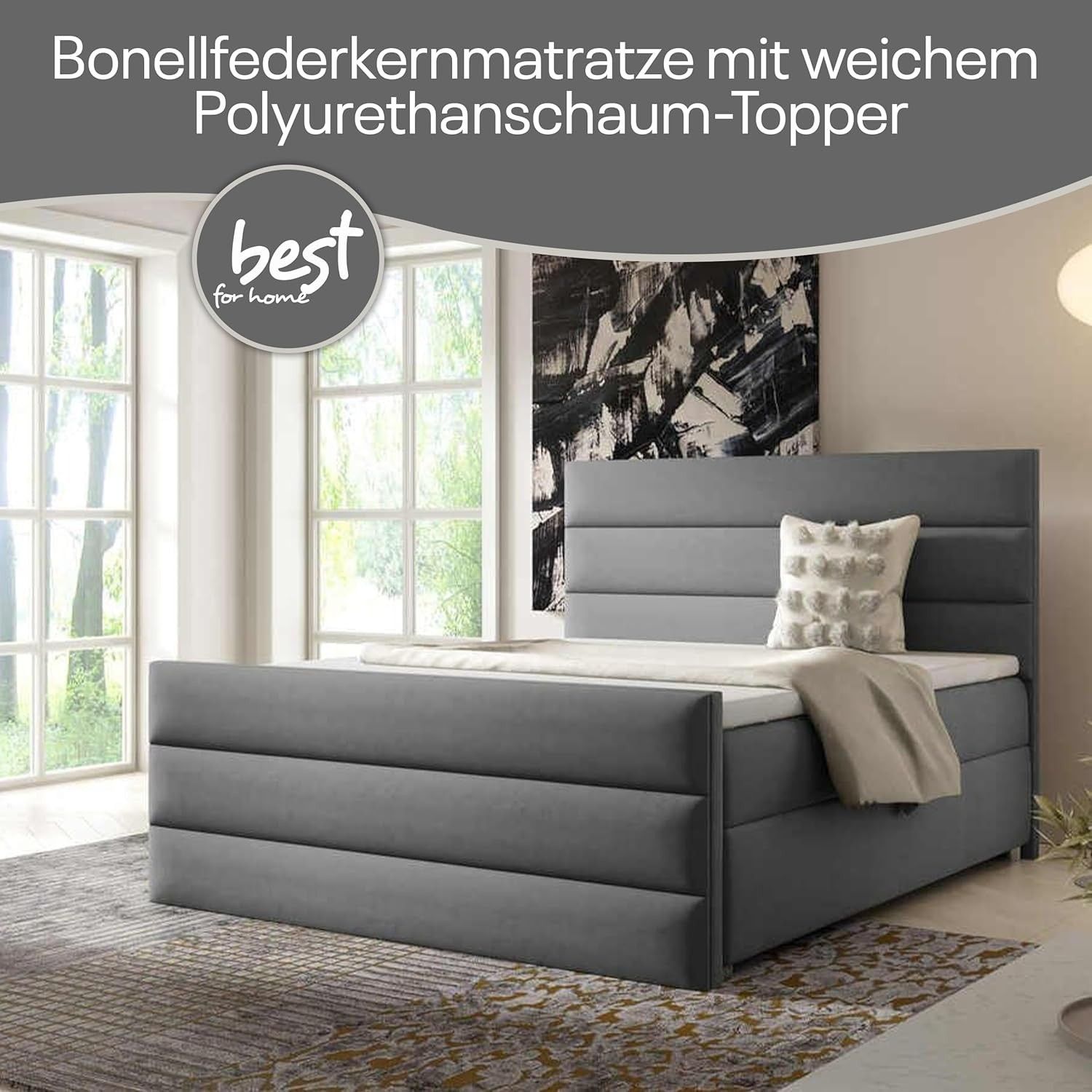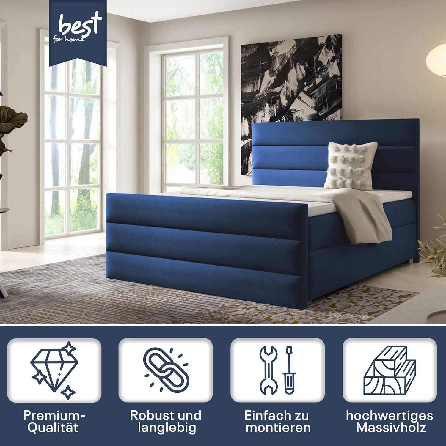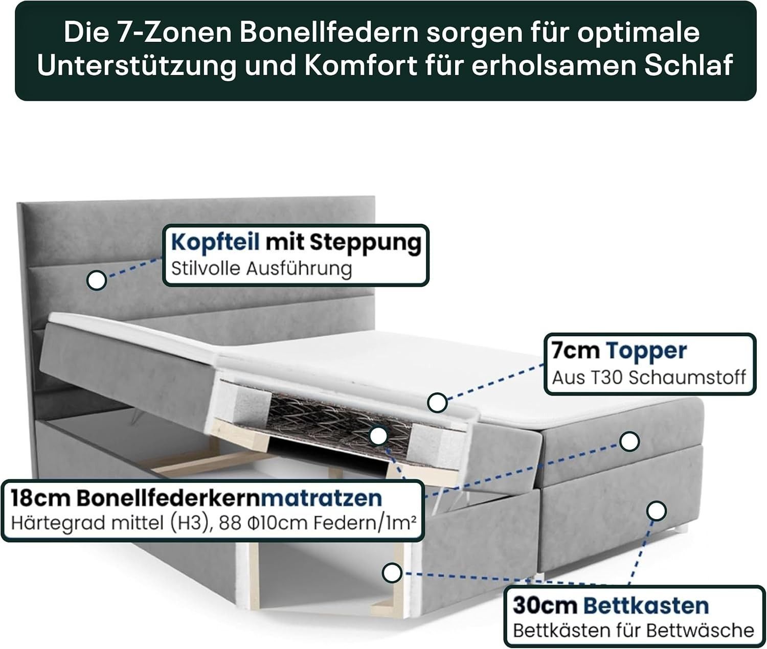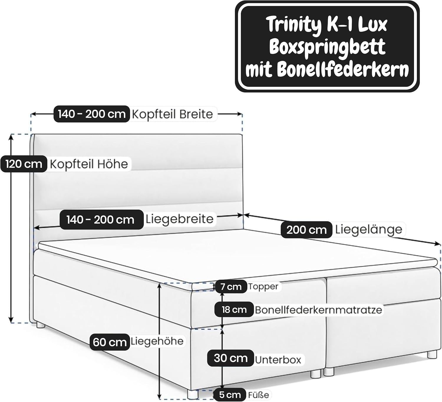 Best For Home Boxspringbett Trinity K1 140-200x200 cm mit Bettkasten & Topper