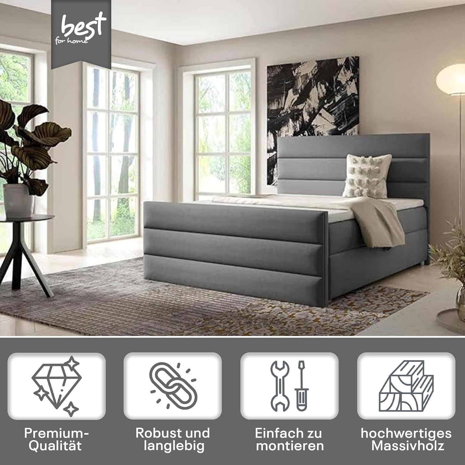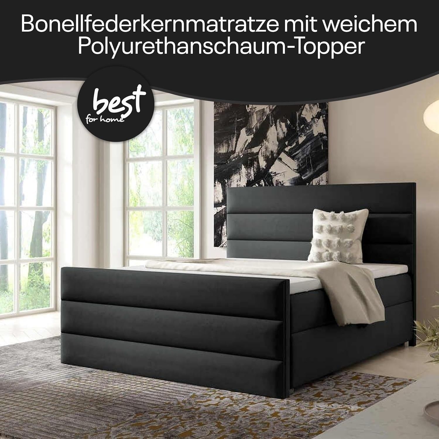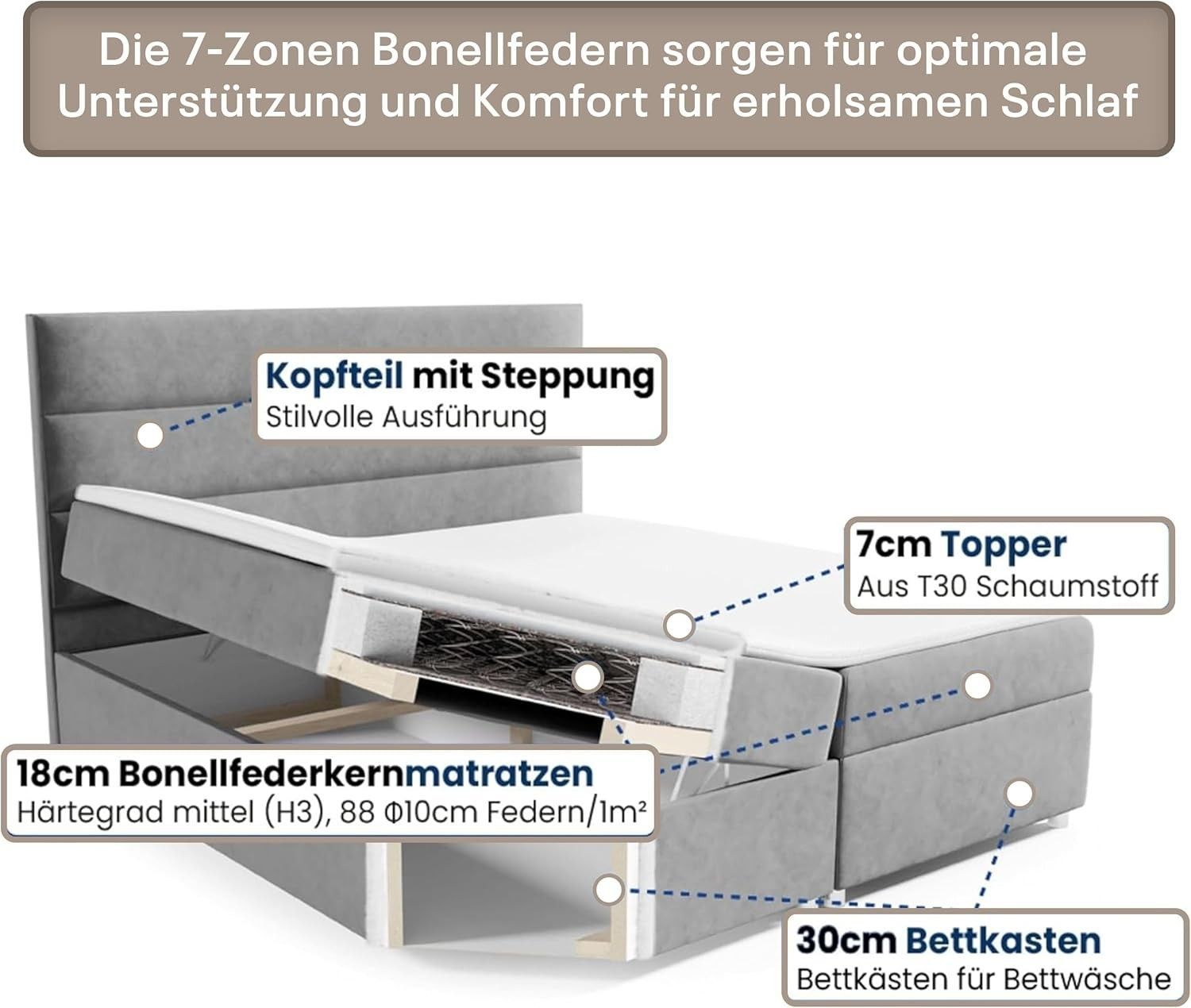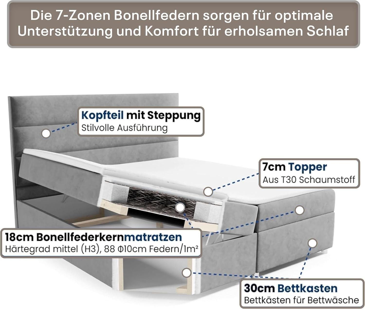 Best For Home Boxspringbett Trinity K1 140-200x200 cm mit Bettkasten & Topper