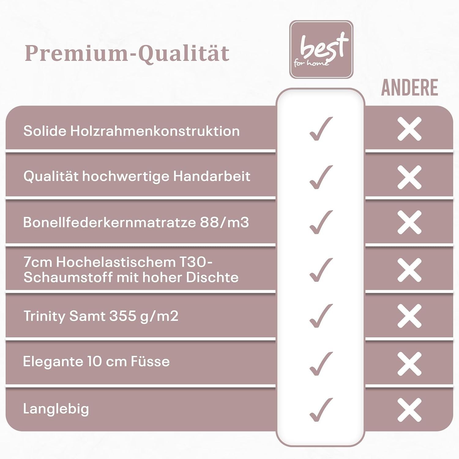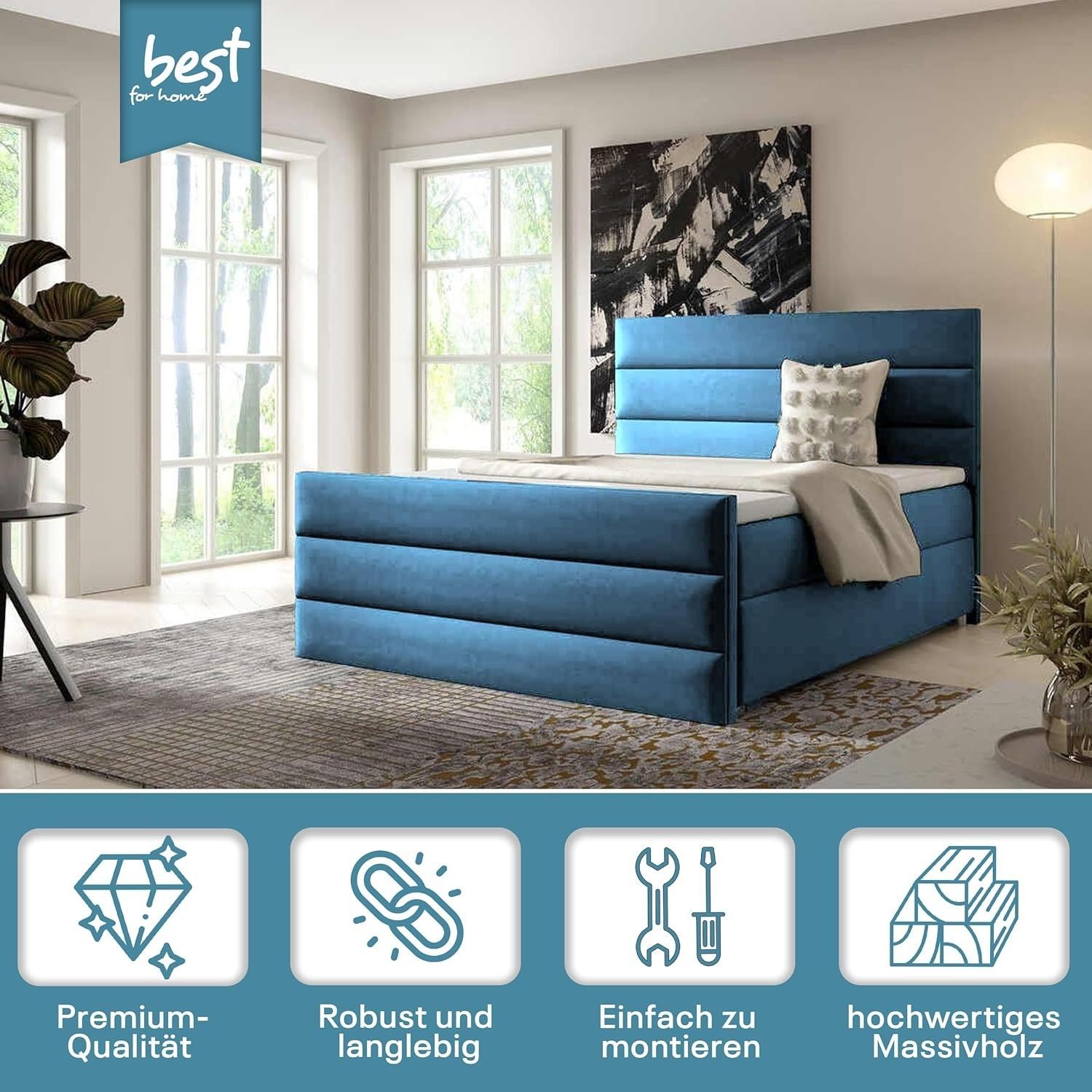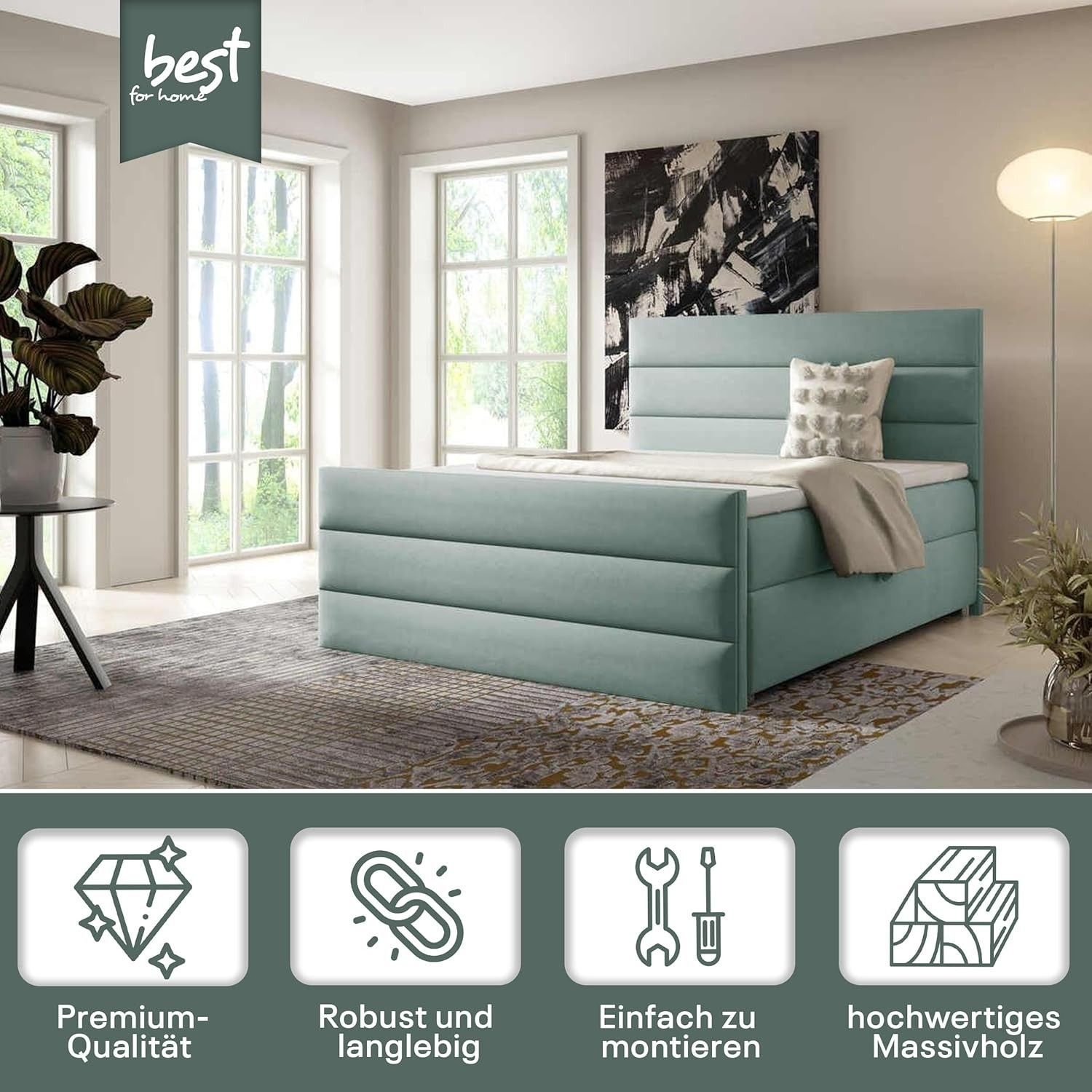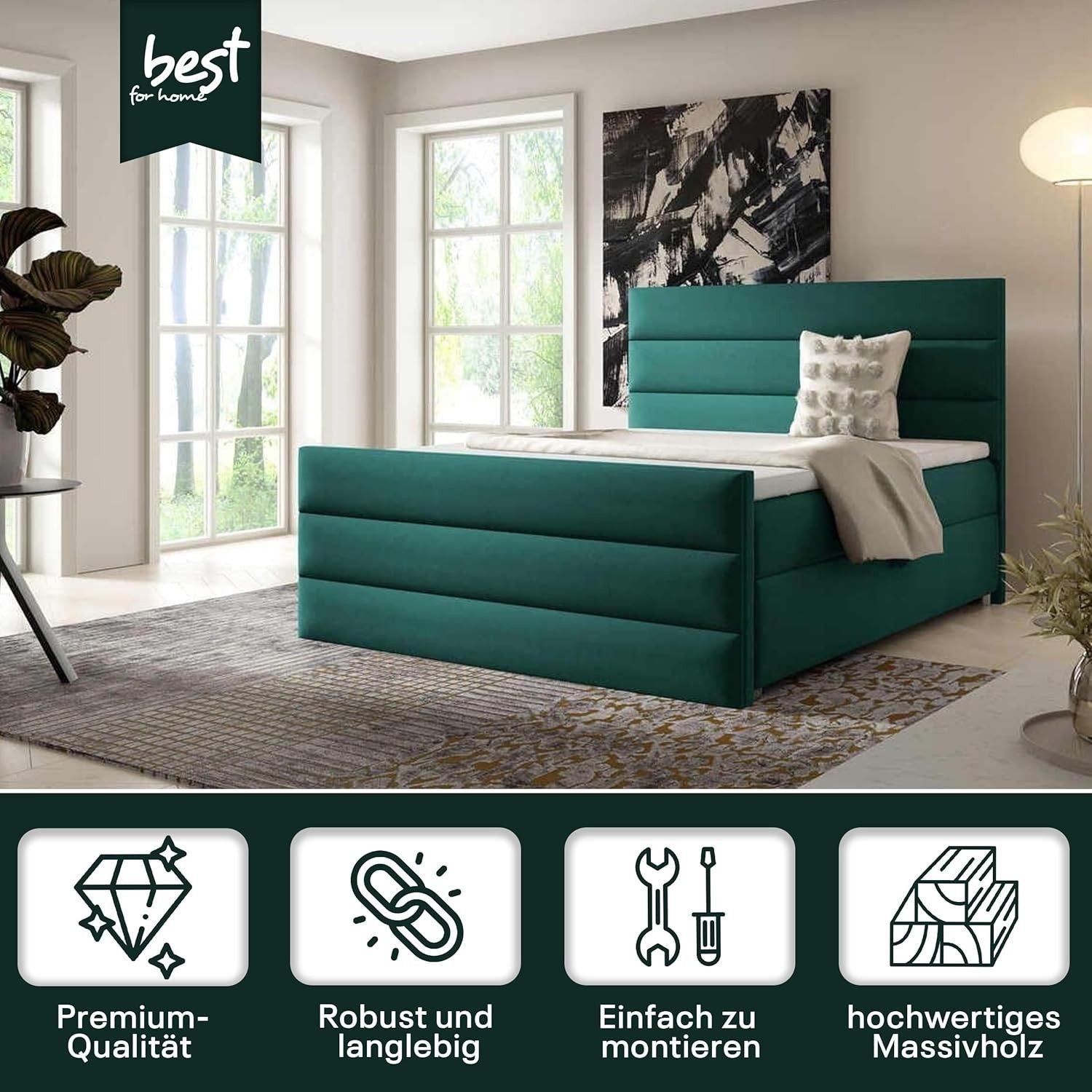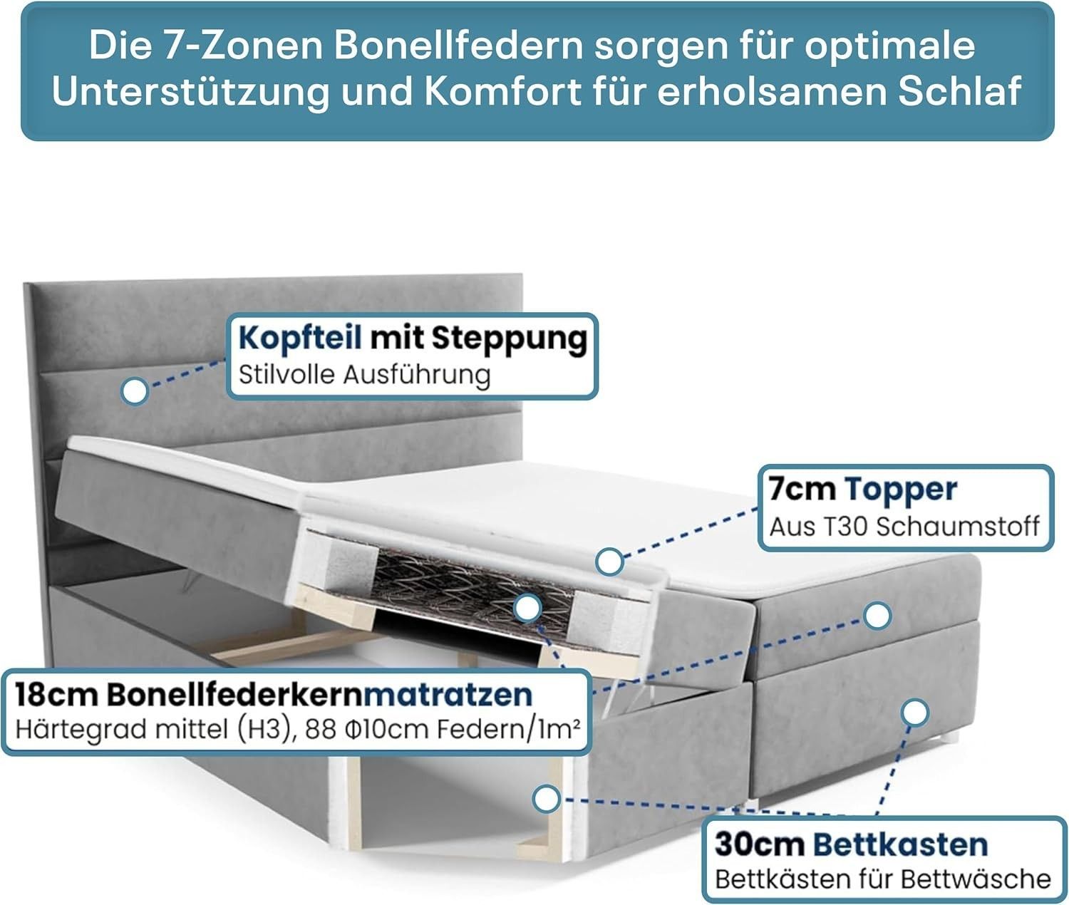 Best For Home Boxspringbett Trinity K1 140-200x200 cm mit Bettkasten & Topper