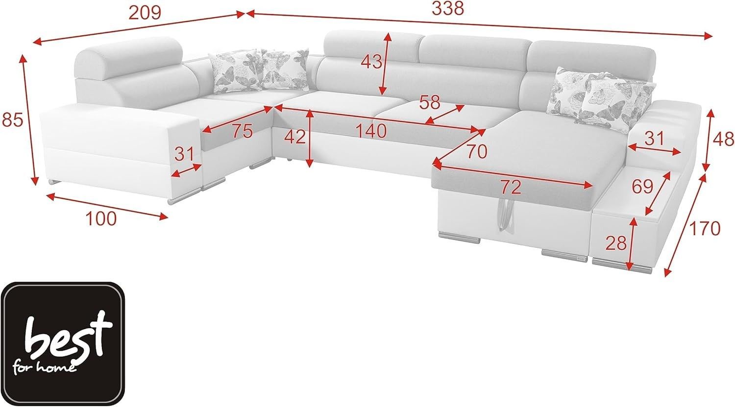 Best For Home Ecksofa Alex Mini mit Schlaffunktion, praktischem Bettkasten & Kissen L