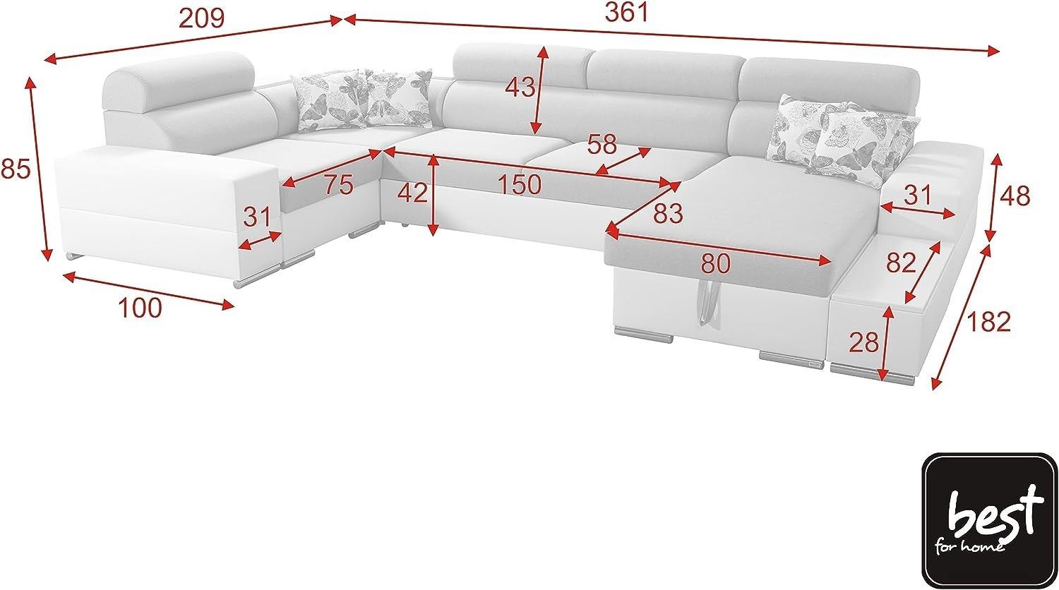 Best For Home Ecksofa Alice Maxi mit Schlaffunktion und Bettkasten L-förmige Couch