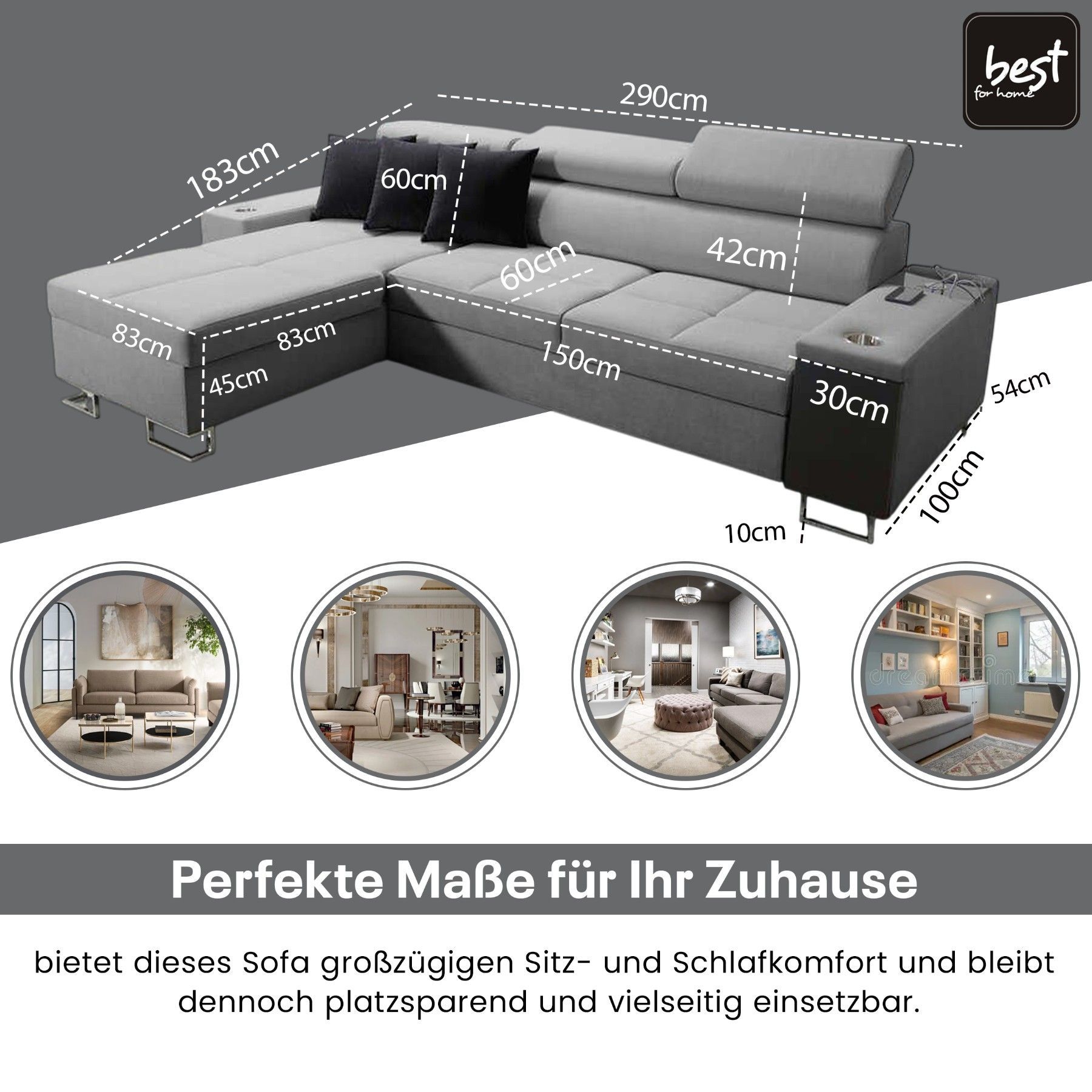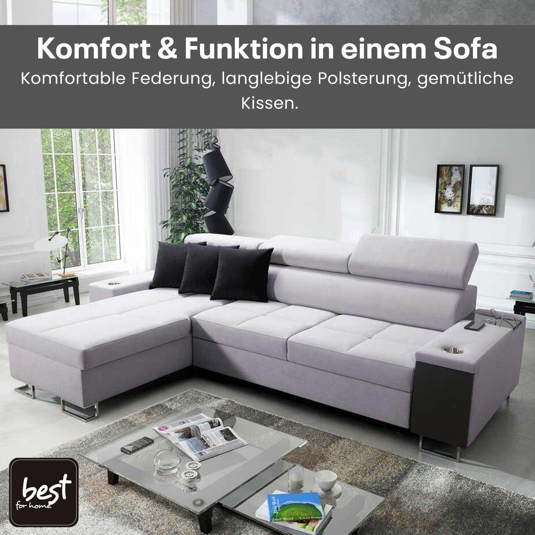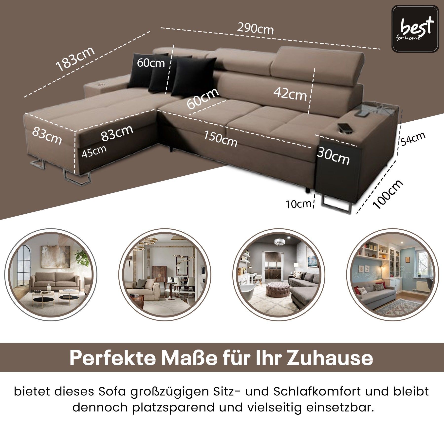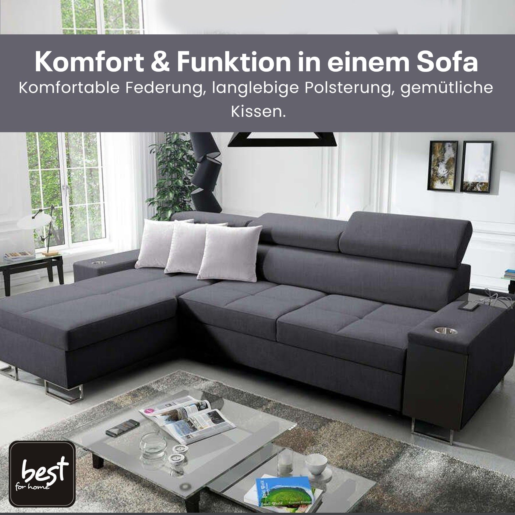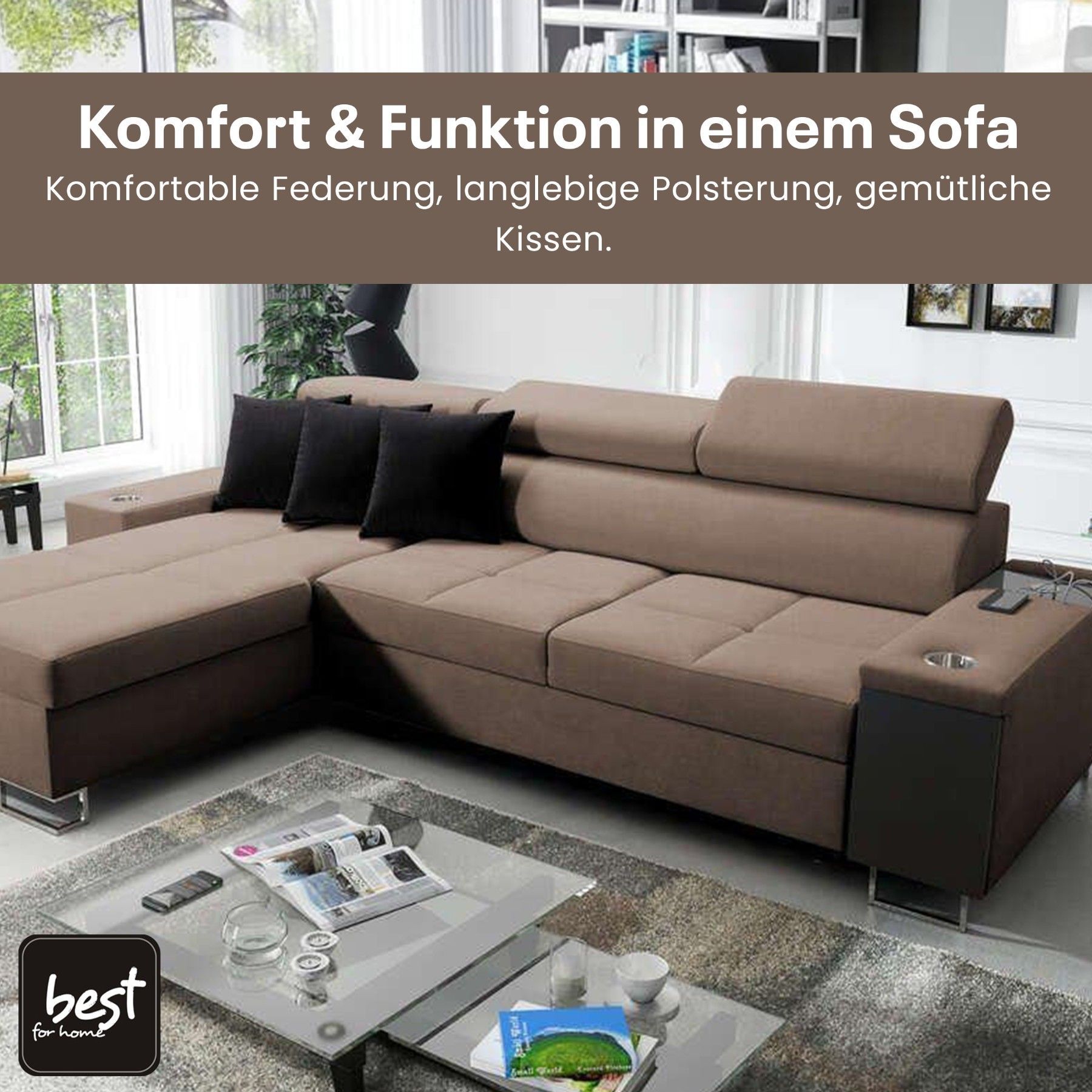 Best For Home Ecksofa Anita I Maxi Schlafsofa mit USB, Steckdose & Bettfunktion