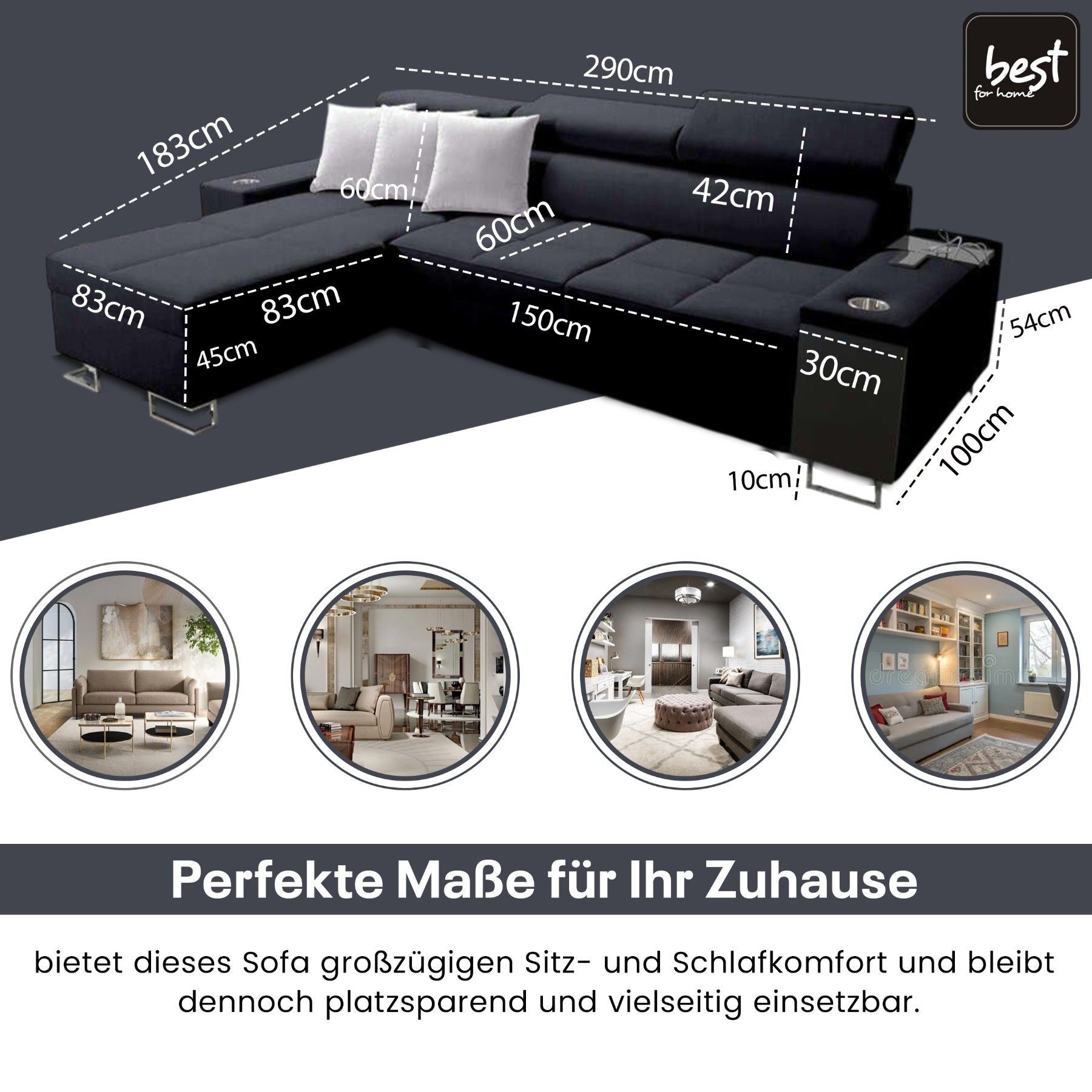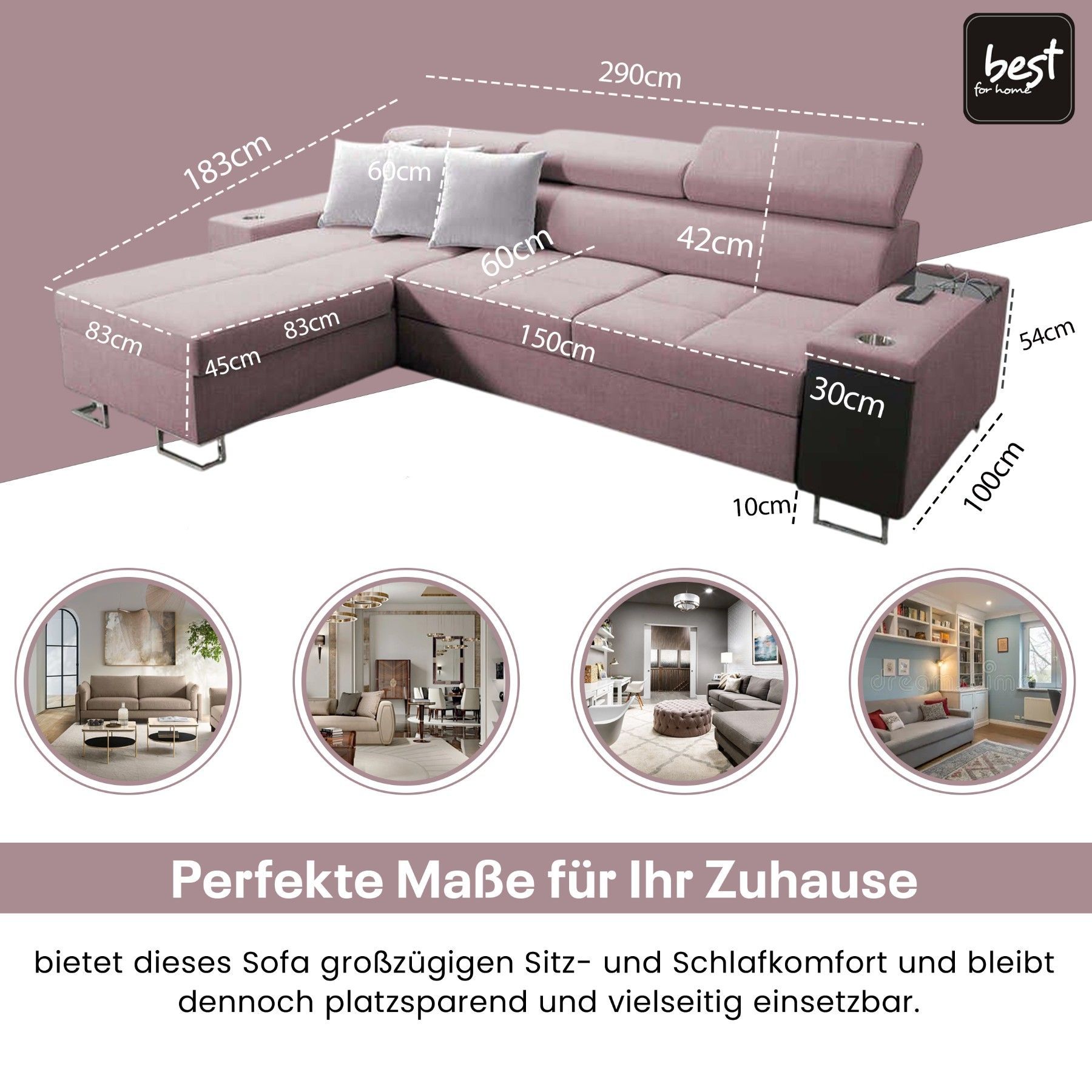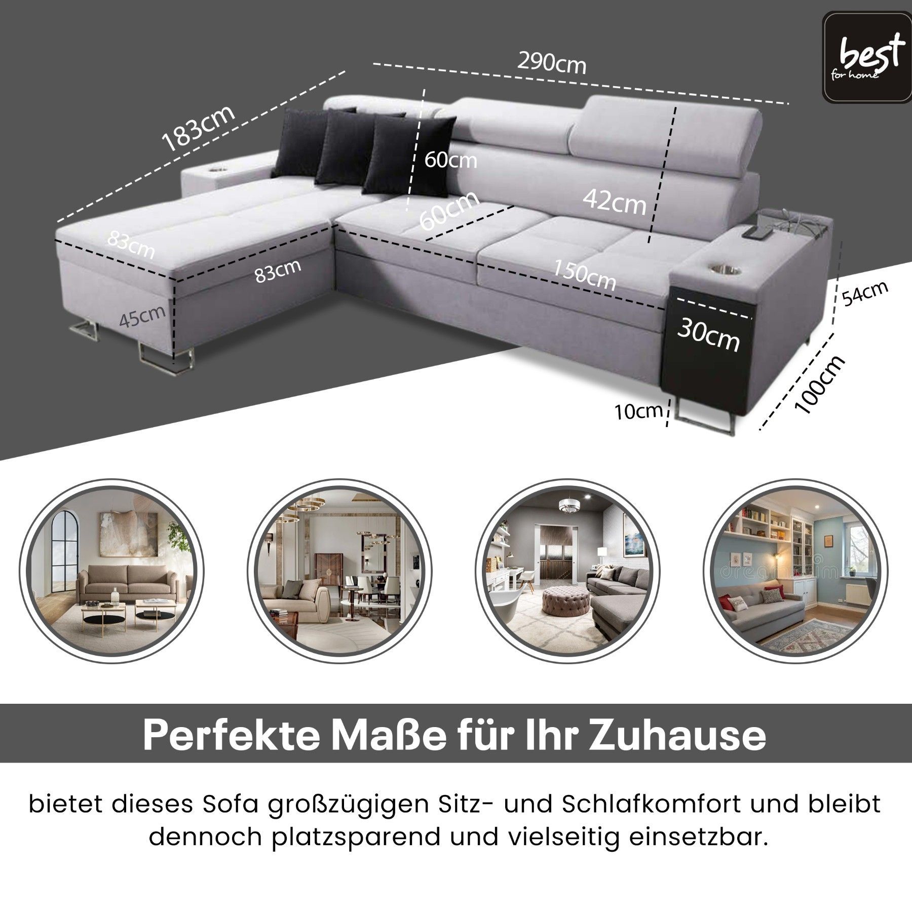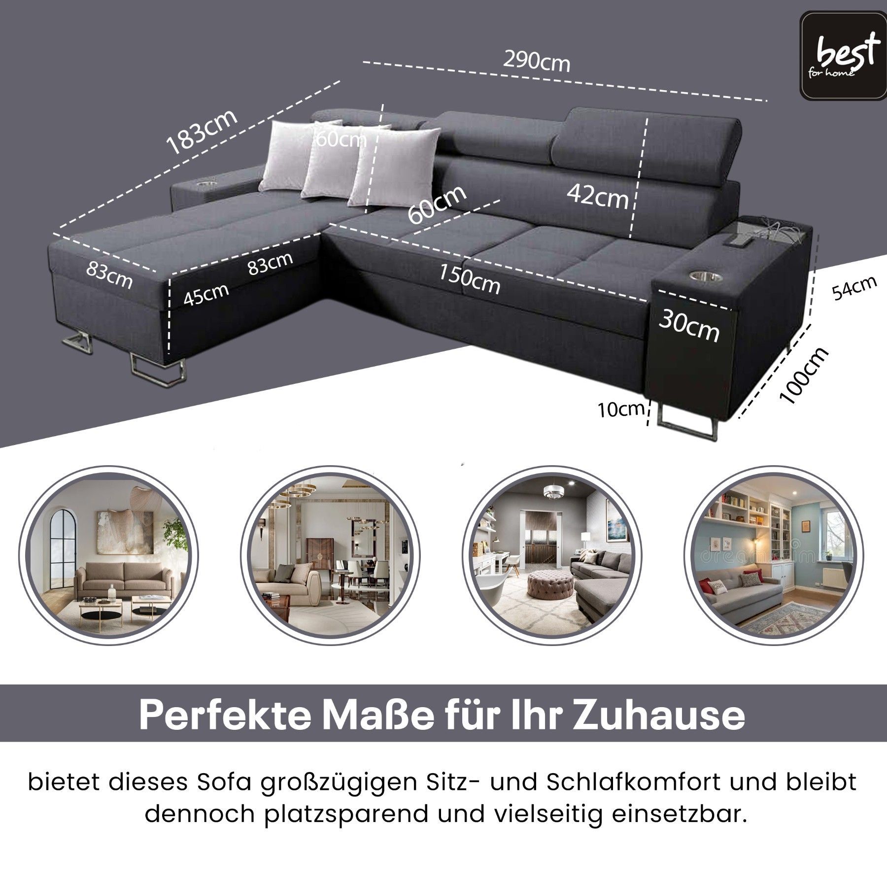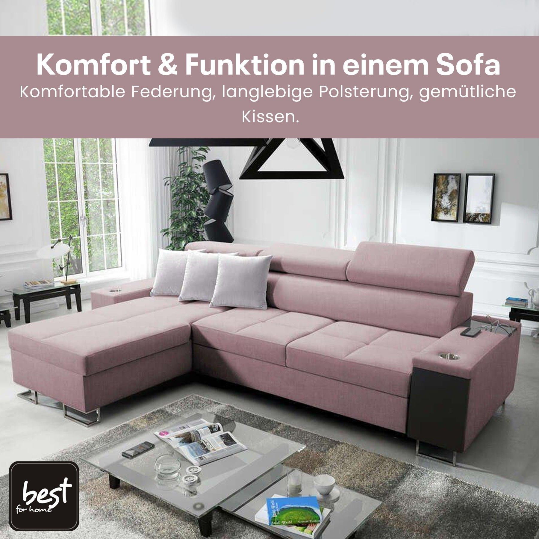 Best For Home Ecksofa Anita I Maxi Schlafsofa mit USB, Steckdose & Bettfunktion