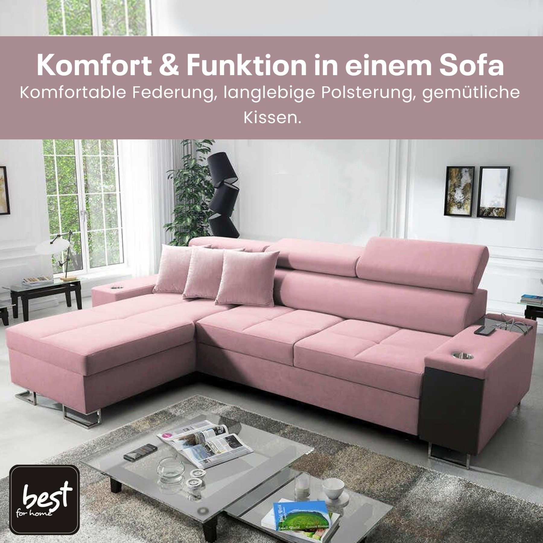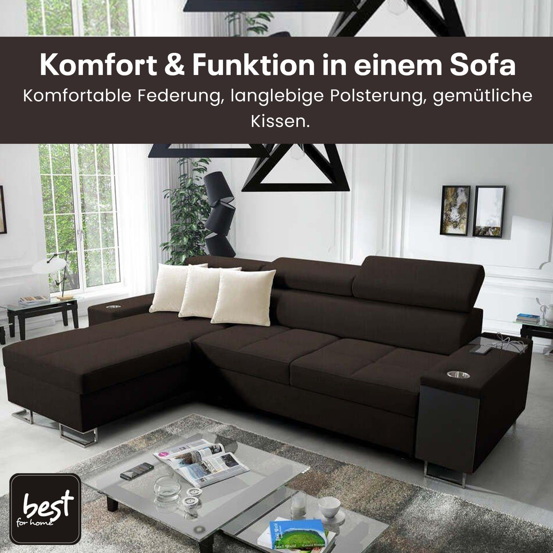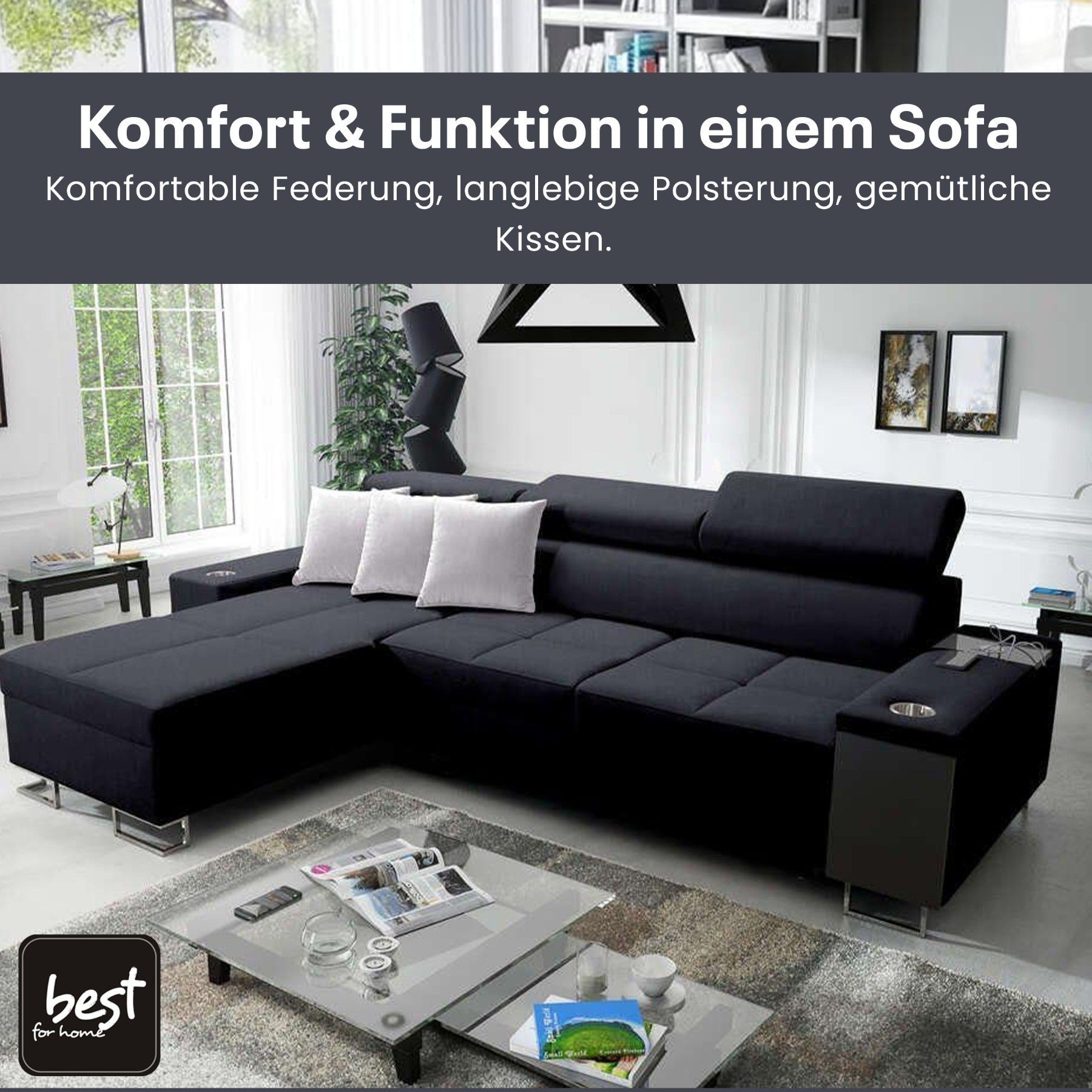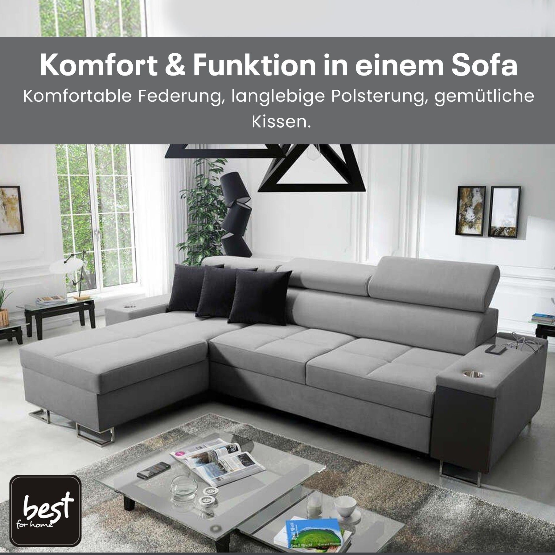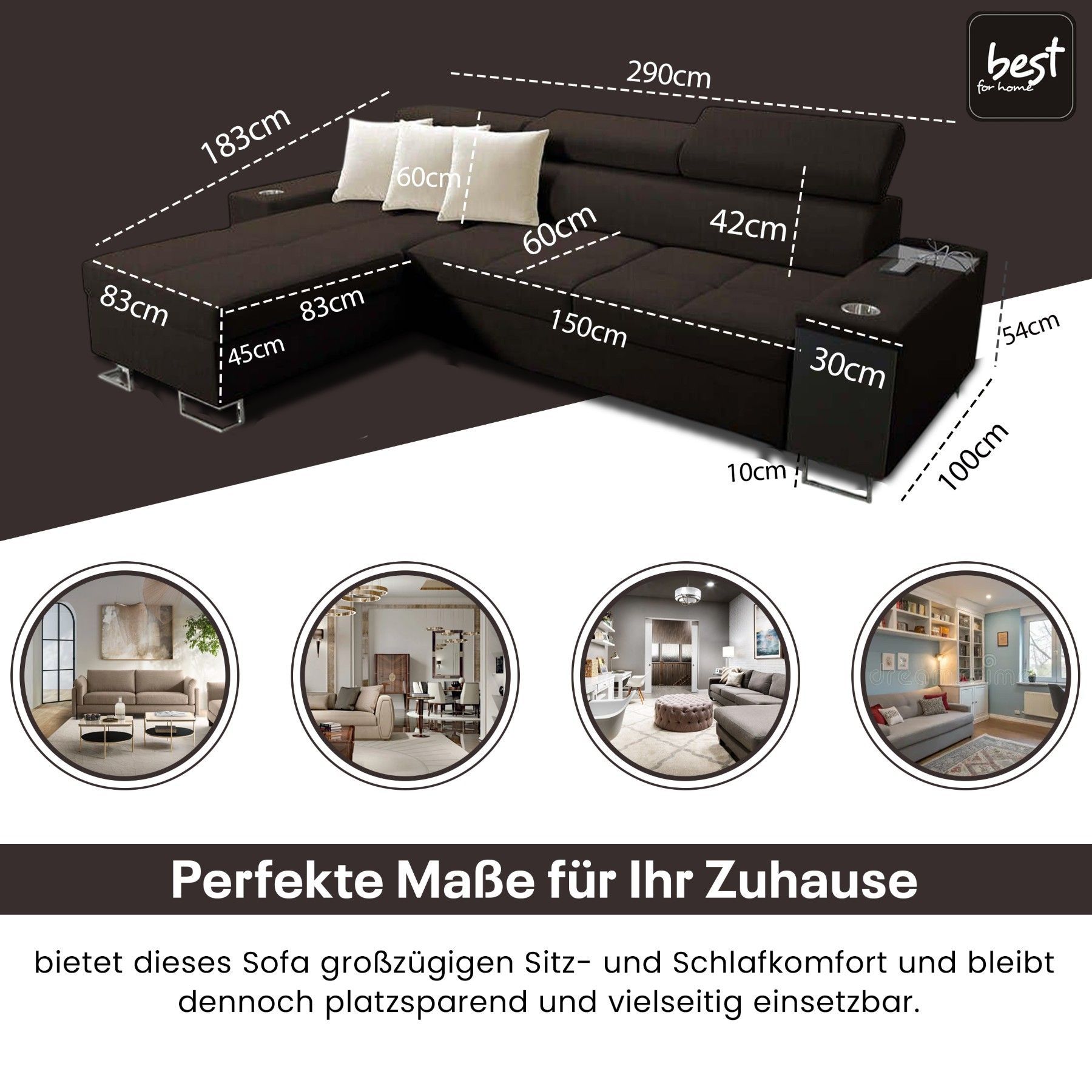Best For Home Ecksofa Anita I Maxi Schlafsofa mit USB, Steckdose & Bettfunktion