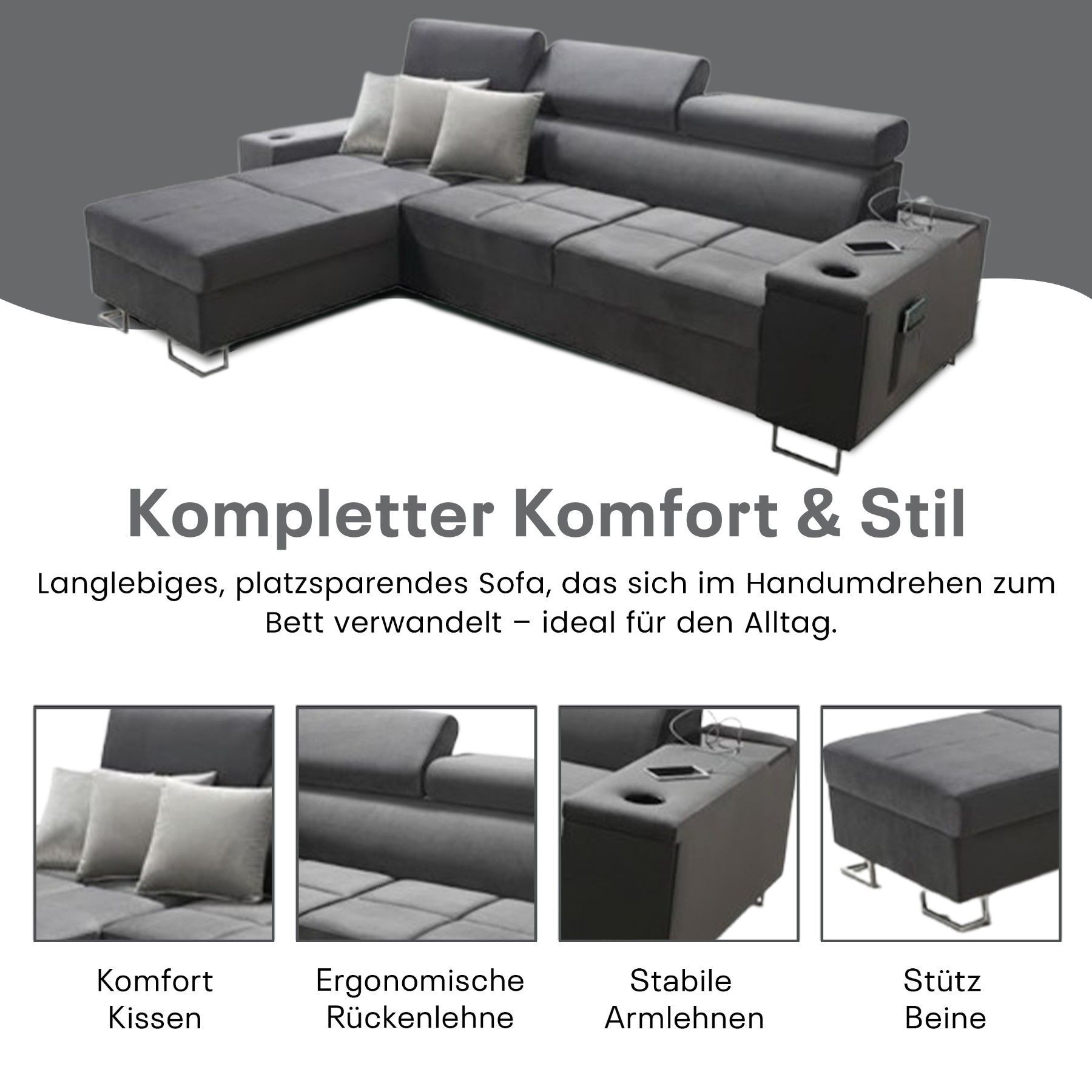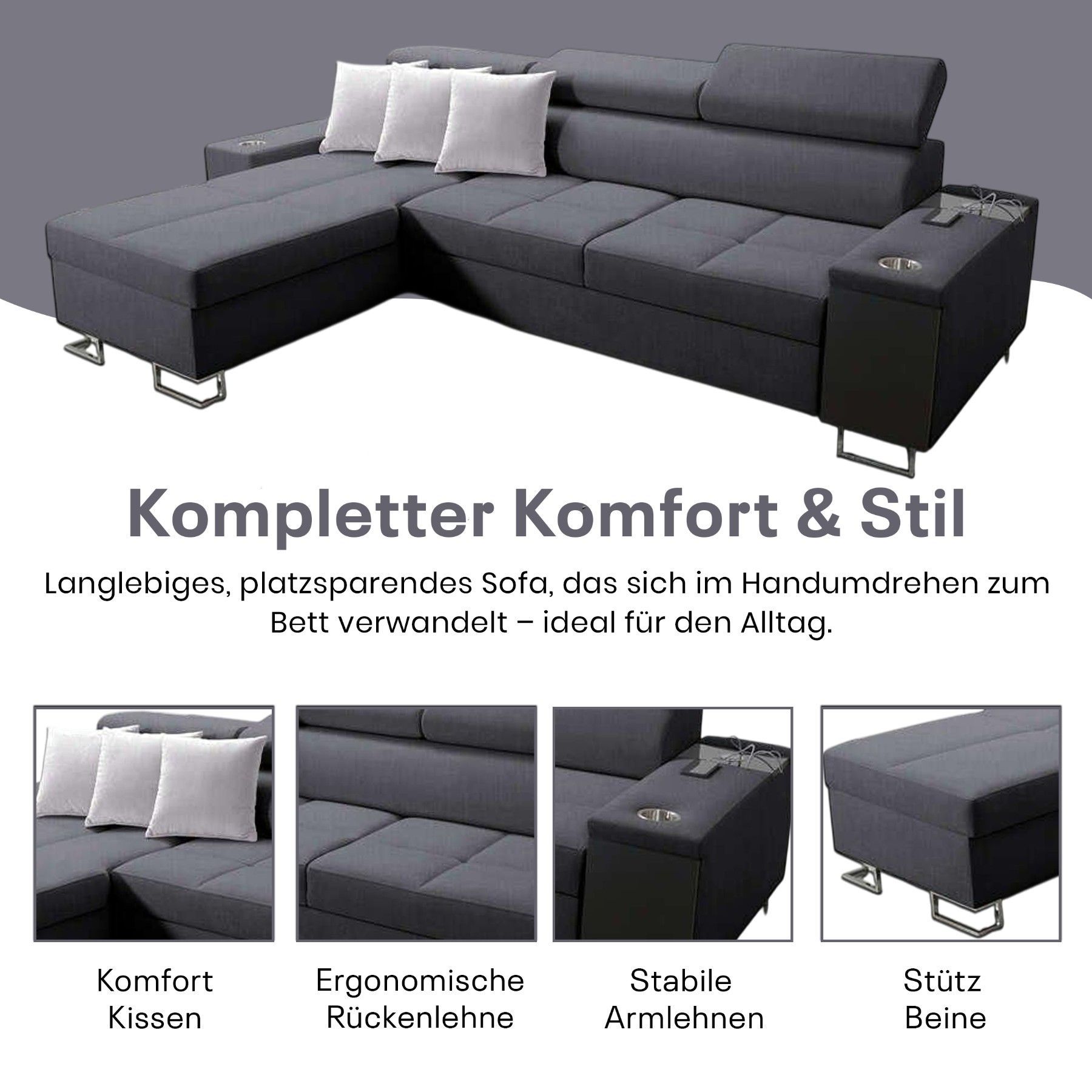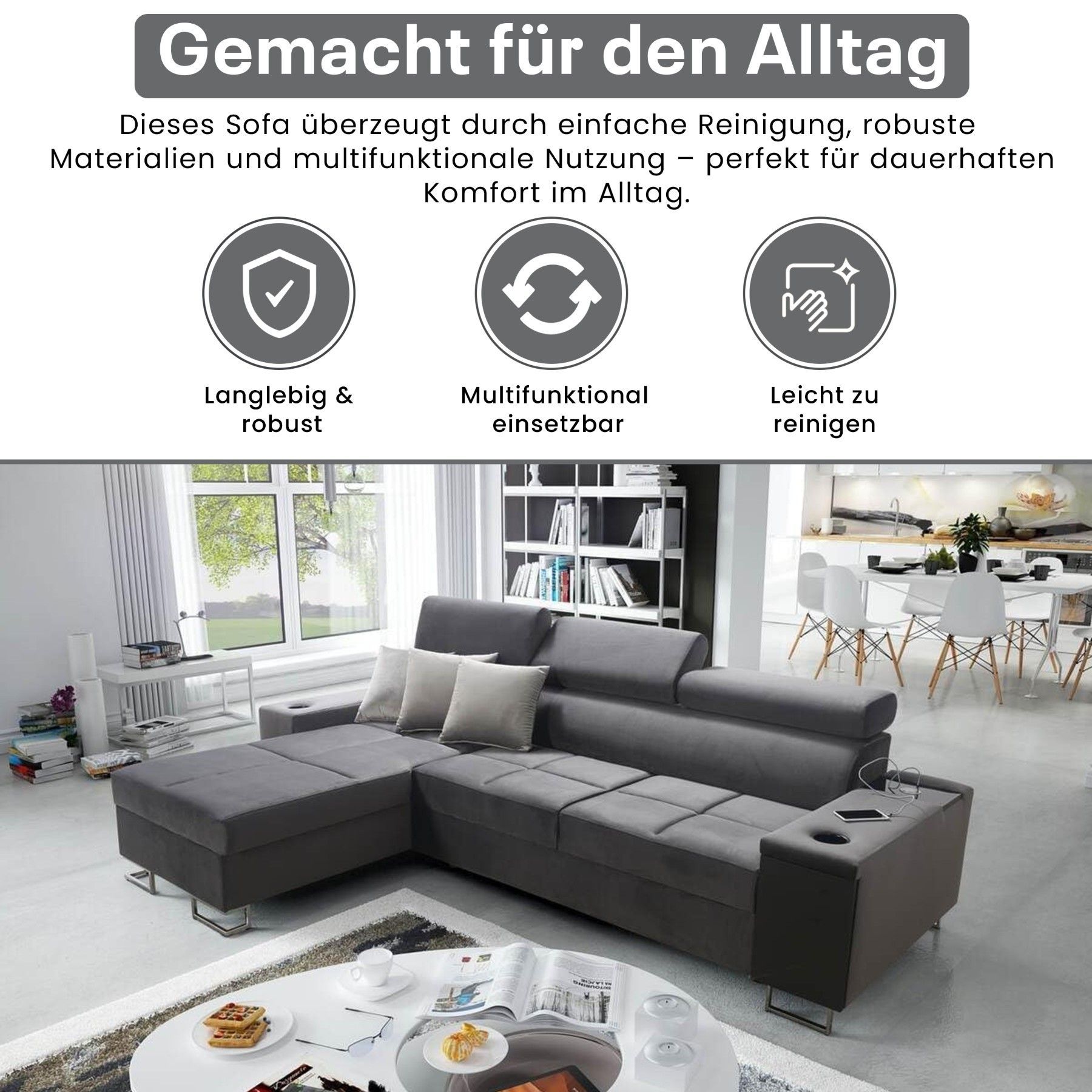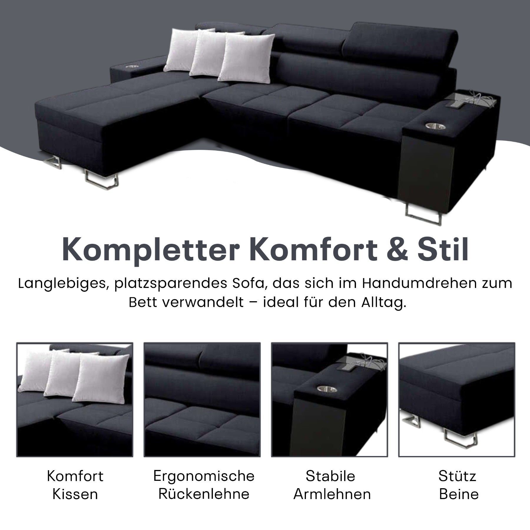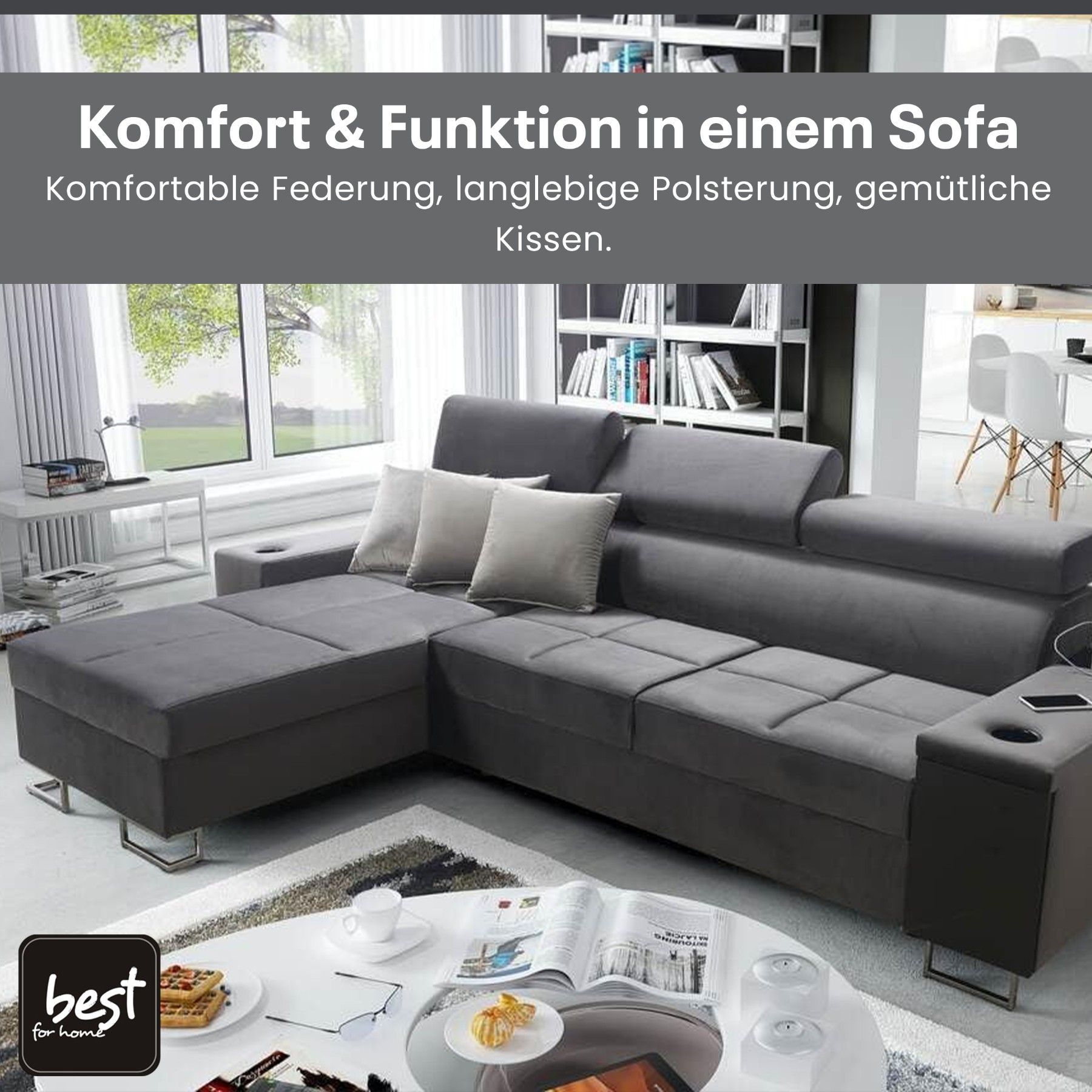 Best For Home Ecksofa Anita I Maxi Schlafsofa mit USB, Steckdose & Bettfunktion