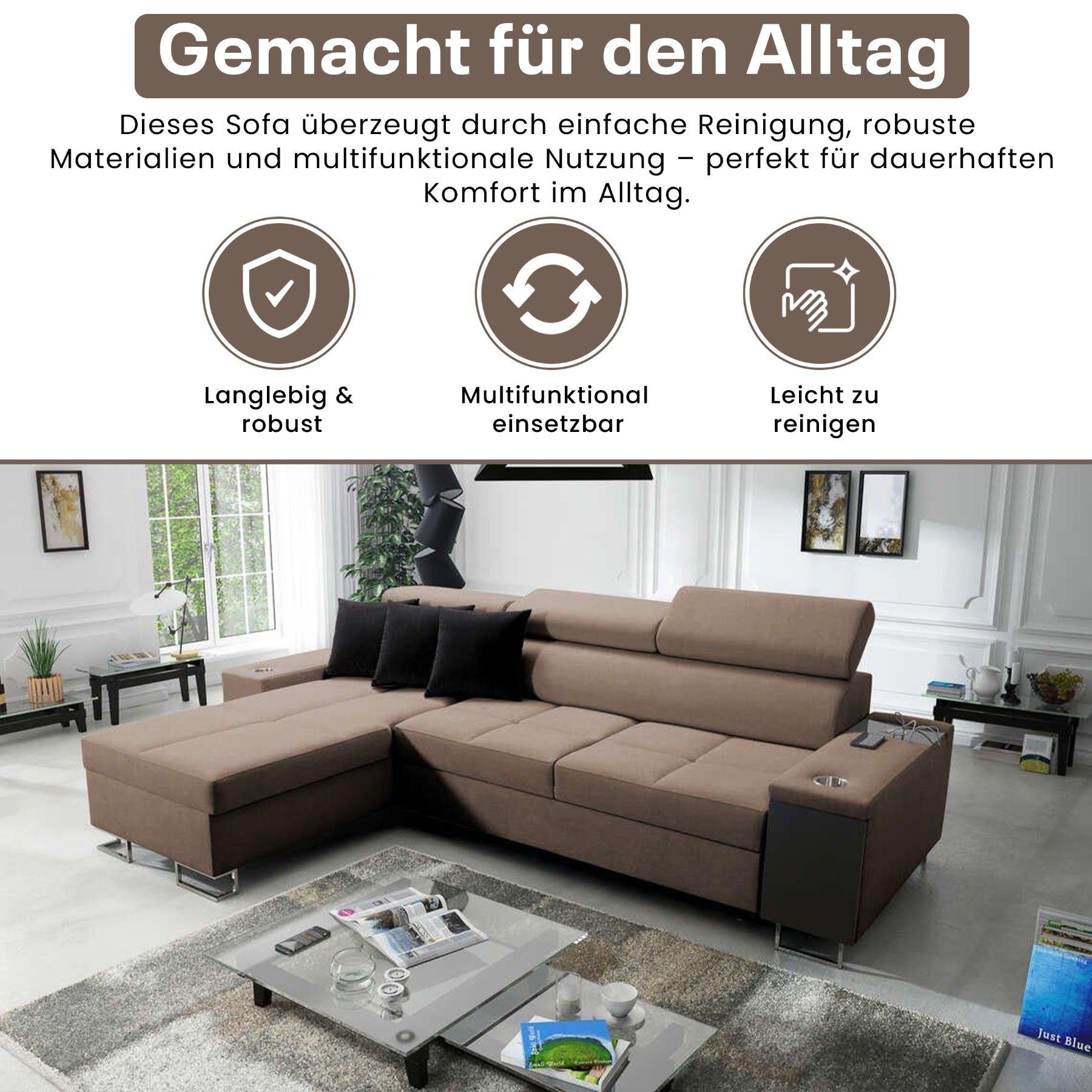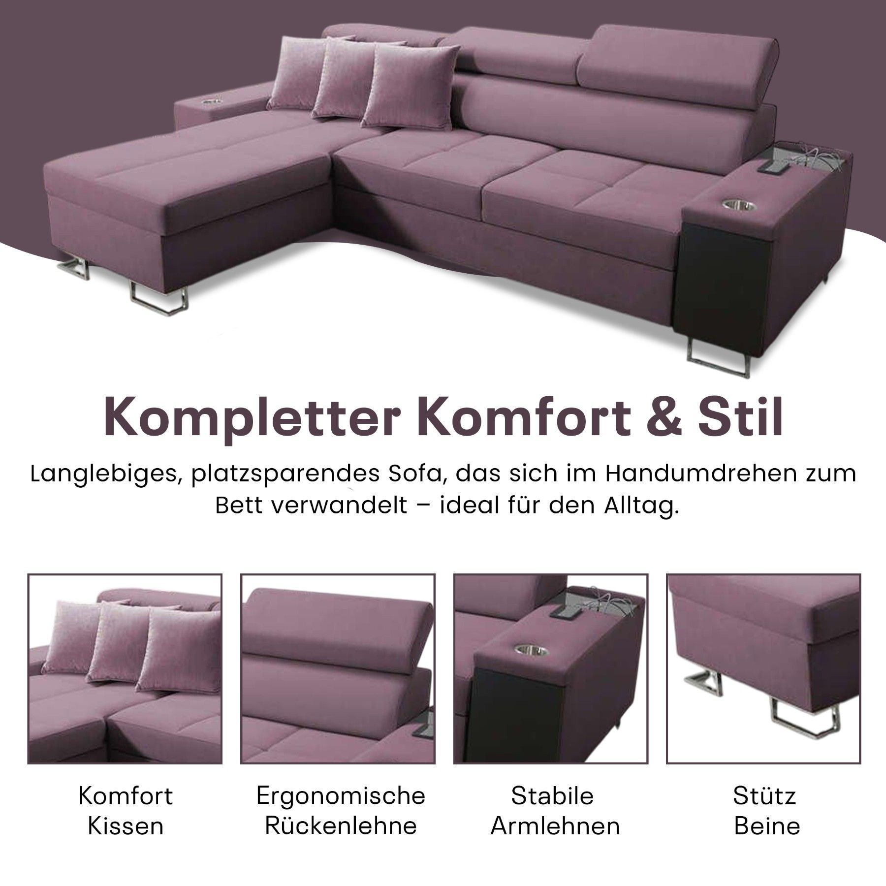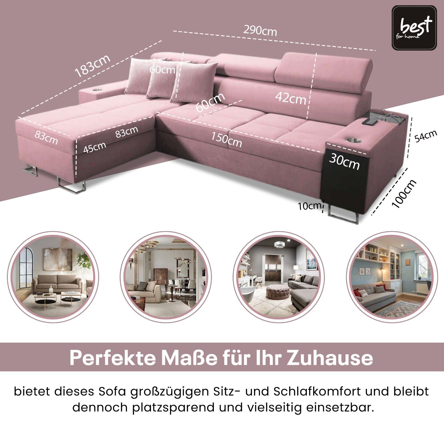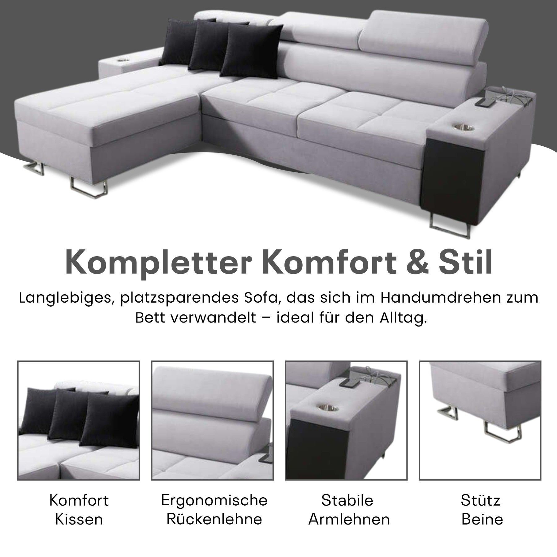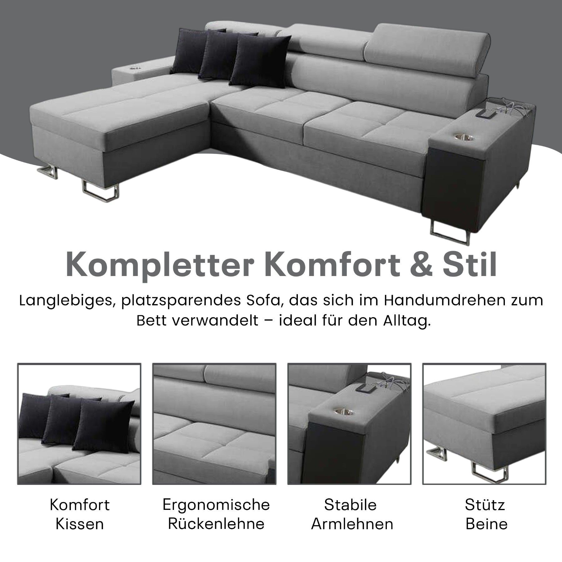 Best For Home Ecksofa Anita I Maxi Schlafsofa mit USB, Steckdose & Bettfunktion