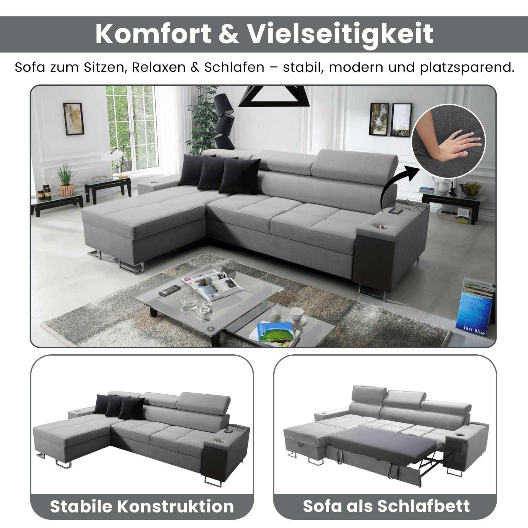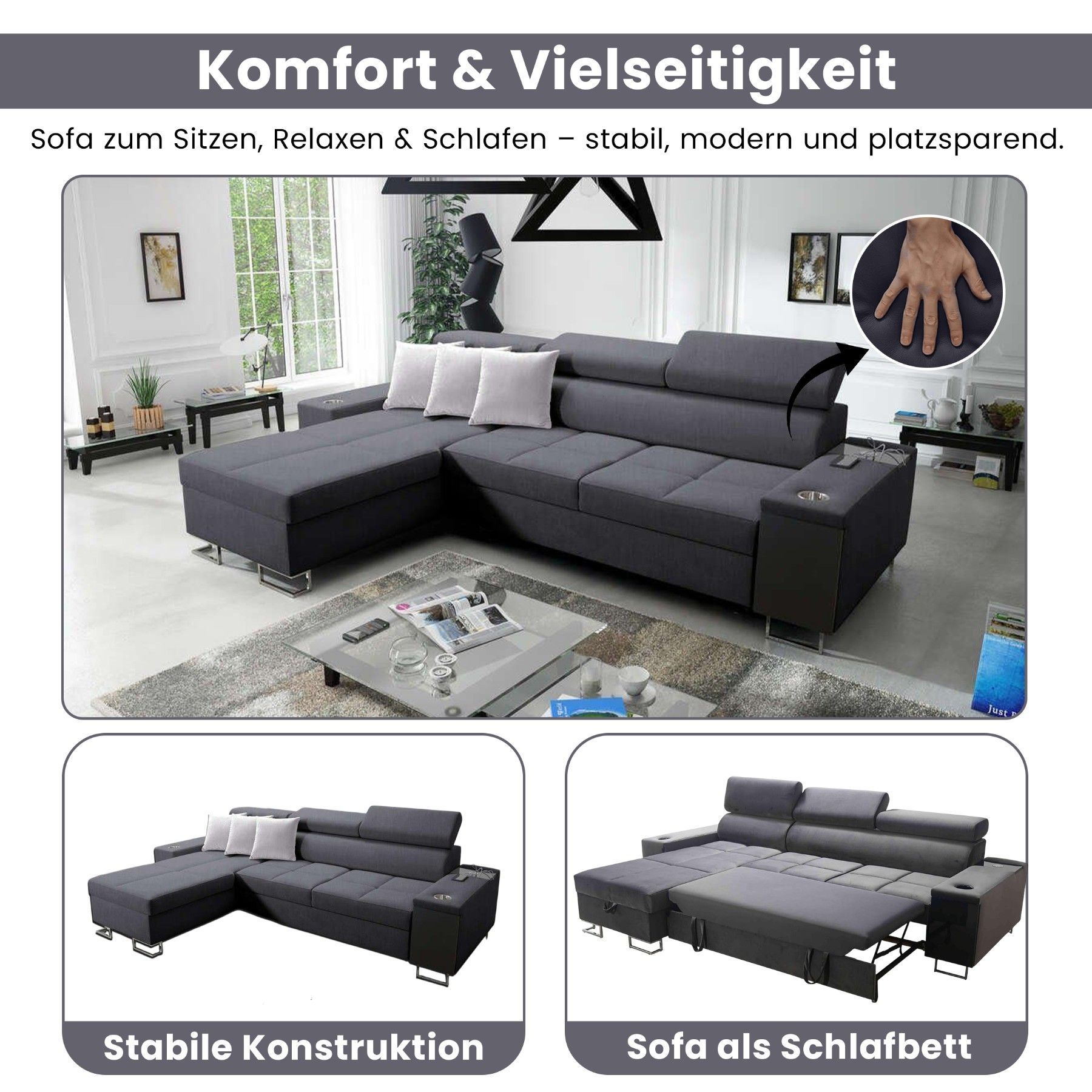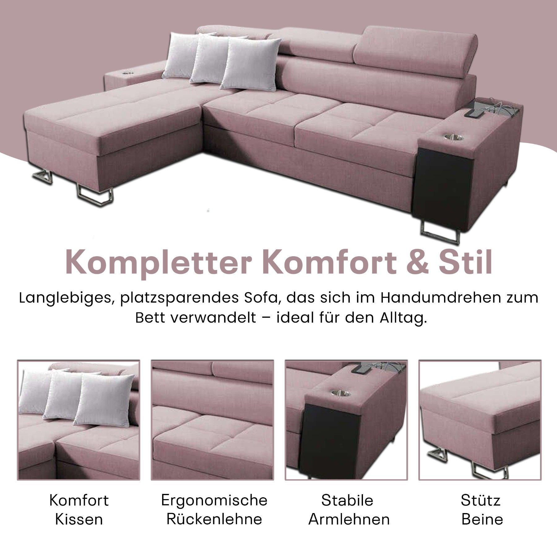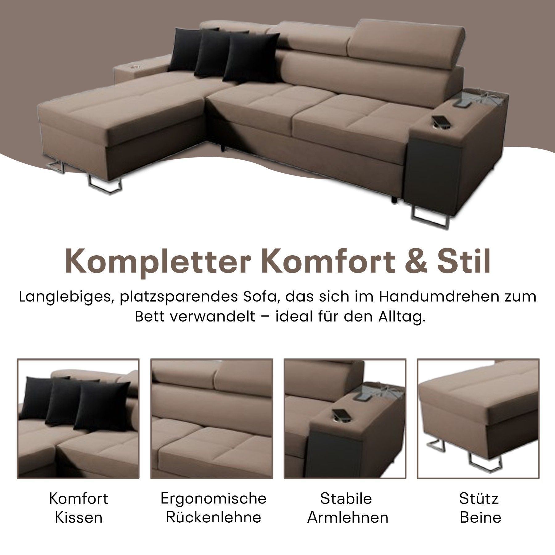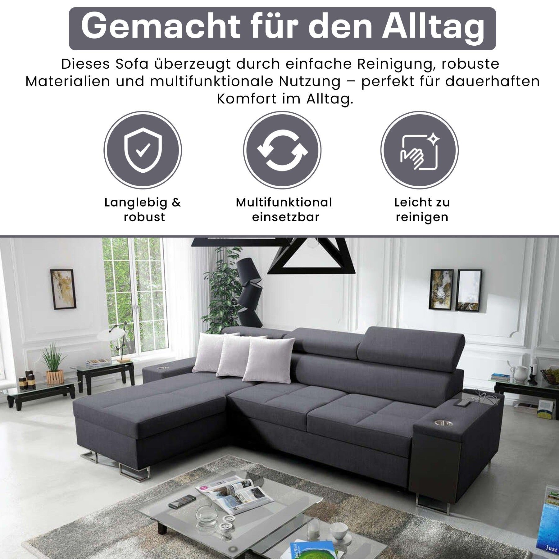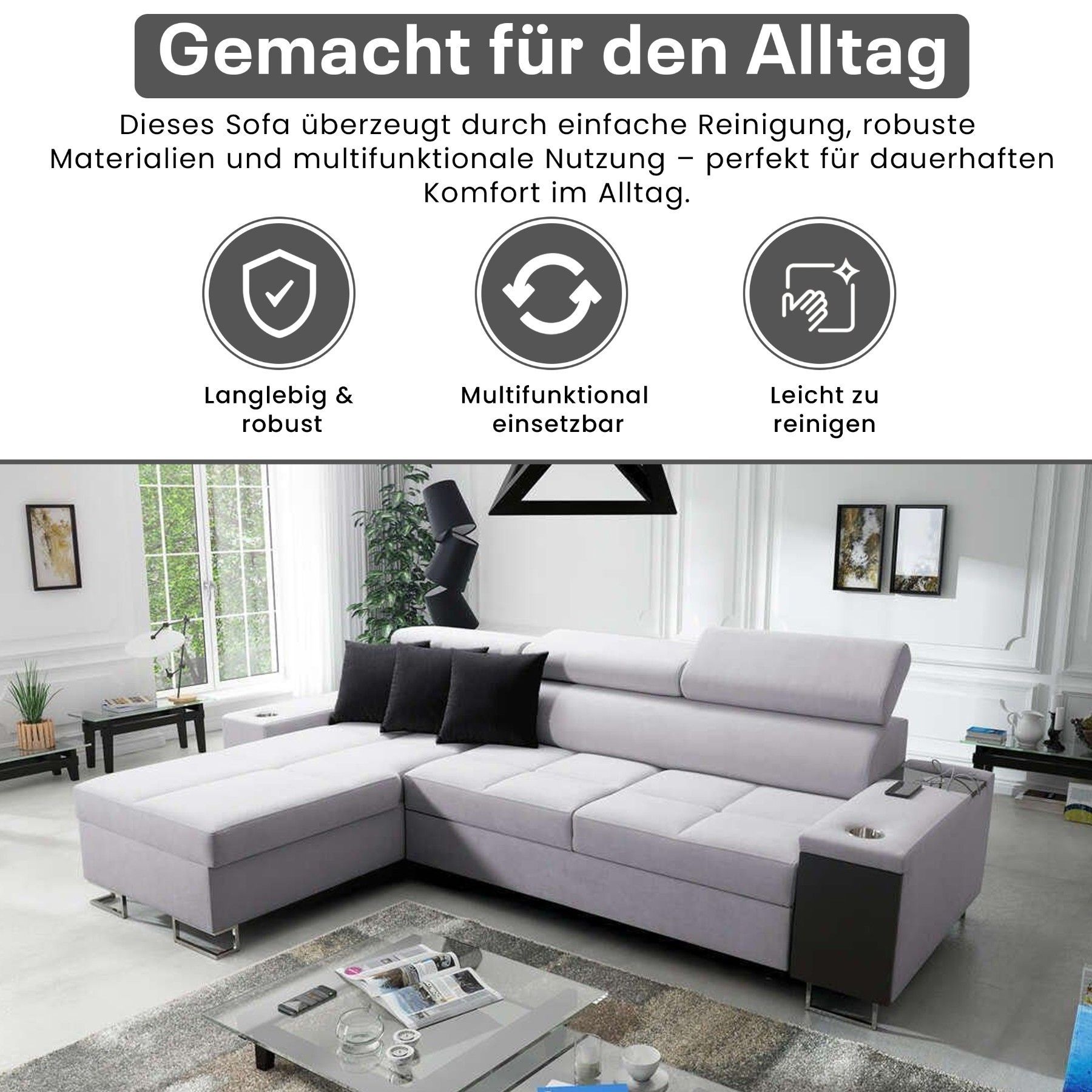 Best For Home Ecksofa Anita I Maxi Schlafsofa mit USB, Steckdose & Bettfunktion